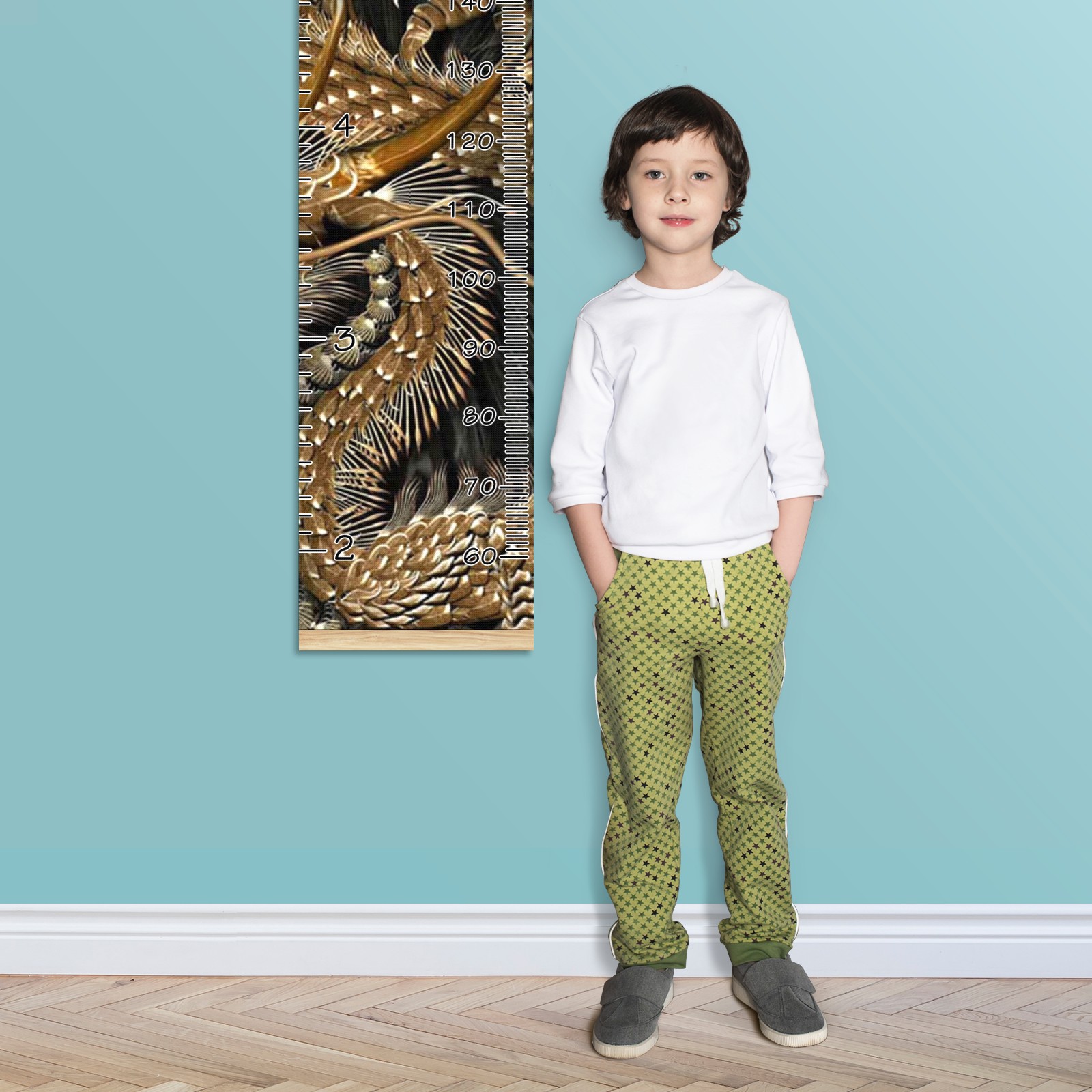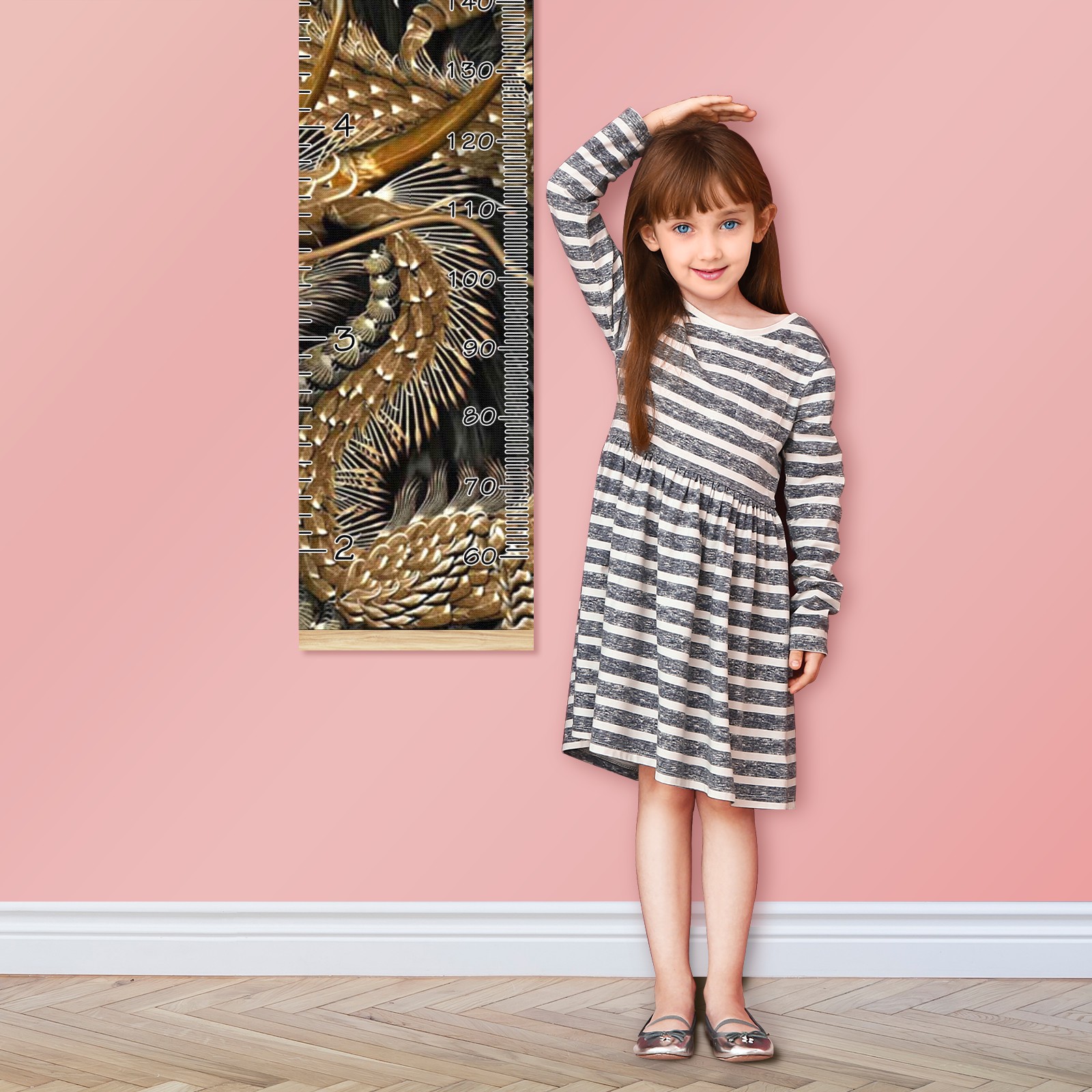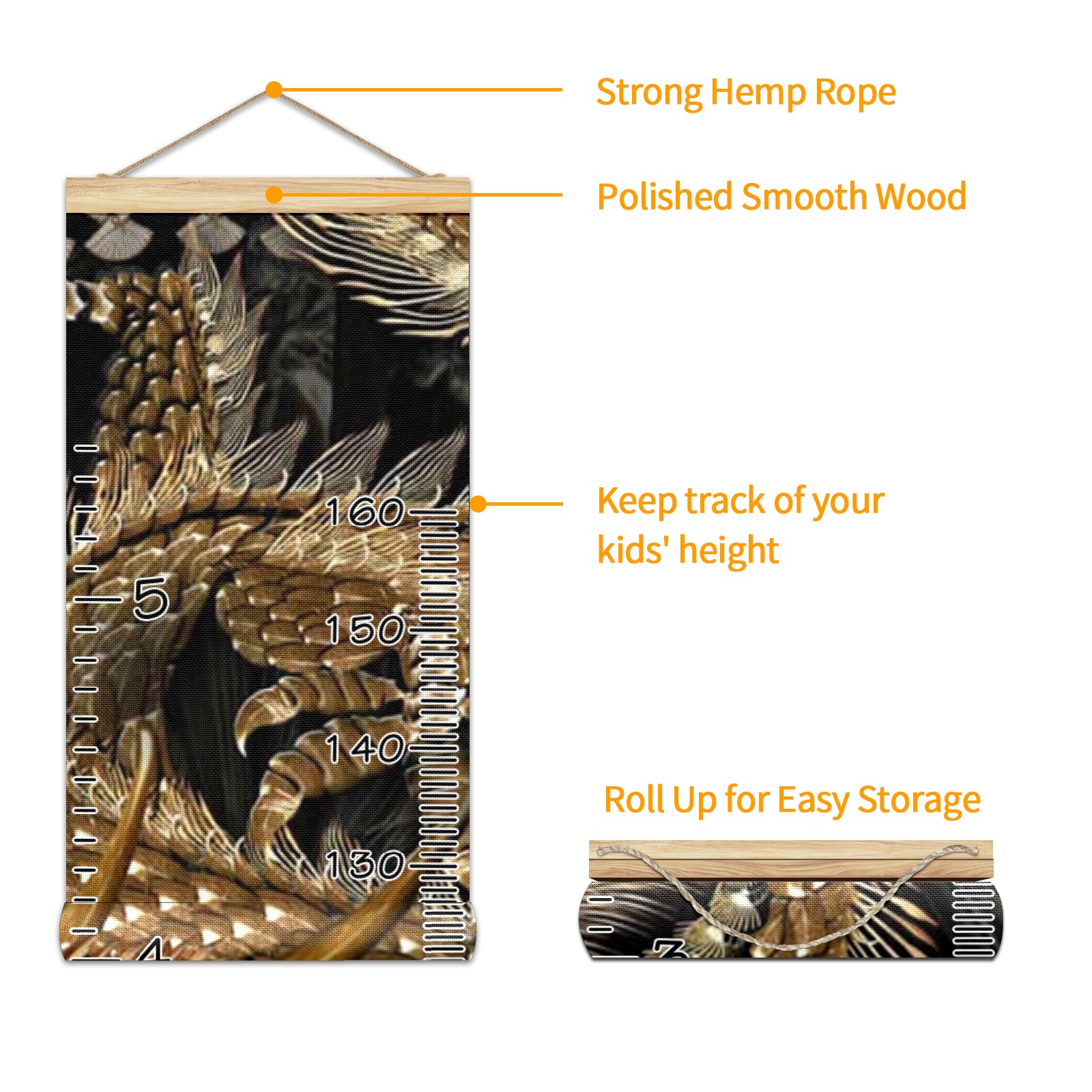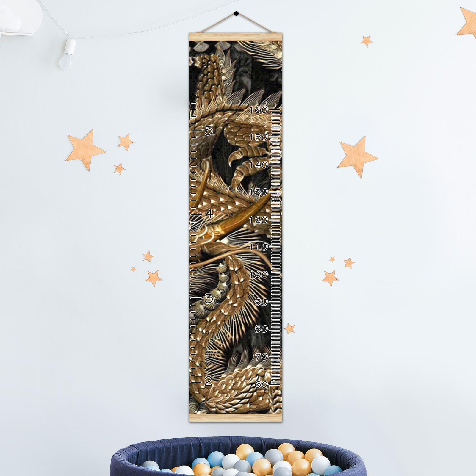 Personalized Kids Name Growth Chart Ruler for Wall Wood Frame Canvas Height Measure Chart 13.4x56 in Hanging Growth Chart Taditional Chinese Golden Dragon Boys Girls Room Decor