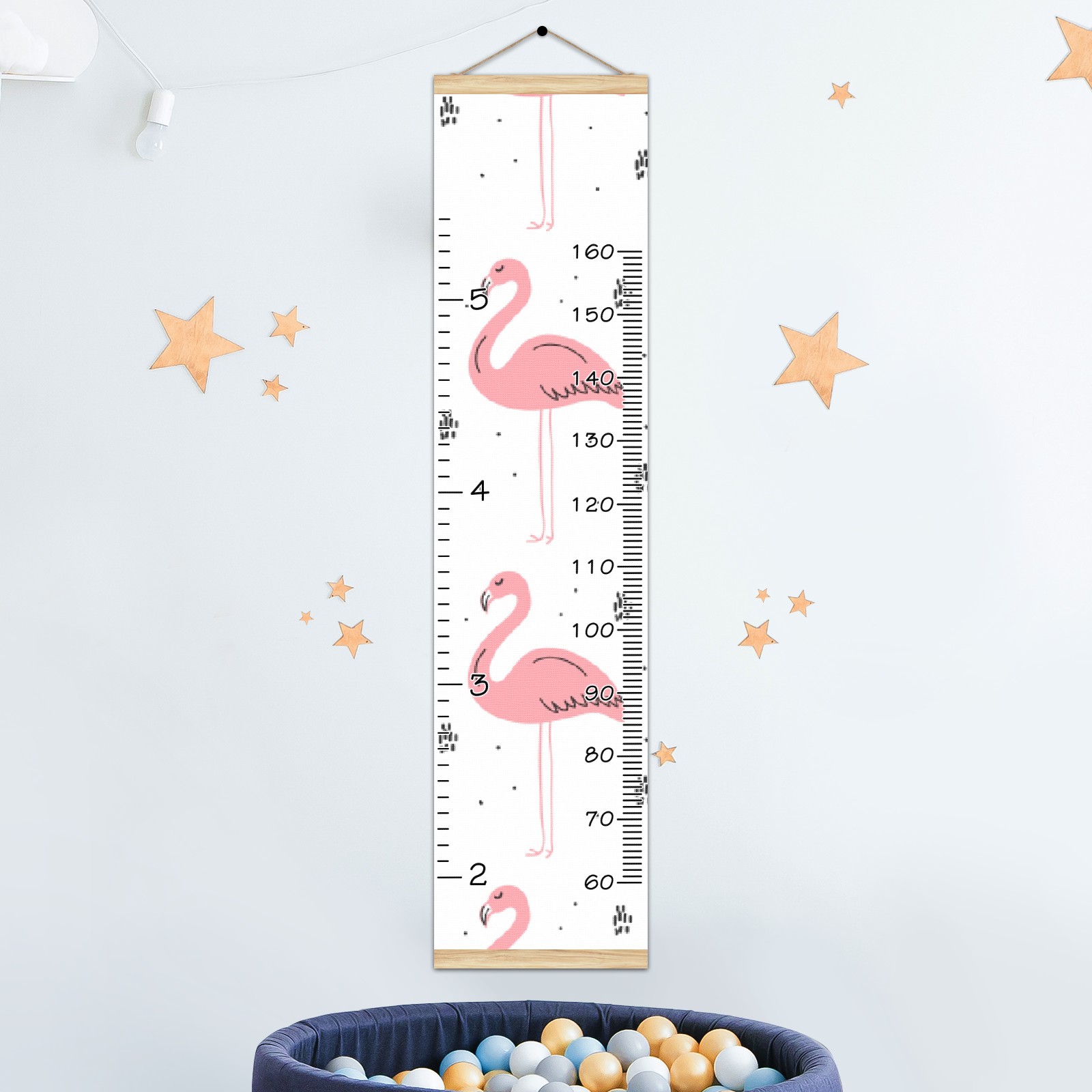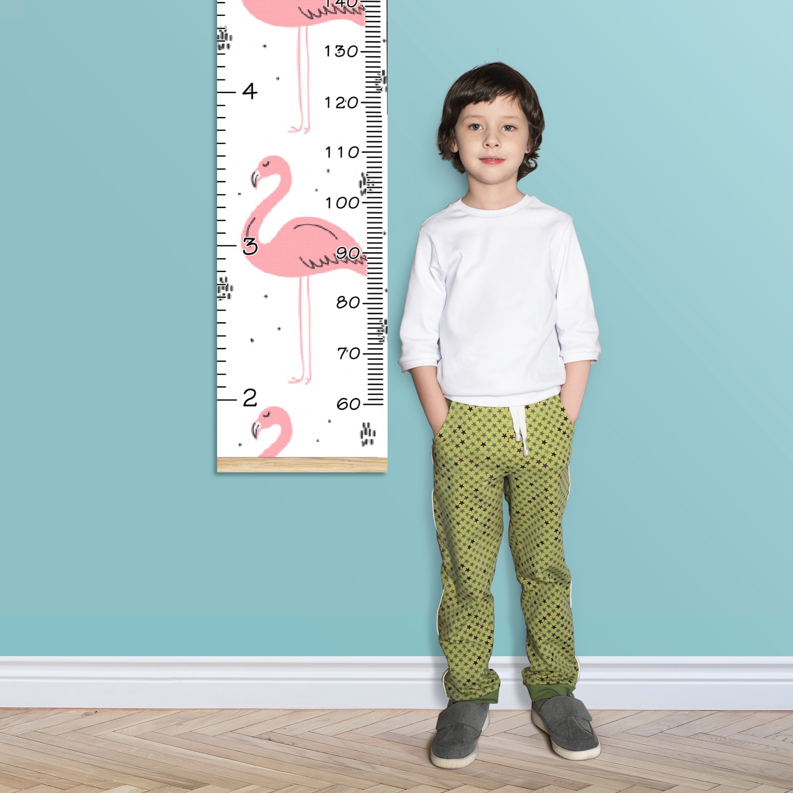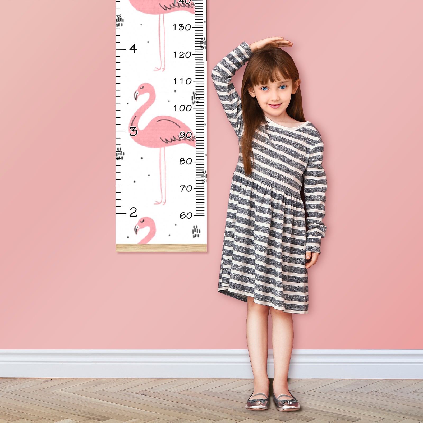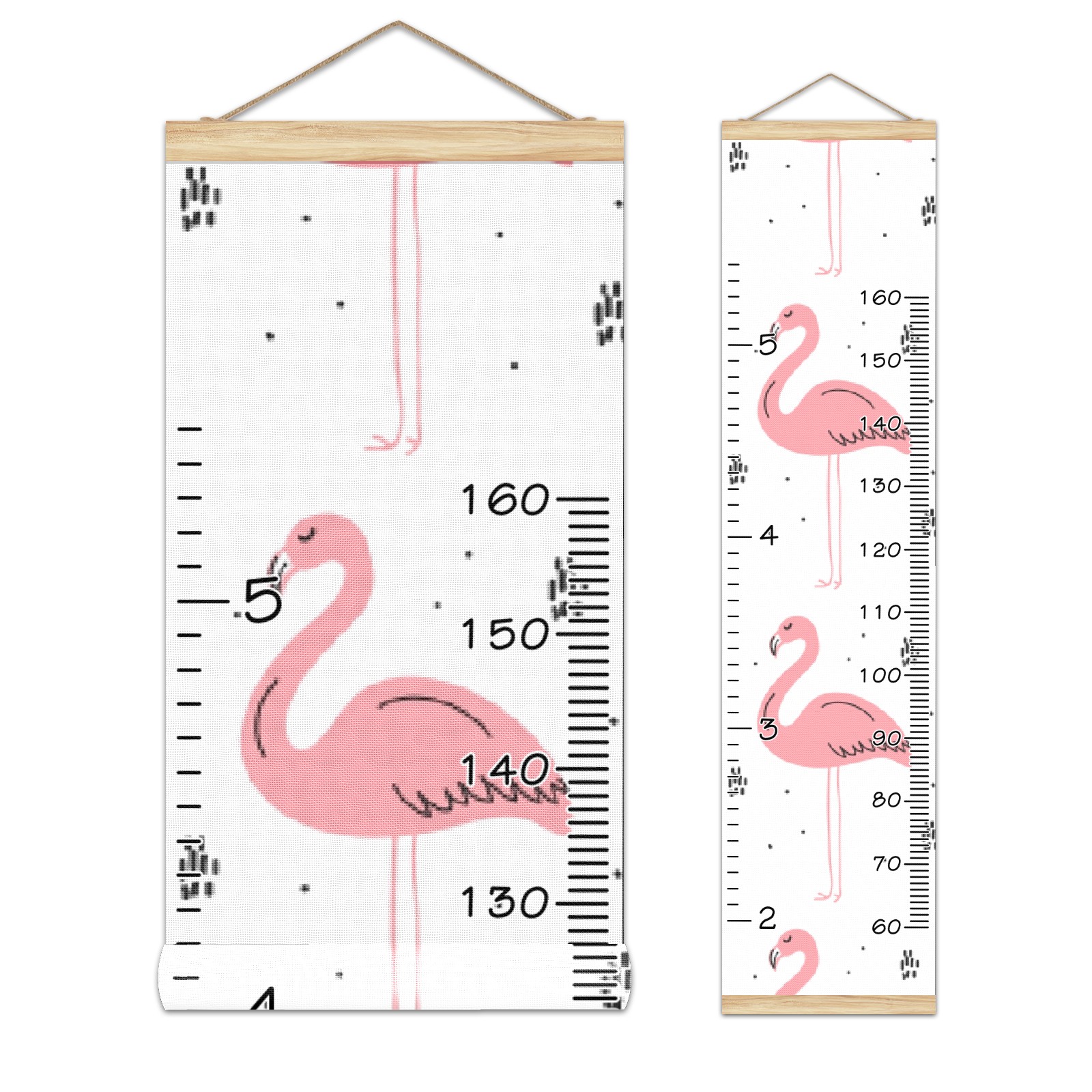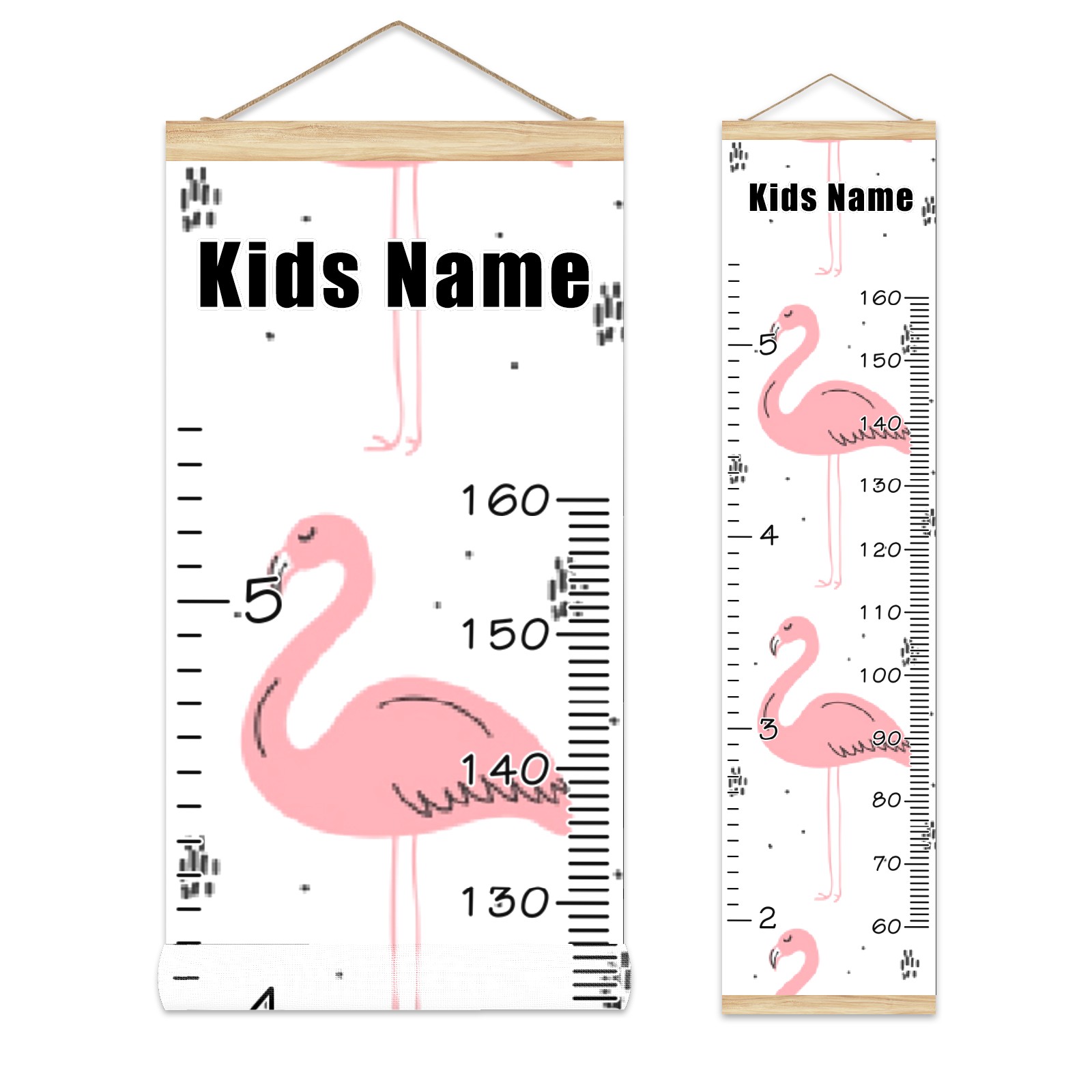 Personalized Kids Name Growth Chart Ruler for Wall Wood Frame Canvas Height Measure Chart 13.4x56 in Hanging Growth Chart Green Pink Flamingo Boys Girls Room Decor