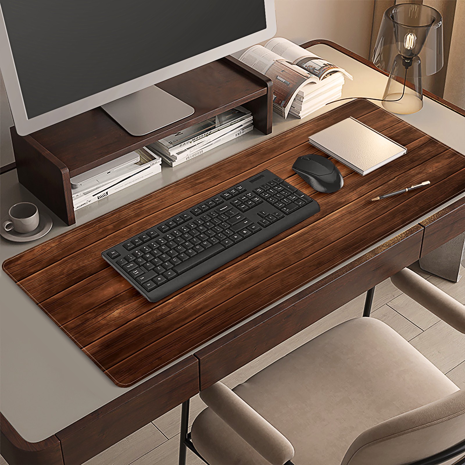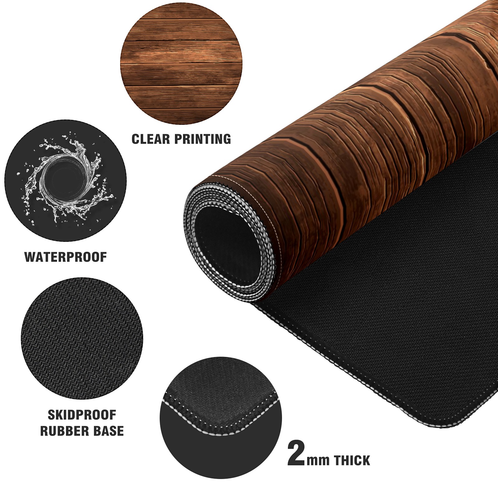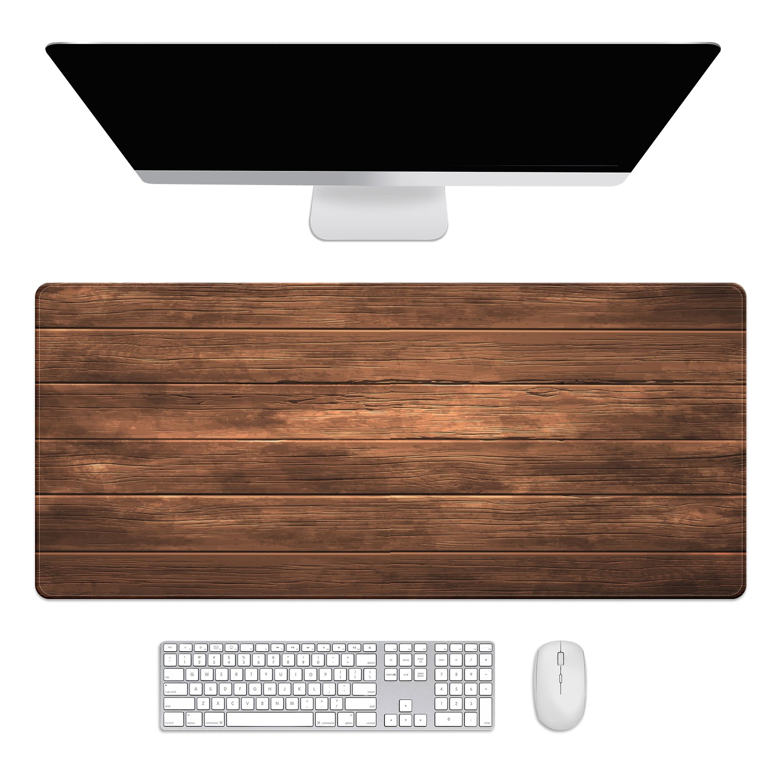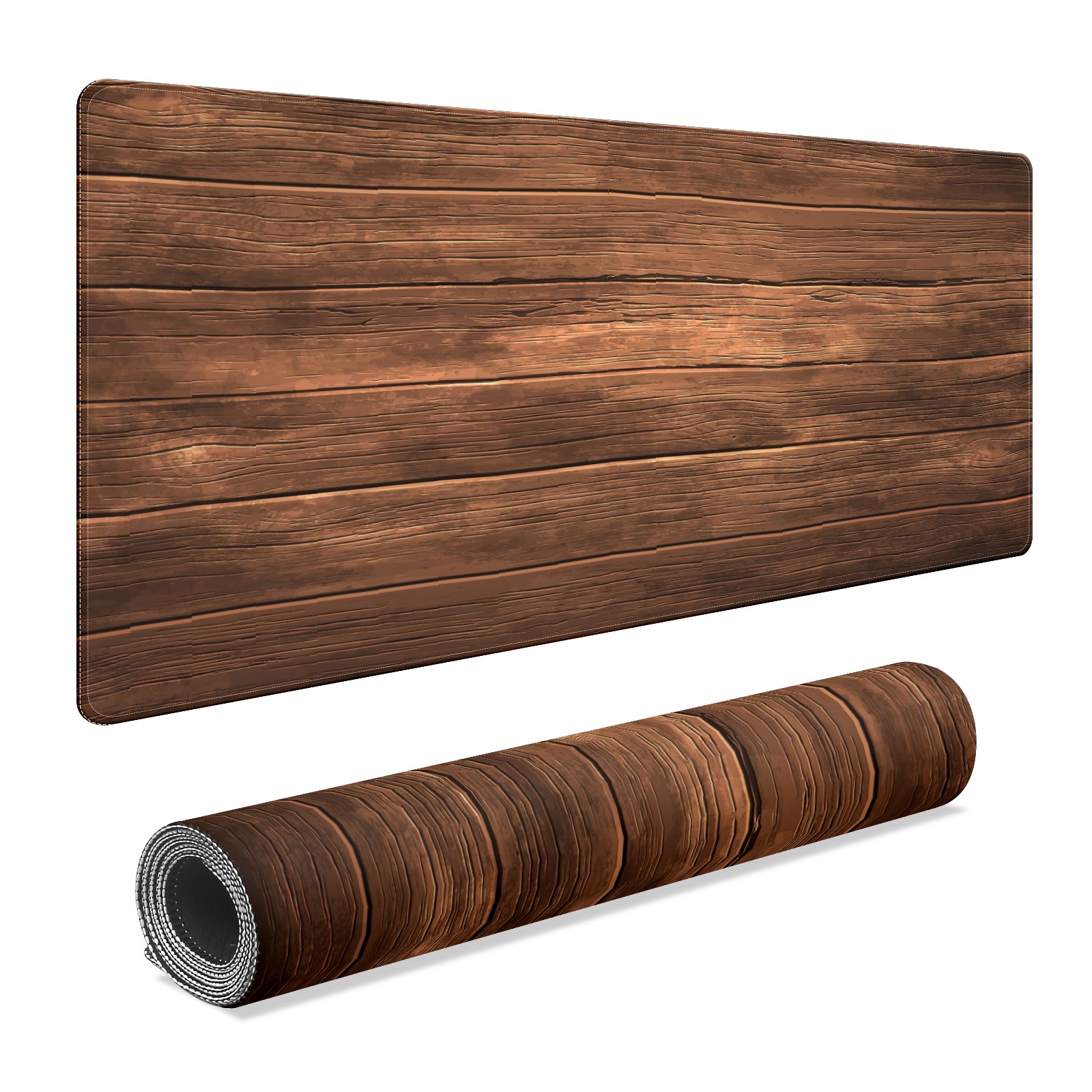 FCZ Large Gaming Mouse Pad 35.4''x15.7'' Vintage Rustic Wood Extended Non-Slip Soft Rubber Mousepad Desk Mat for Desktop Office Stitched Edges Waterproof Keyboard Mat for Computer Laptop