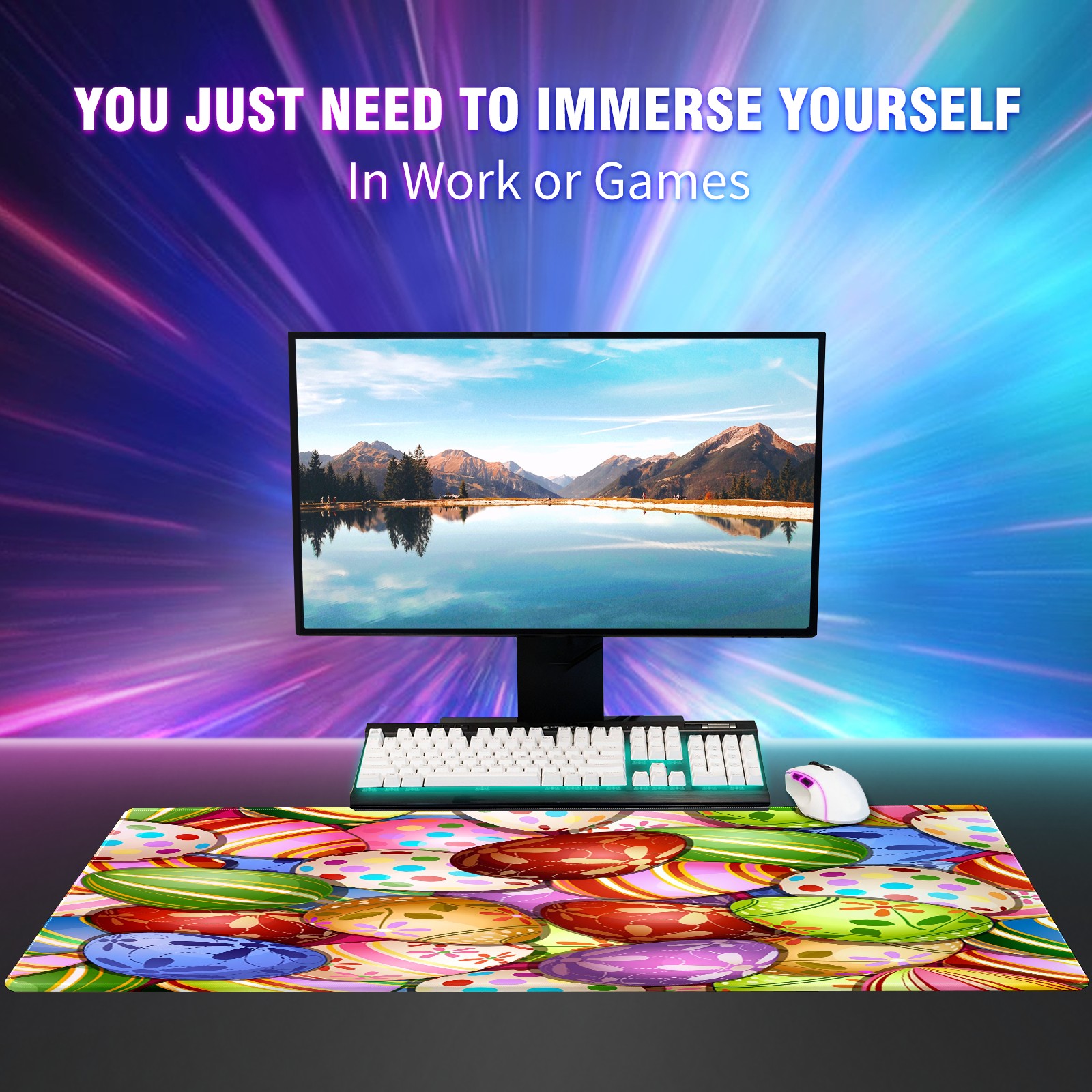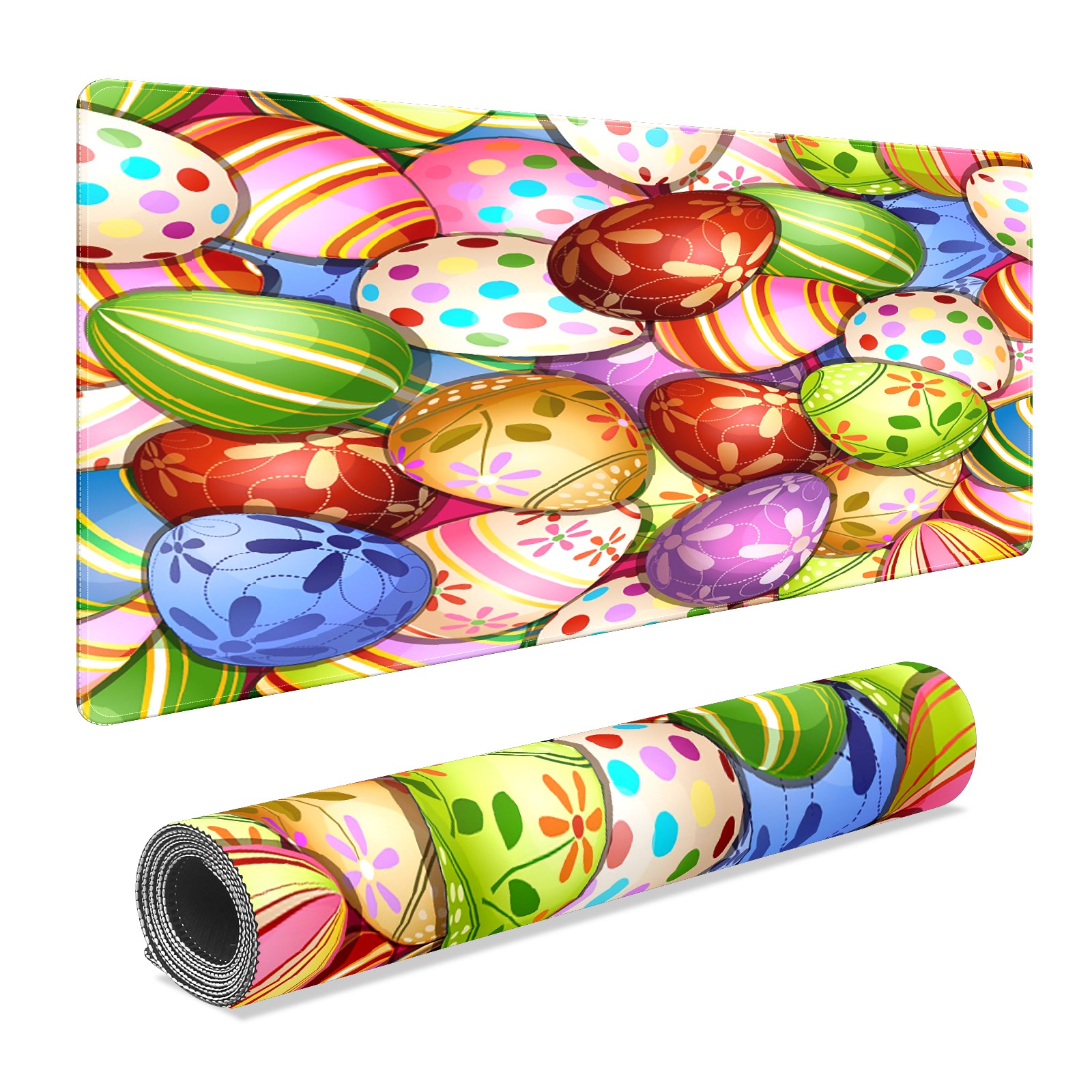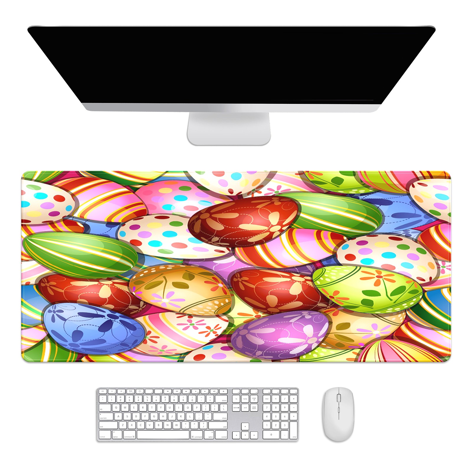 FCZ Large Gaming Mouse Pad 35.4''x15.7'' Colorful Happy Easter Eggs Extended Non-Slip Soft Rubber Mousepad Desk Mat for Desktop Office Stitched Edges Waterproof Keyboard Mat for Computer Laptop