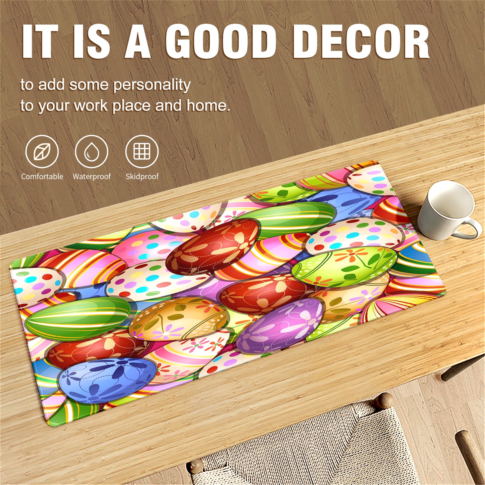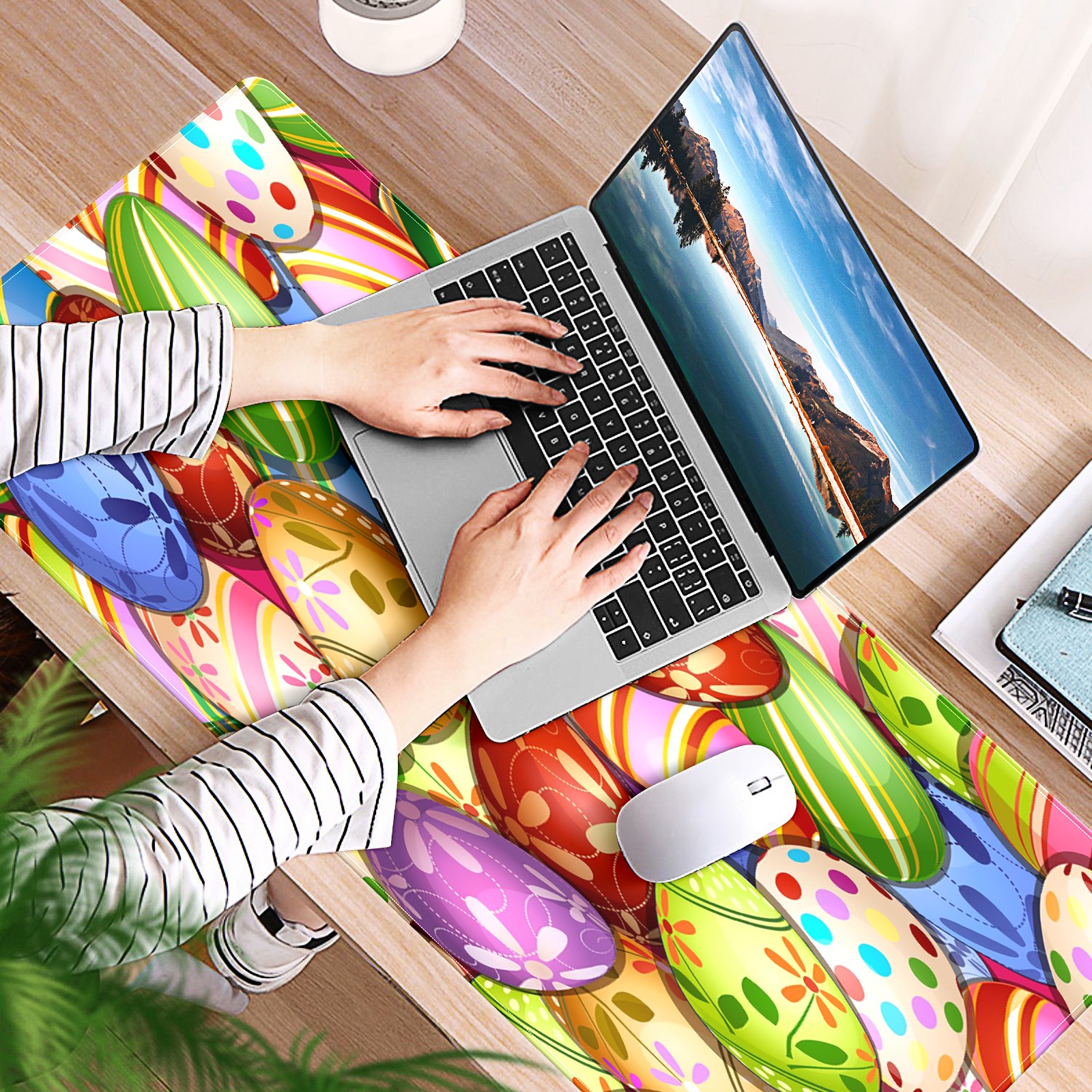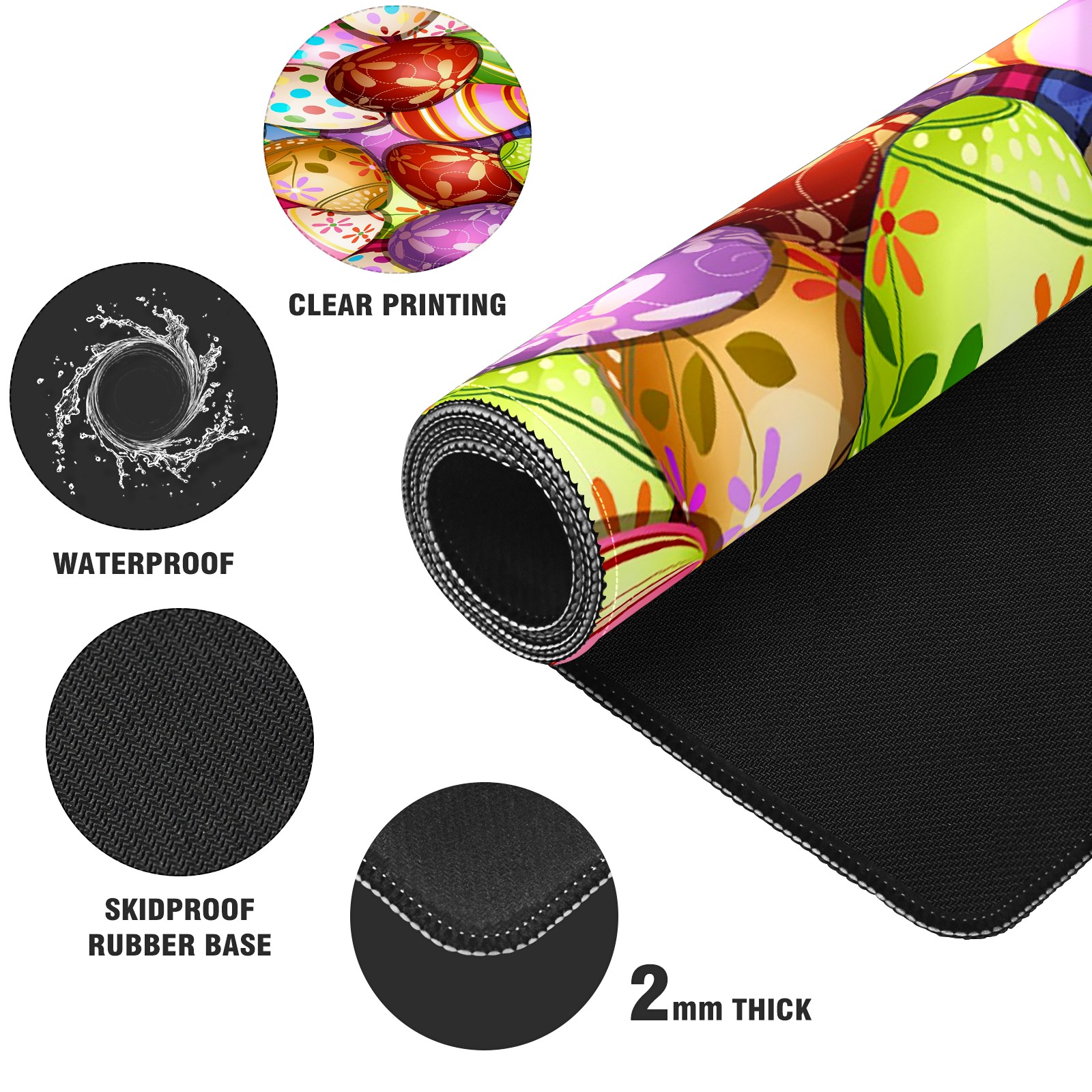 FCZ Large Gaming Mouse Pad 35.4''x15.7'' Colorful Happy Easter Eggs Extended Non-Slip Soft Rubber Mousepad Desk Mat for Desktop Office Stitched Edges Waterproof Keyboard Mat for Computer Laptop