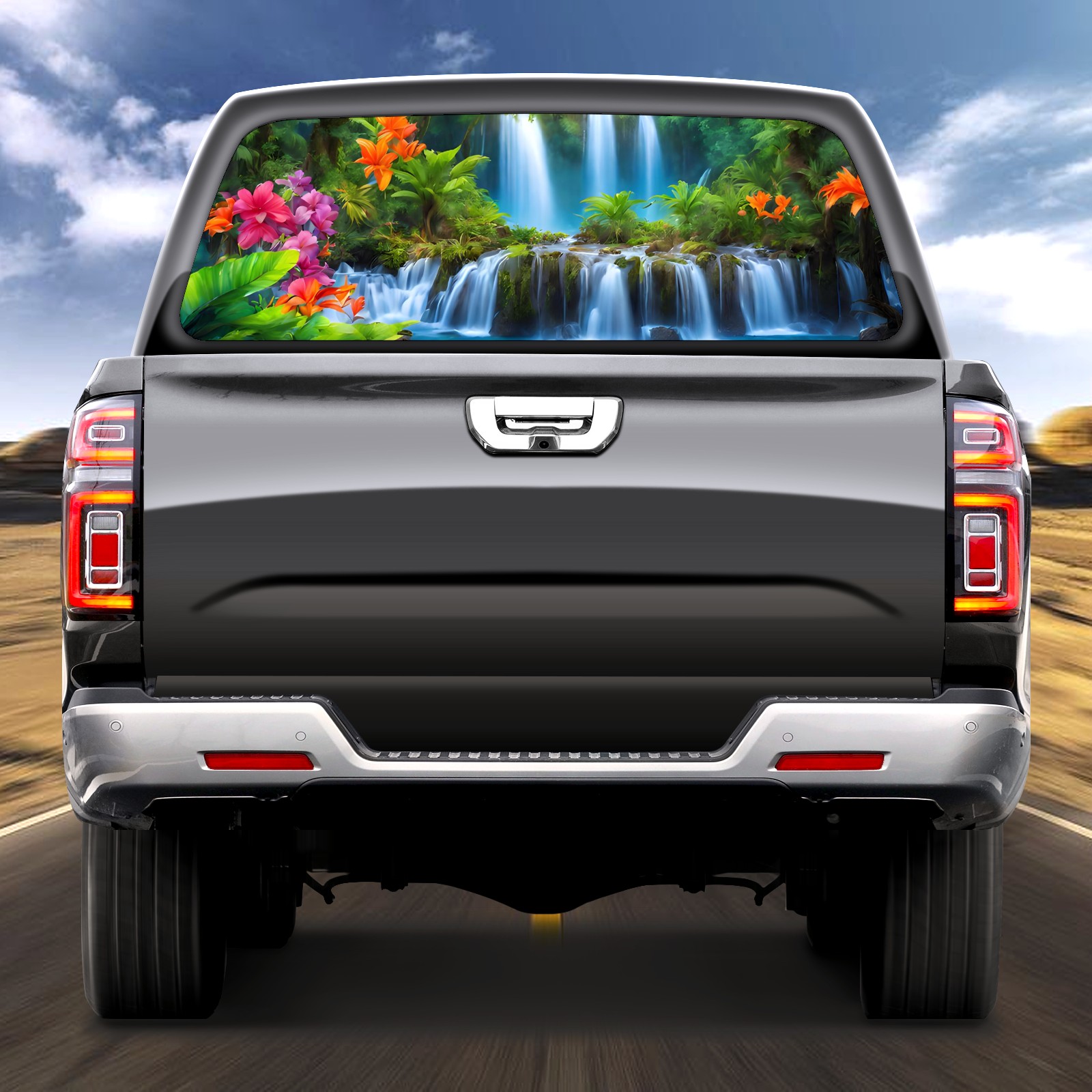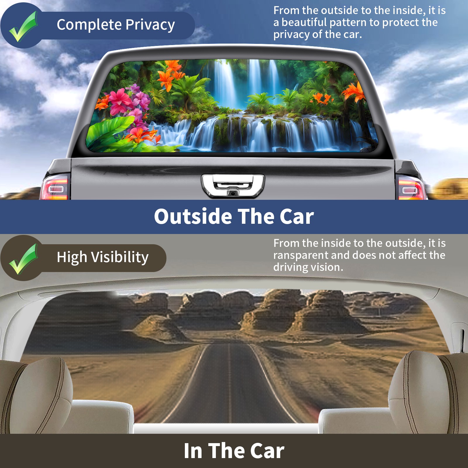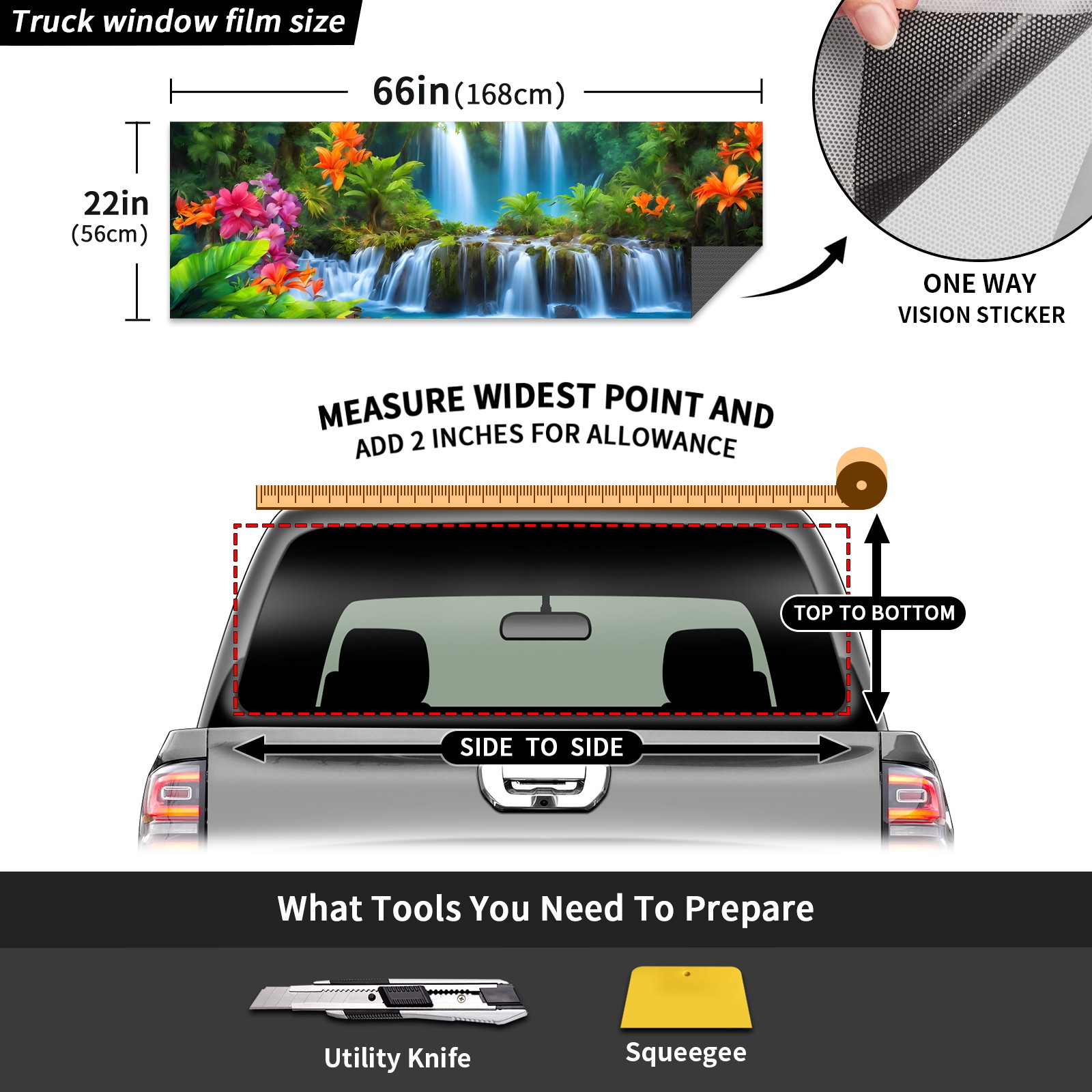 • <p><strong>Truck Rear Window Graphics Decals Pickup Trucks Back Window Film Stickers 66" x 22" Perforated Vinyl Wrap Stickers Decorations for Car Rear Window</strong></p><p><strong><br /></strong></p><p><strong>Features :</strong></p><p>- Size of the rear window decals for trucks is 66x22 Inches (168x56cm).</p><p>- High quality perforated vinyl window film, one way vision sticker.</p><p>- Perforated is see through from the inside but not from outside.</p><p>- Clear printing, waterproof and durable.</p><p>- The car back window graphics stickers fits most truck and makes your vehicle more beautiful.&nbsp;</p><p><br /></p><p><strong>【Installation Instructions】</strong></p><p><strong>1. CLEAN SURFACE -</strong> Clean the rear window thoroughly and make sure the surface clean.</p><p><strong>2. STICK THE DECALS -</strong> Tear off the paper on the back and stick the decal on the window.</p><p><strong>3. SCRAPE OFF AIR BUBBLES -</strong> Use a squeegee or other card to scrape off the excess air bubbles.</p><p><strong>4. TRIM THE EXCESS -</strong> Use a knife to cut off the excess stickers of the window, finally complete.</p><p><br /></p><p>1. Please measure the size before purchasing, back window graphics decal for truck can be cut to your desired size.</p><p>2.The graphics stickers for truck back window is a great gift for yourself also can as a birthday / halloween / christmas gift for your friends and family.</p>