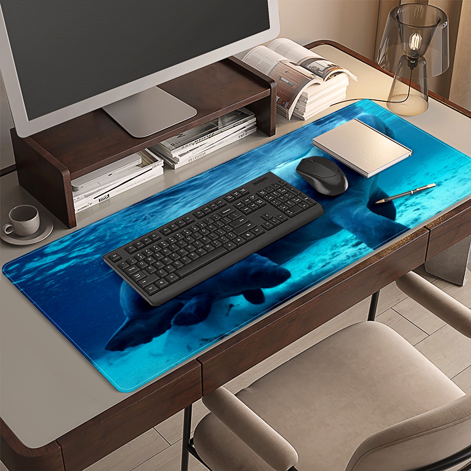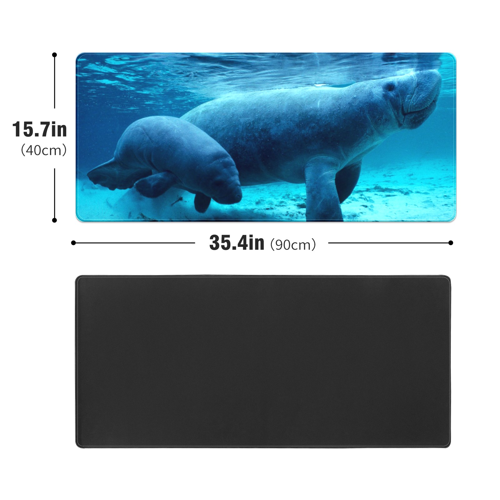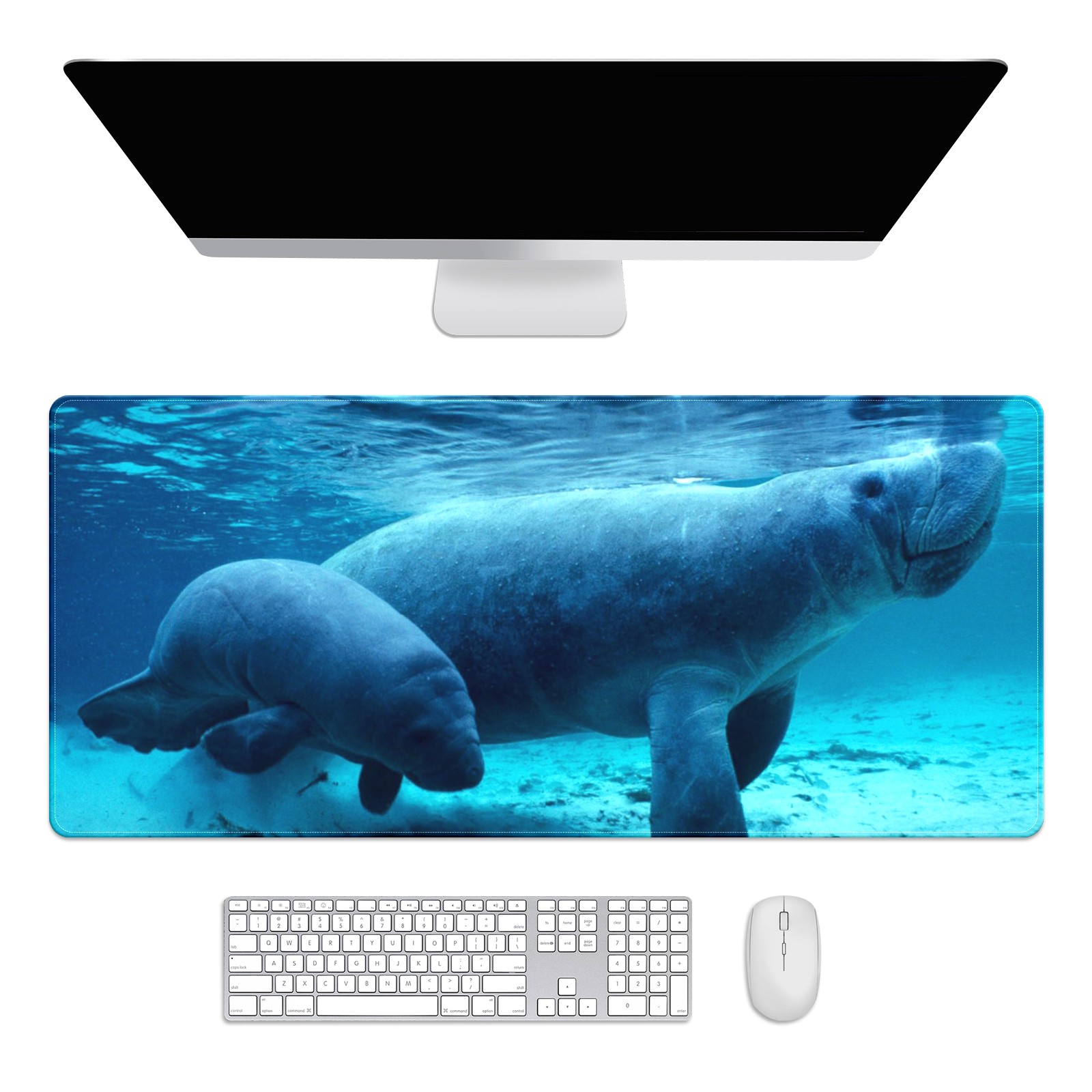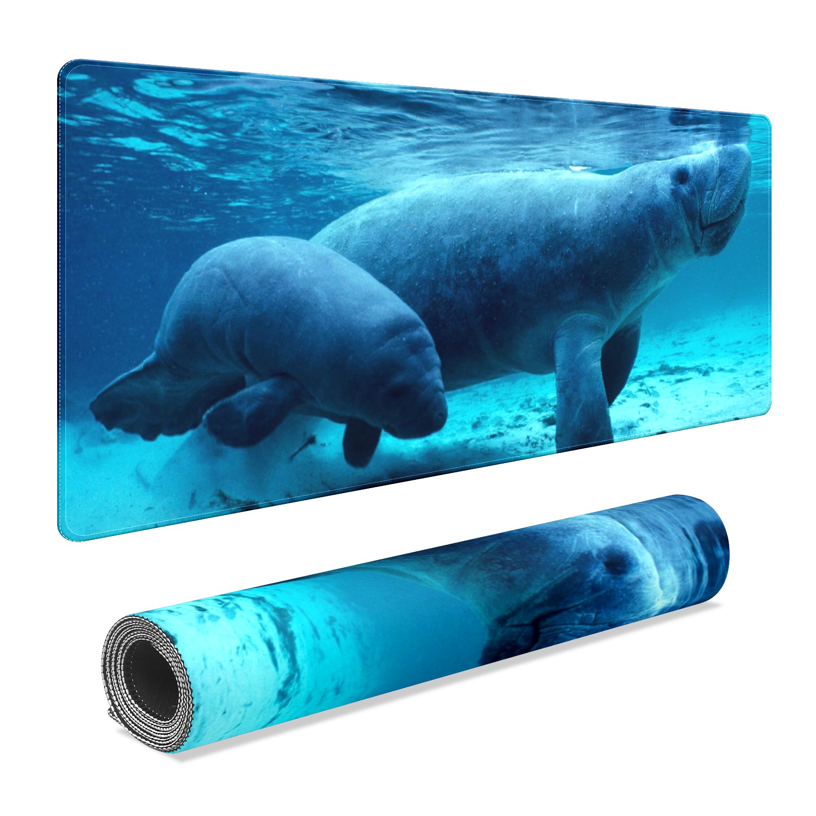 FCZ Large Gaming Mouse Pad 35.4''x15.7'' Manatee Sea Animal Extended Non-Slip Soft Rubber Mousepad Desk Mat for Desktop Office Stitched Edges Waterproof Keyboard Mat for Computer Laptop