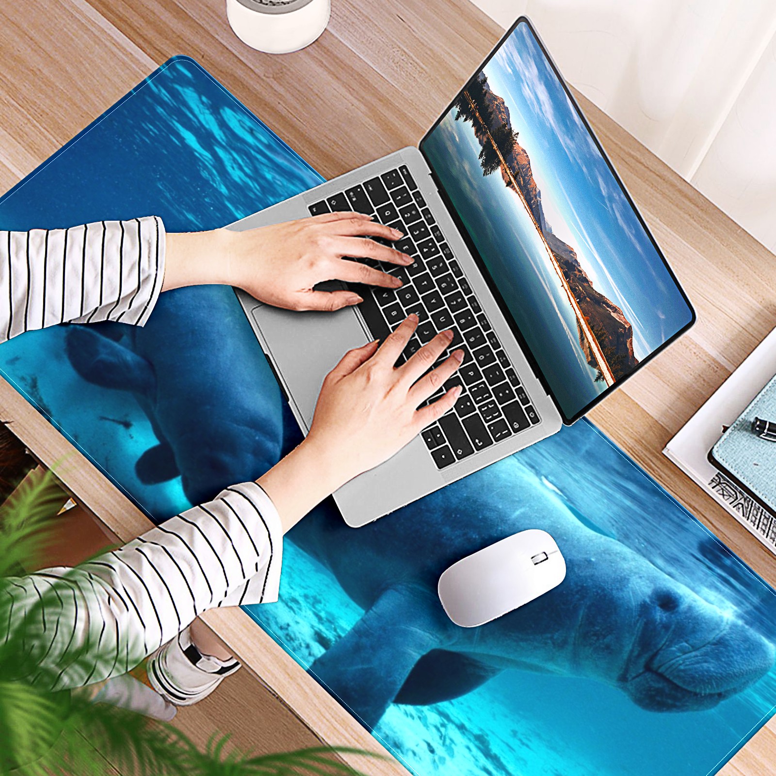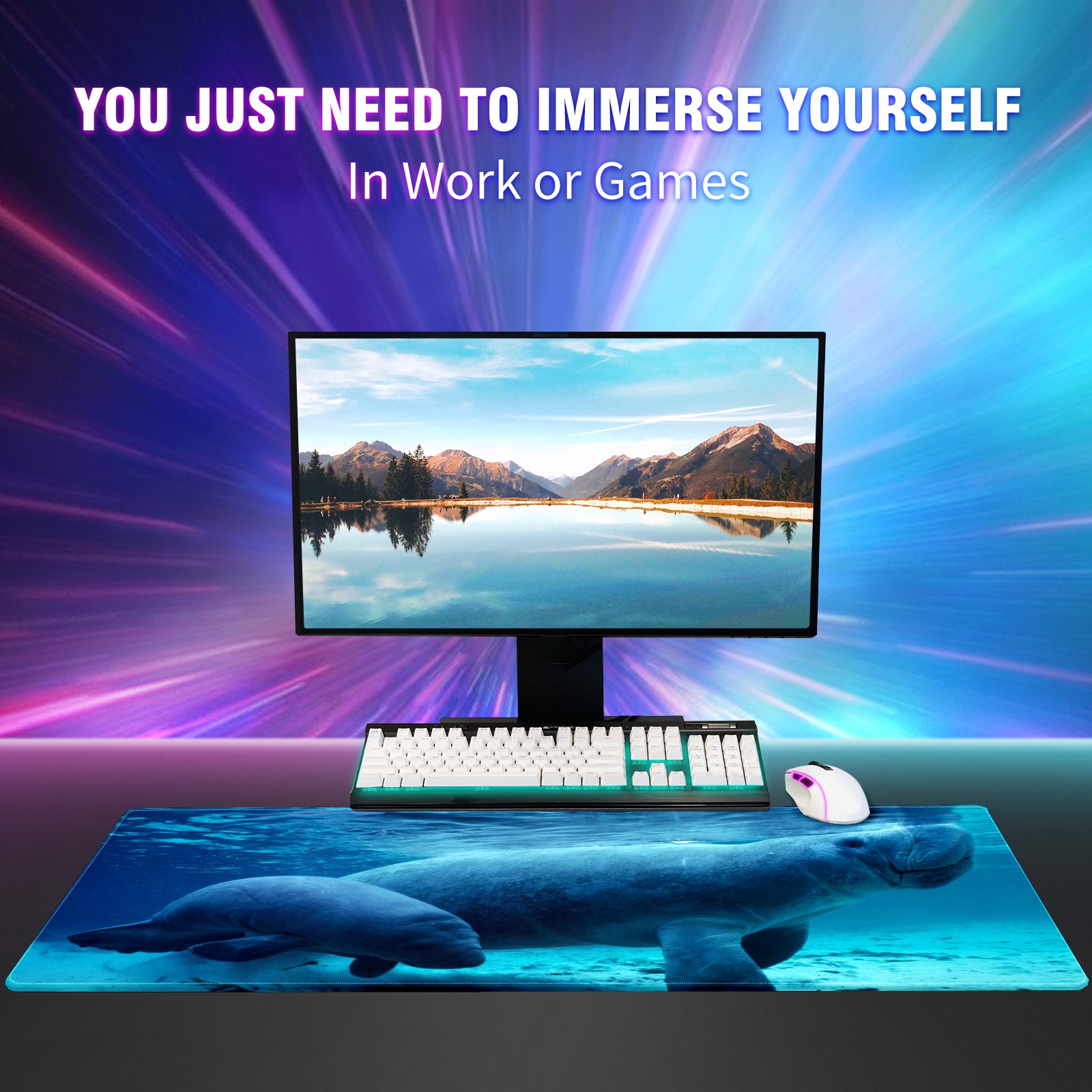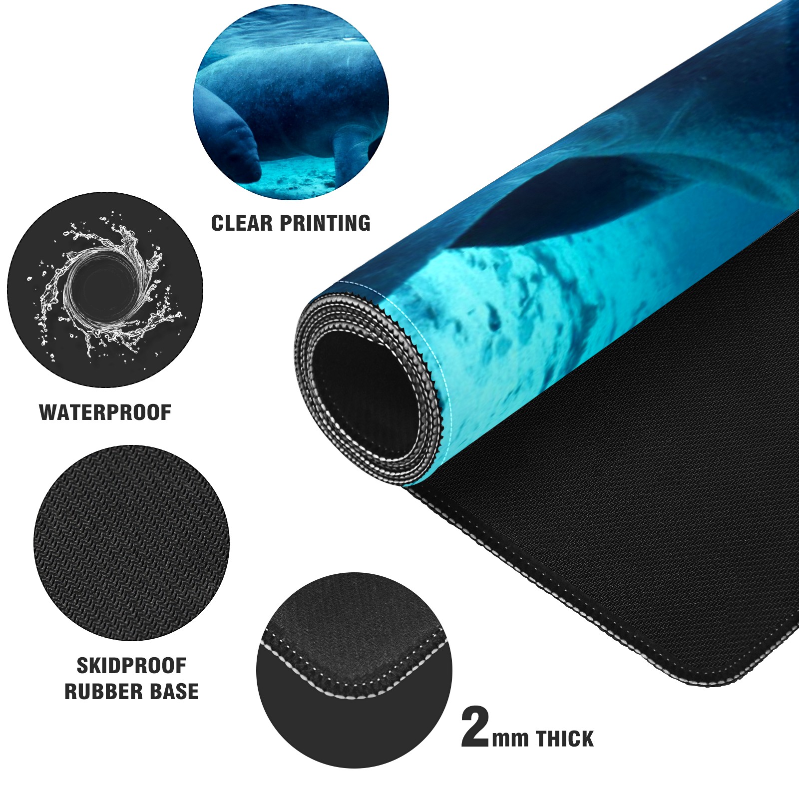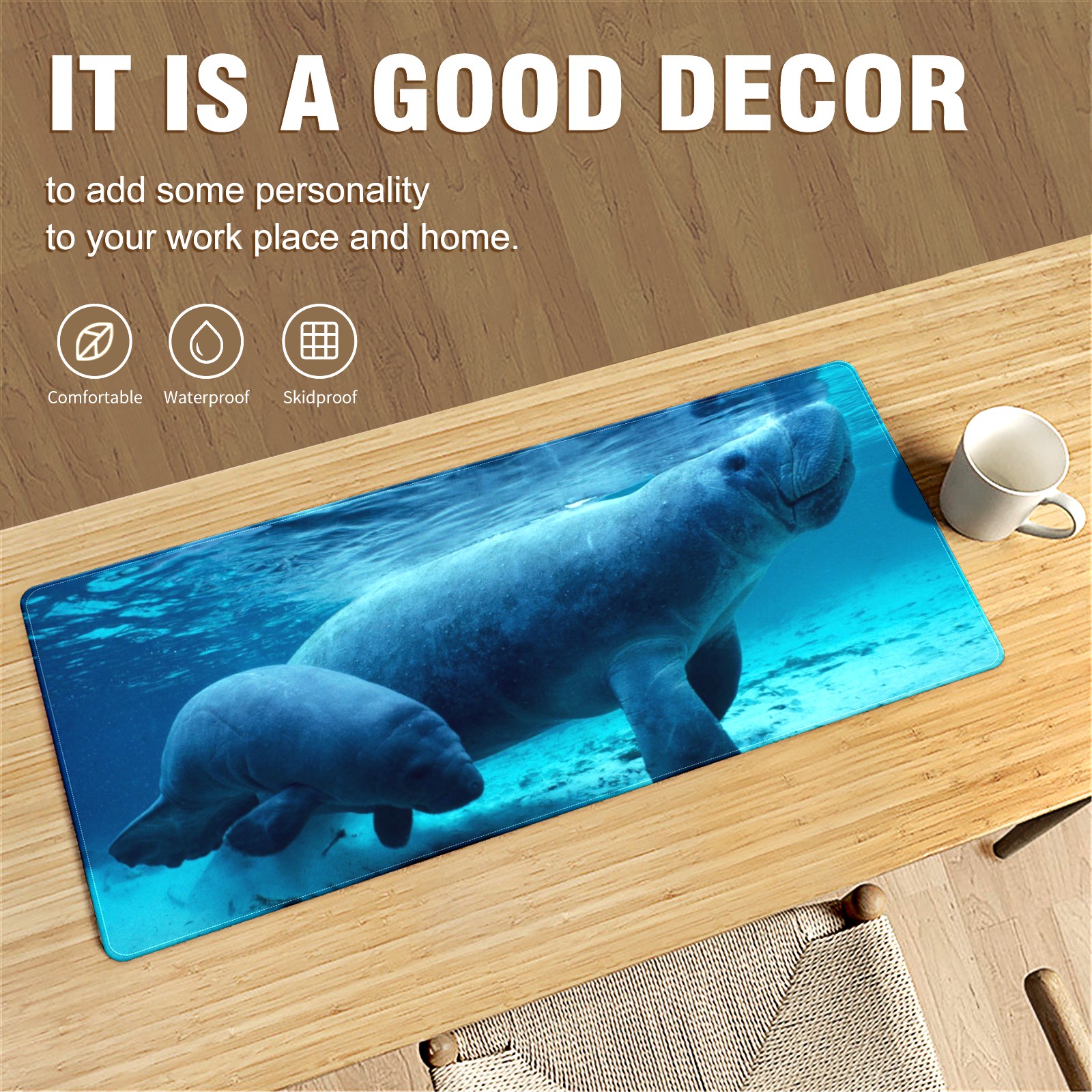 FCZ Large Gaming Mouse Pad 35.4''x15.7'' Manatee Sea Animal Extended Non-Slip Soft Rubber Mousepad Desk Mat for Desktop Office Stitched Edges Waterproof Keyboard Mat for Computer Laptop