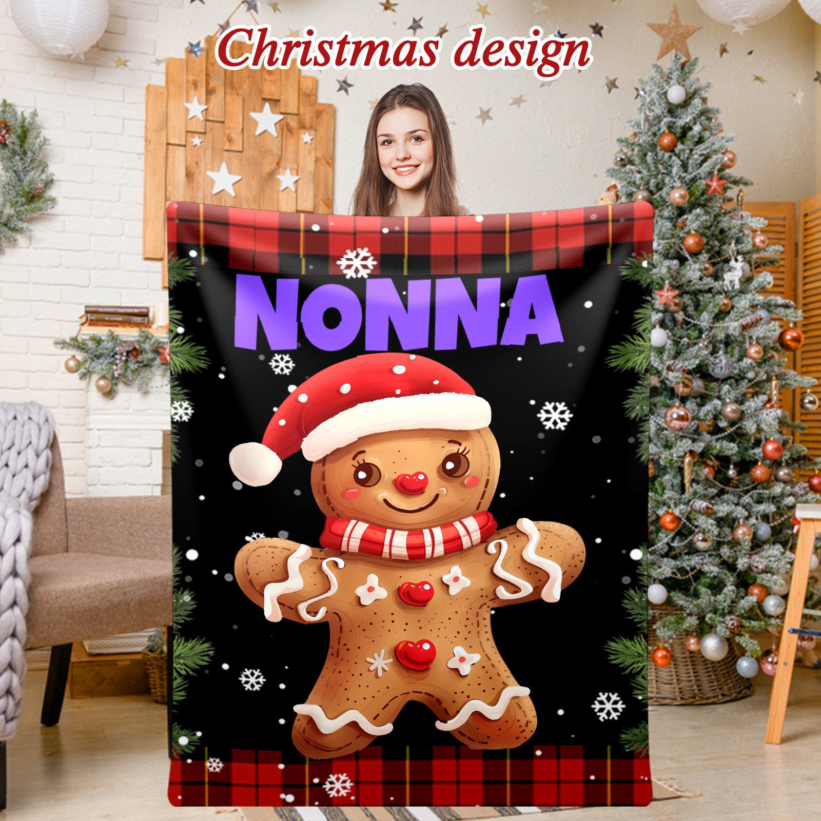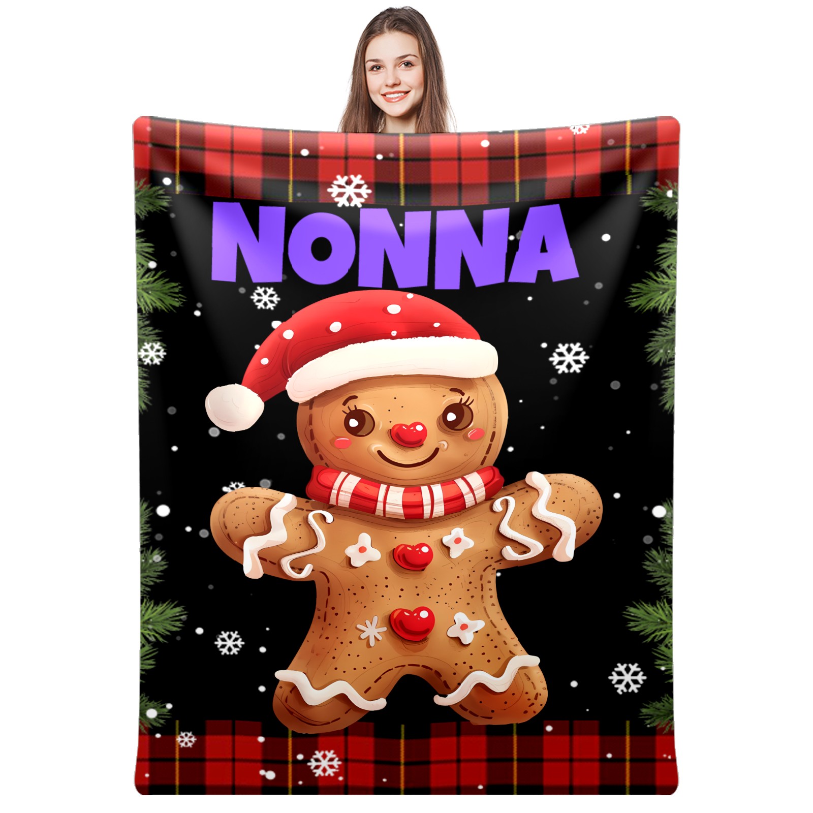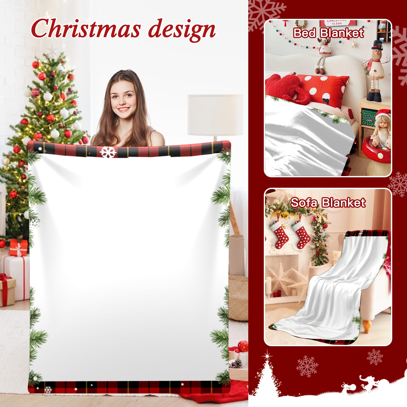 Custom Christmas Luxury Velvet Super Soft Comfort Personalized Fleece Blanket-Holiday Theme Home Décor Fuzzy Warm Cozy Throws for Winter Bedding Couch Gift 51x59in 11.12-D
