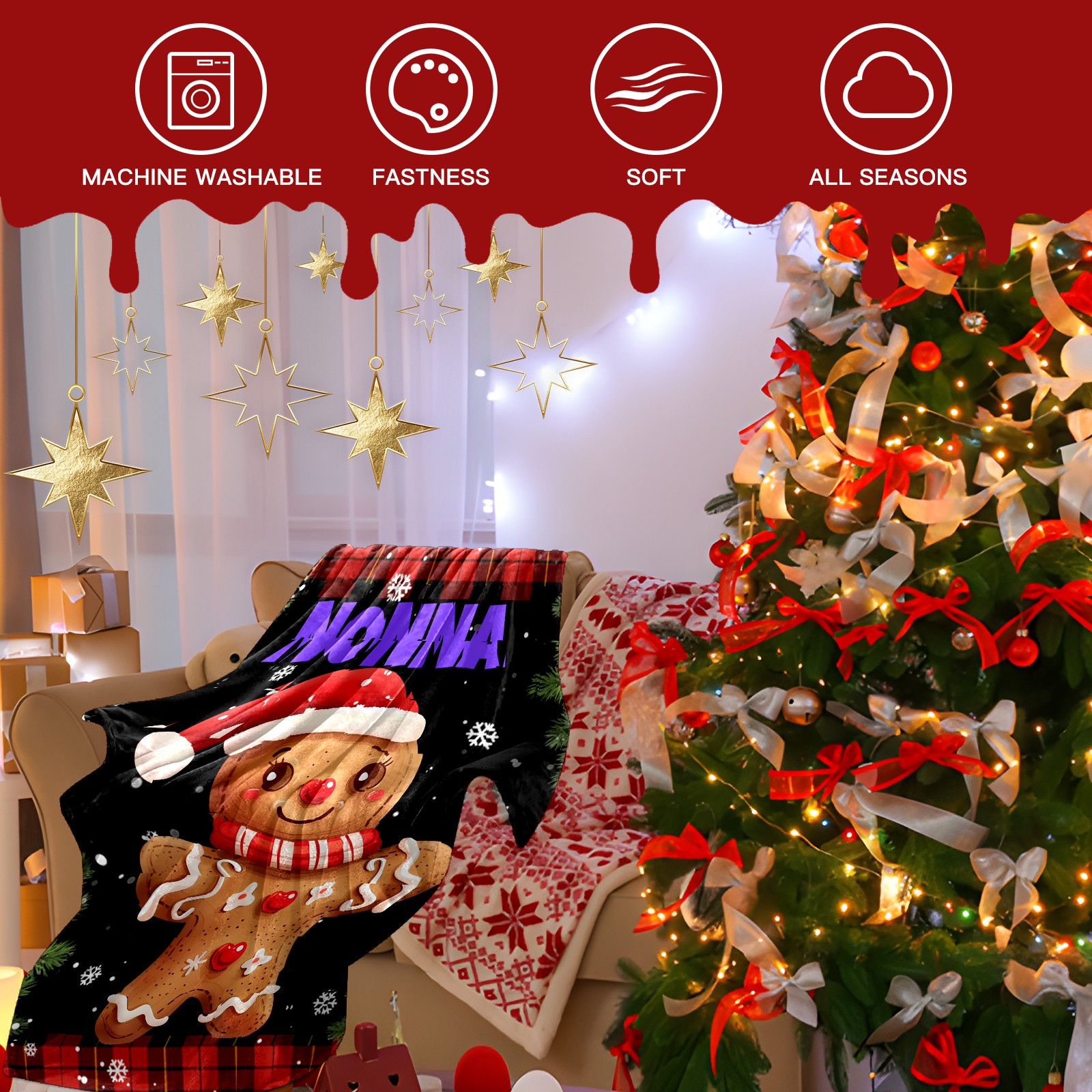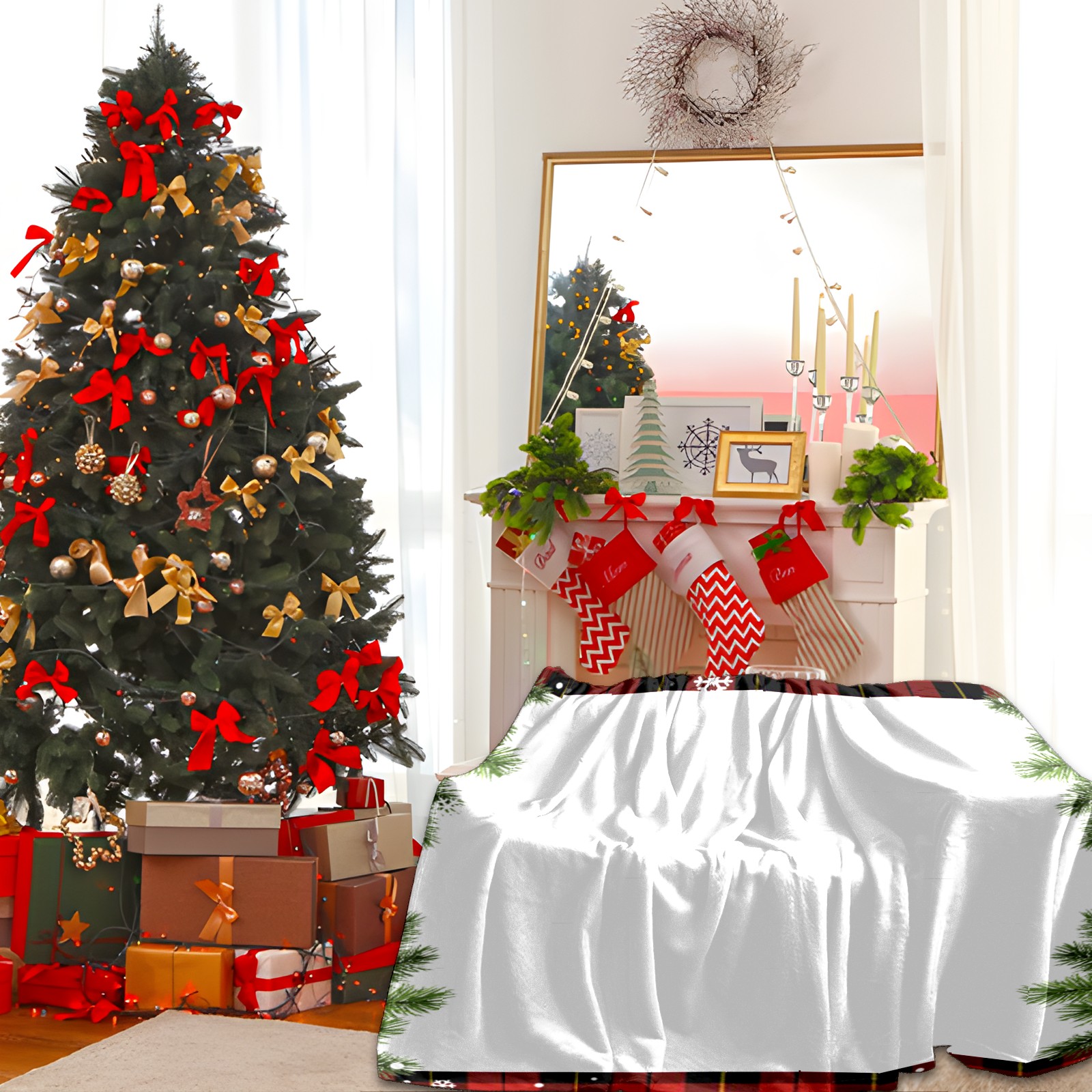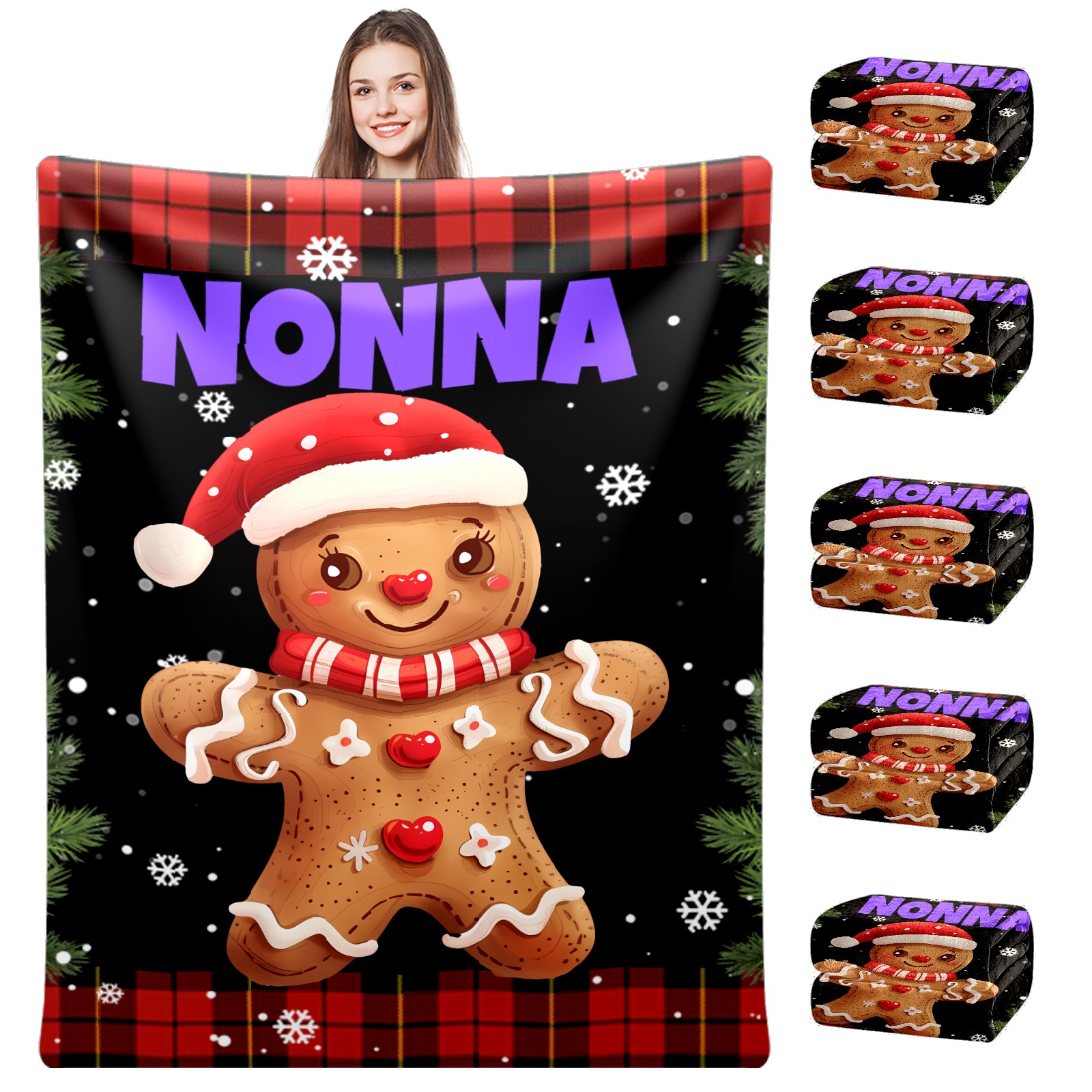 Custom Christmas Luxury Velvet Super Soft Comfort Personalized Fleece Blanket-Holiday Theme Home Décor Fuzzy Warm Cozy Throws for Winter Bedding Couch Gift 51x59in 11.12-D