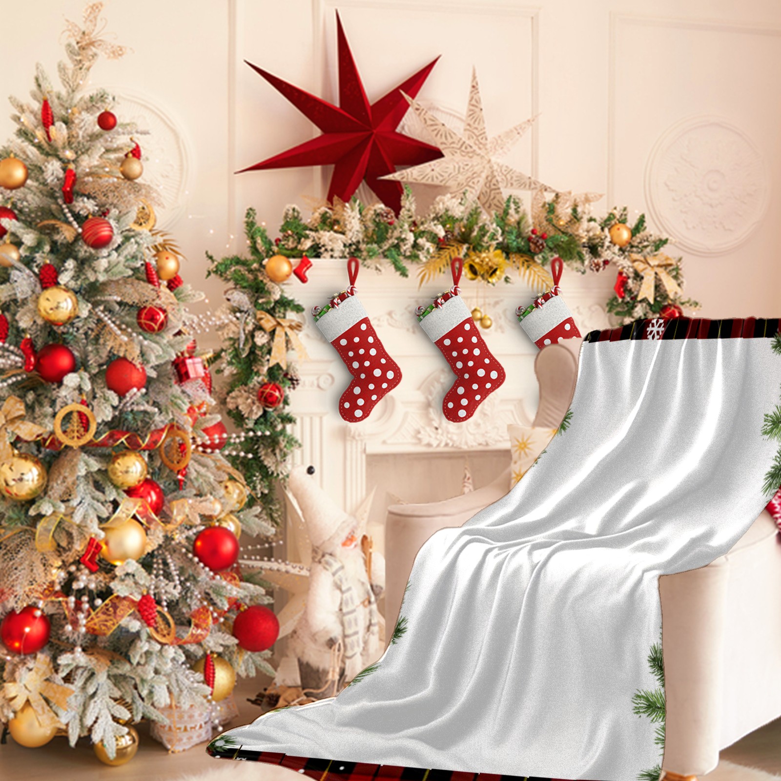<b>【Size】</b>5 sizes. 30x39in/76x100cm; 30x40in/76x102cm; 40x50in/101x127cm; 51x59in /130x150cm; 59x80in/150x203cm <br> <b>【Product performance】</b> <br> ❤Skin-Friendly & Breathable <br> ❤Lightweight & Folded tightly <br> ❤Anti-pilling & Anti-wrinkle & Anti-allergy <br> ❤Baby Sleep, Travel, Sofa, Nap Blanket , Bed Sheet <br> Easy to Care: The winter holiday snowflake bed blanket is very easy to take care of and can be cleaned using a washing machine. Machine wash separately in cold water, use gentle wash mode, tumble dry low and do not bleach. It is recommended to clean it before the first use to better enjoy warm time.