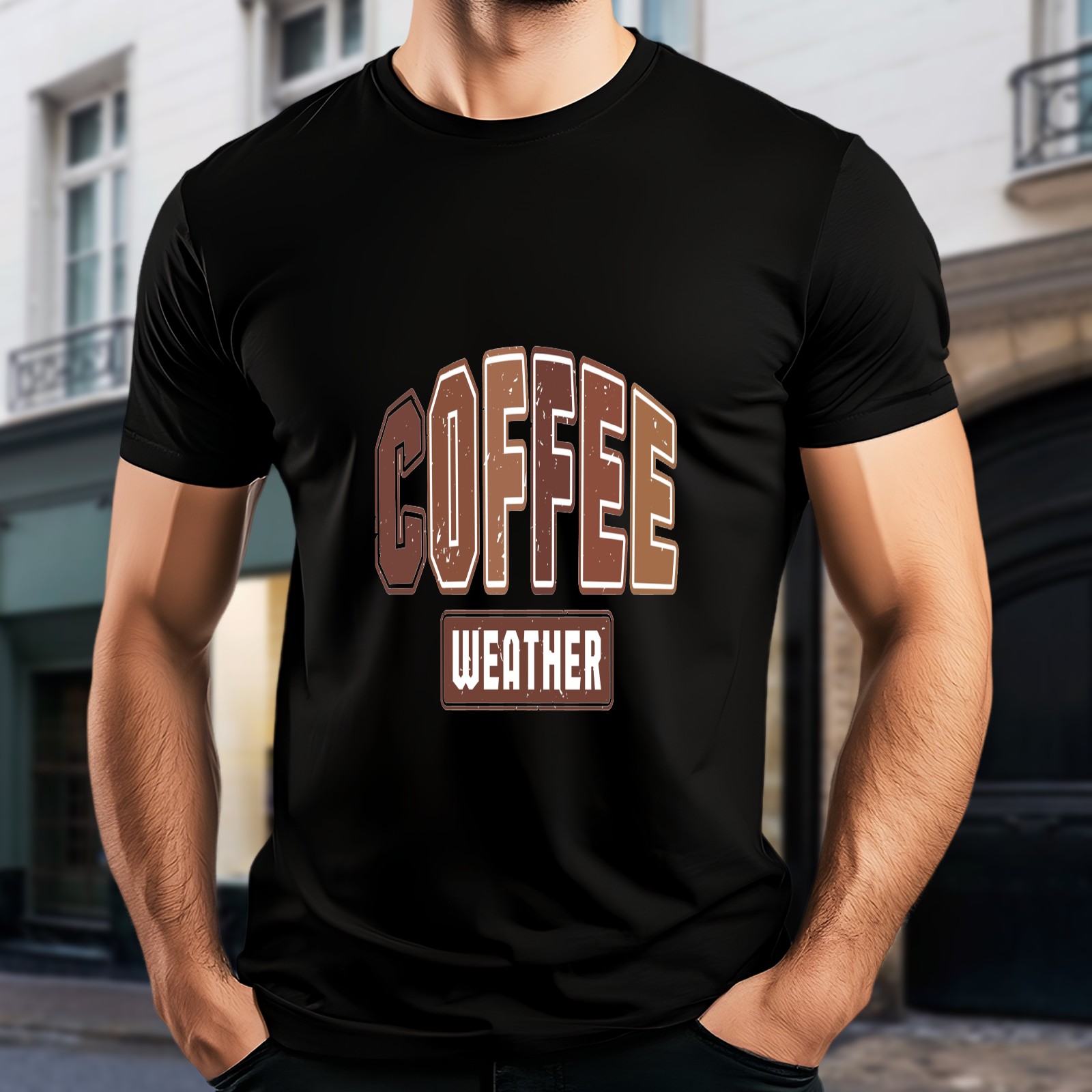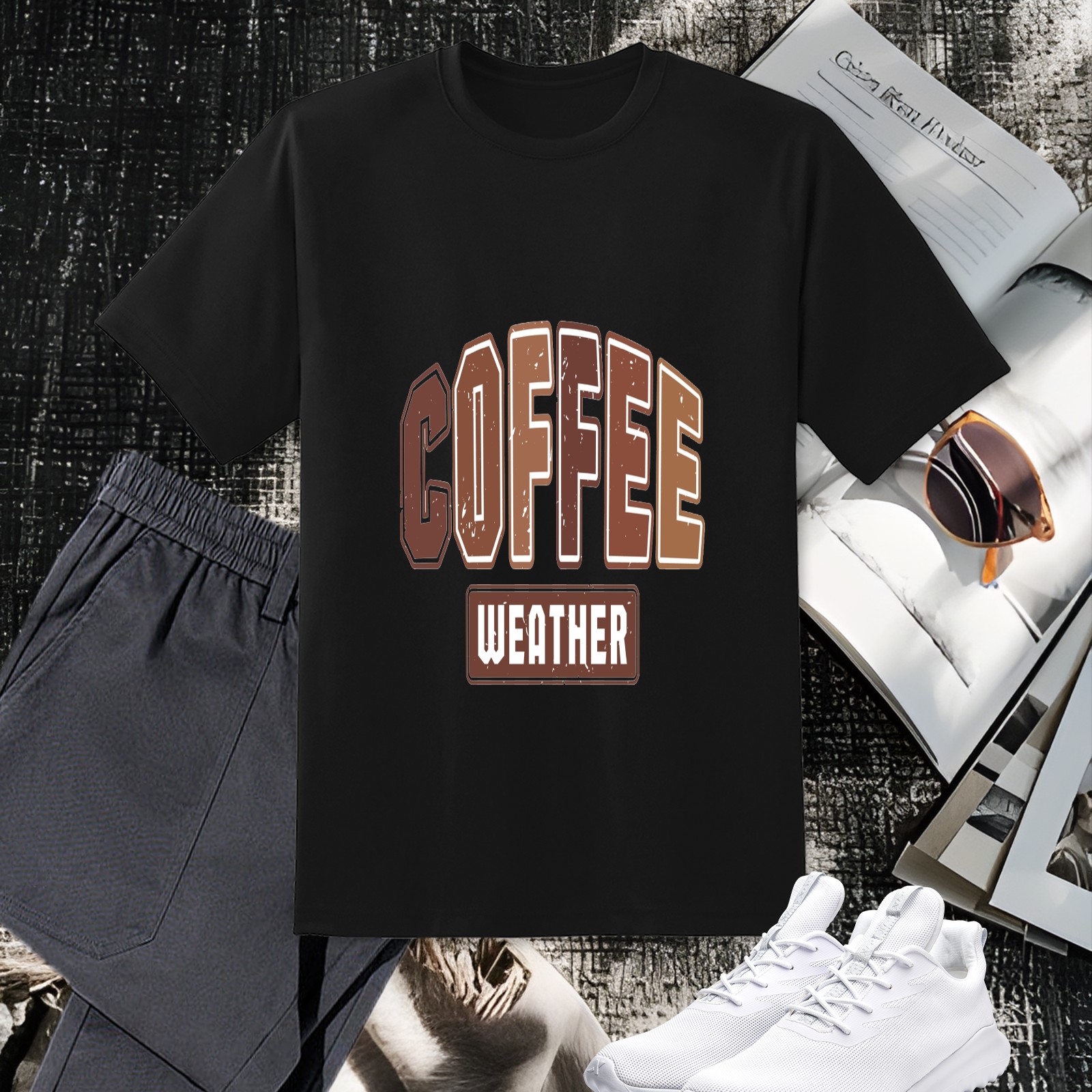 Men's COFFEE Versatile Casual Short Sleeved Shirt Paired With Fashionable Round Neck T-shirt,Suitable For Valentine's Day, Holiday Gifts, Suitable For Outdoor Daily Wear
