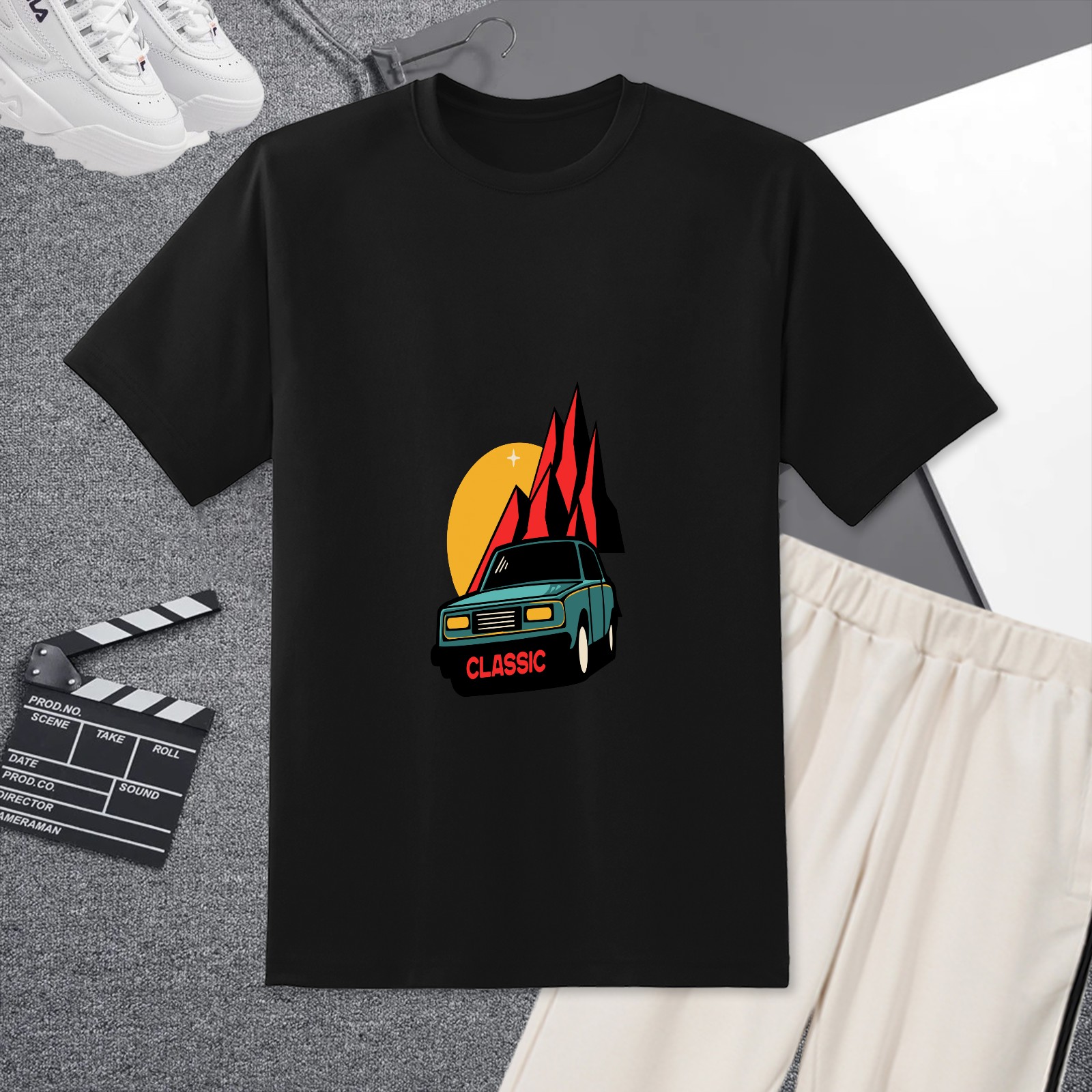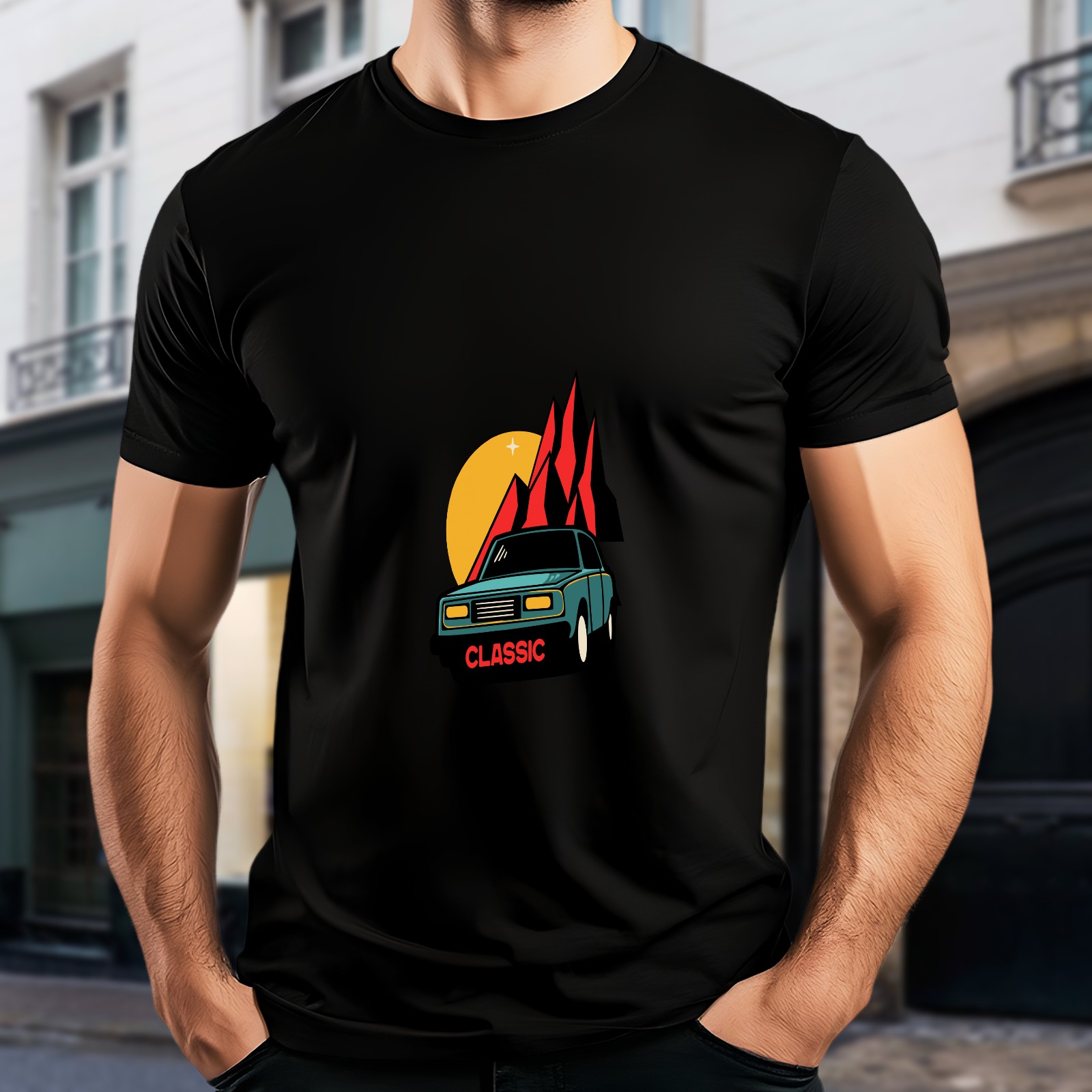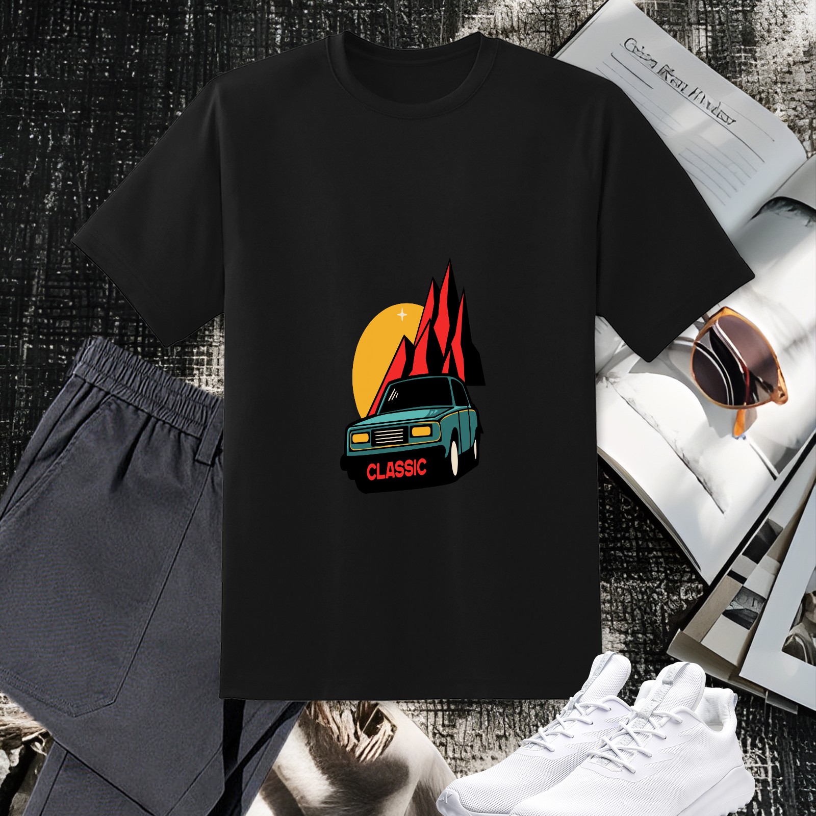 Men's Car Versatile Casual Short Sleeved Shirt Paired With Fashionable Round Neck T-shirt,Suitable For Valentine's Day, Holiday Gifts, Suitable For Outdoor Daily Wear