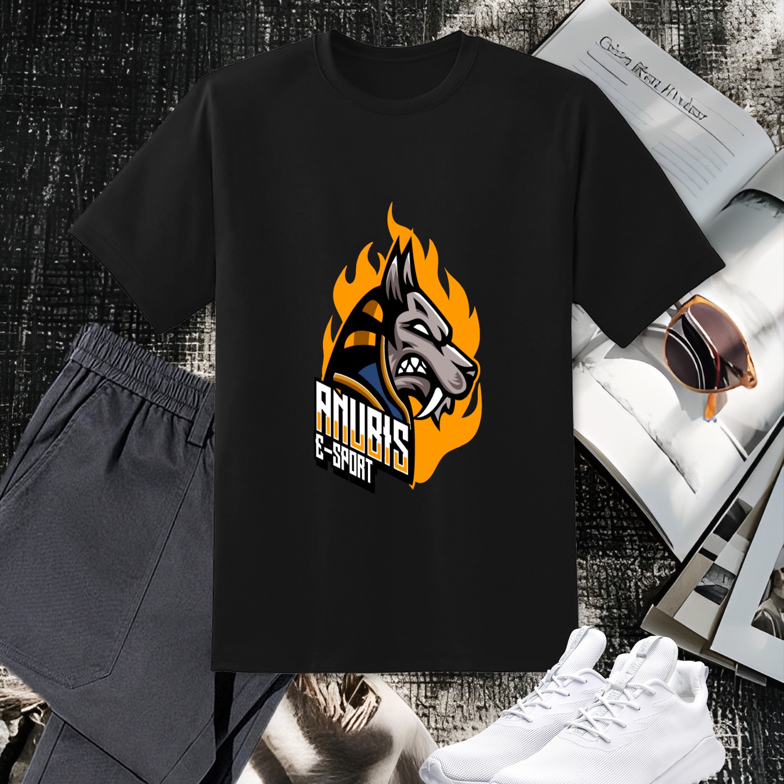 Men's Anubis Versatile Casual Short Sleeved Shirt Paired With Fashionable Round Neck T-shirt,Suitable For Valentine's Day, Holiday Gifts, Suitable For Outdoor Daily Wear