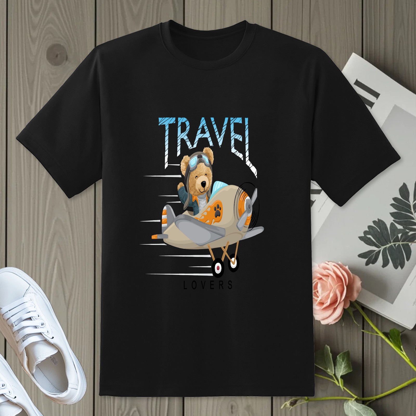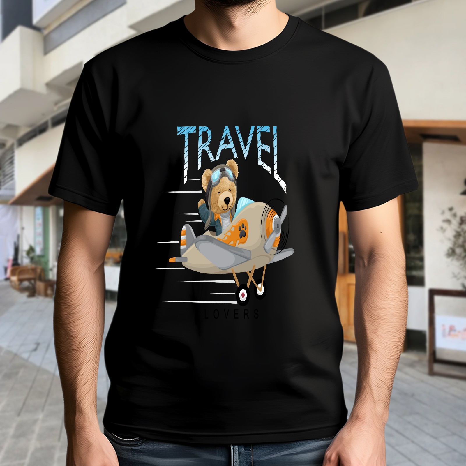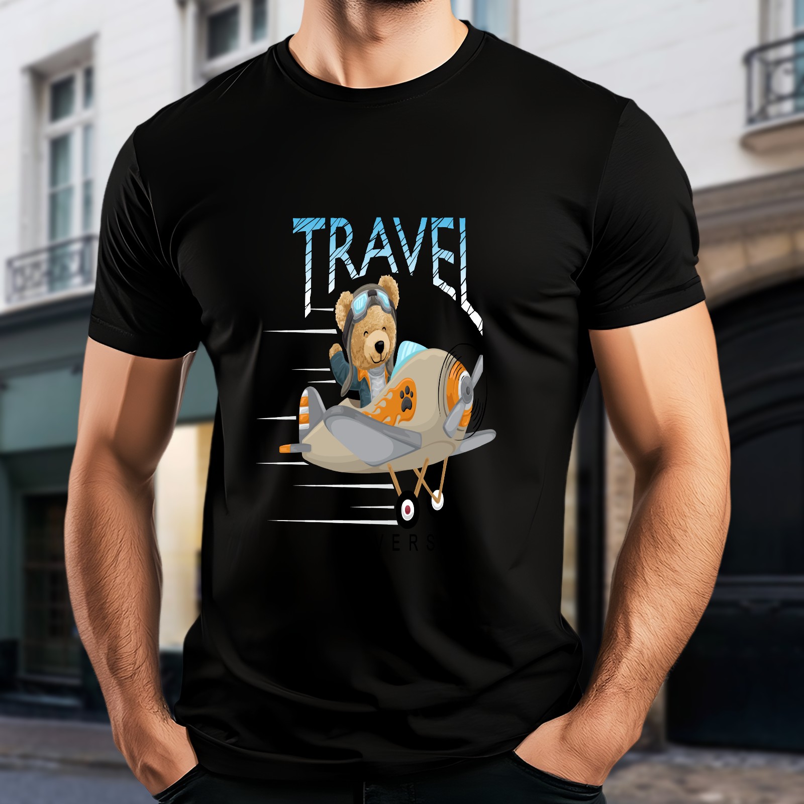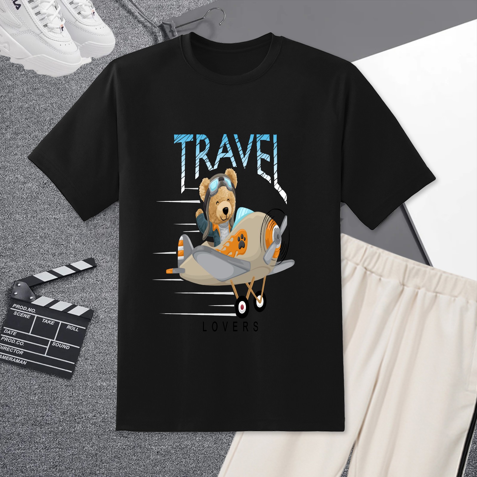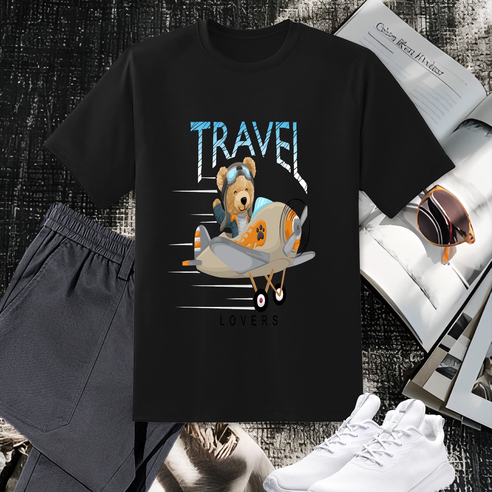 Men's Travei Loves Versatile Casual Short Sleeved Shirt Paired With Fashionable Round Neck T-shirt,Suitable For Valentine's Day, Holiday Gifts, Suitable For Outdoor Daily Wear