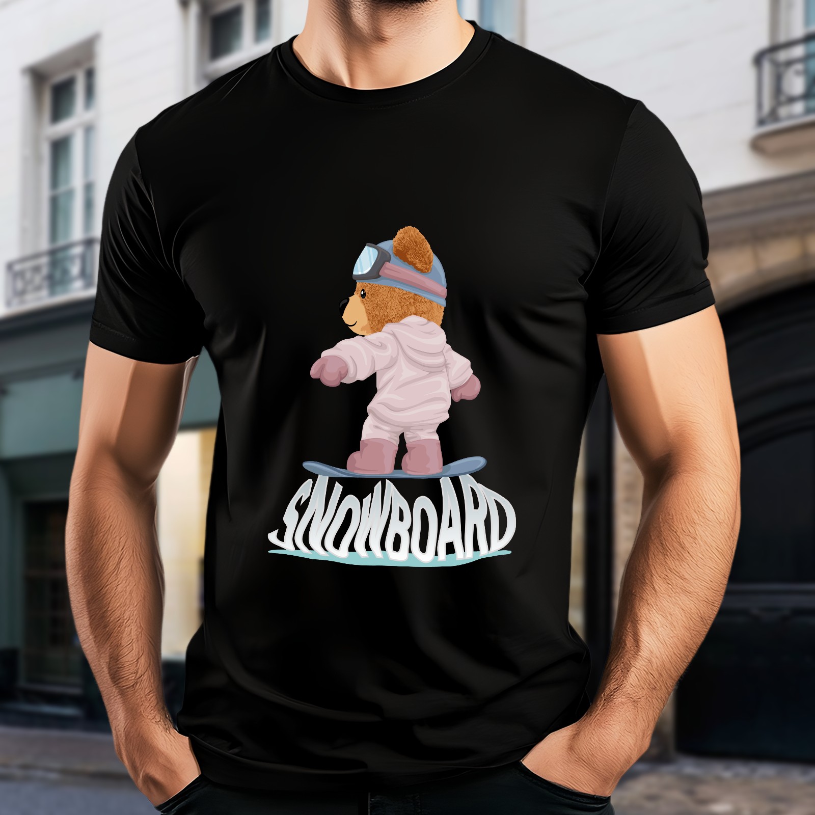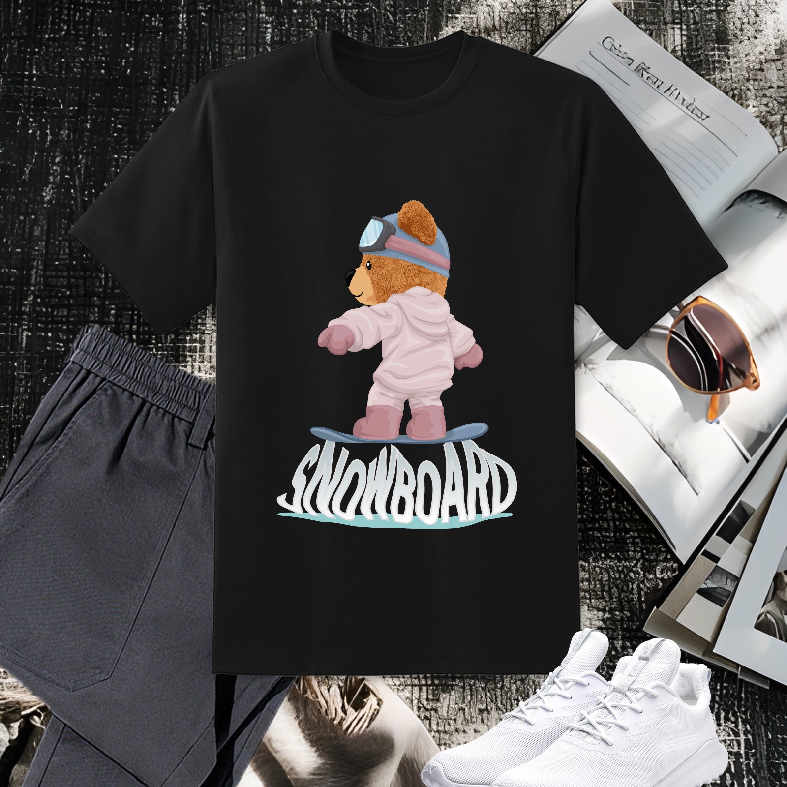 Men's Snowboard Versatile Casual Short Sleeved Shirt Paired With Fashionable Round Neck T-shirt,Suitable For Valentine's Day, Holiday Gifts, Suitable For Outdoor Daily Wear