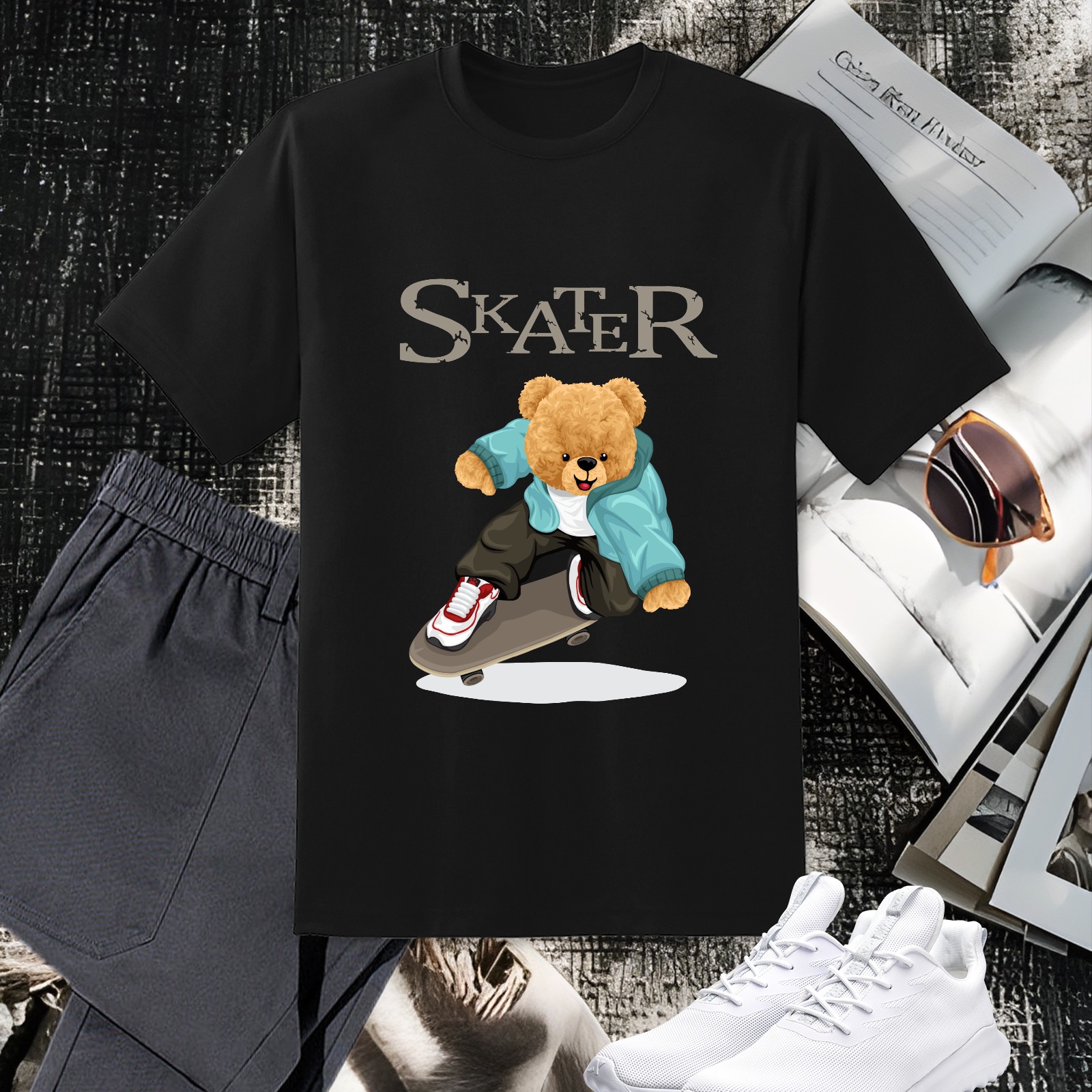 Men's Skater Versatile Casual Short Sleeved Shirt Paired With Fashionable Round Neck T-shirt,Suitable For Valentine's Day, Holiday Gifts, Suitable For Outdoor Daily Wear