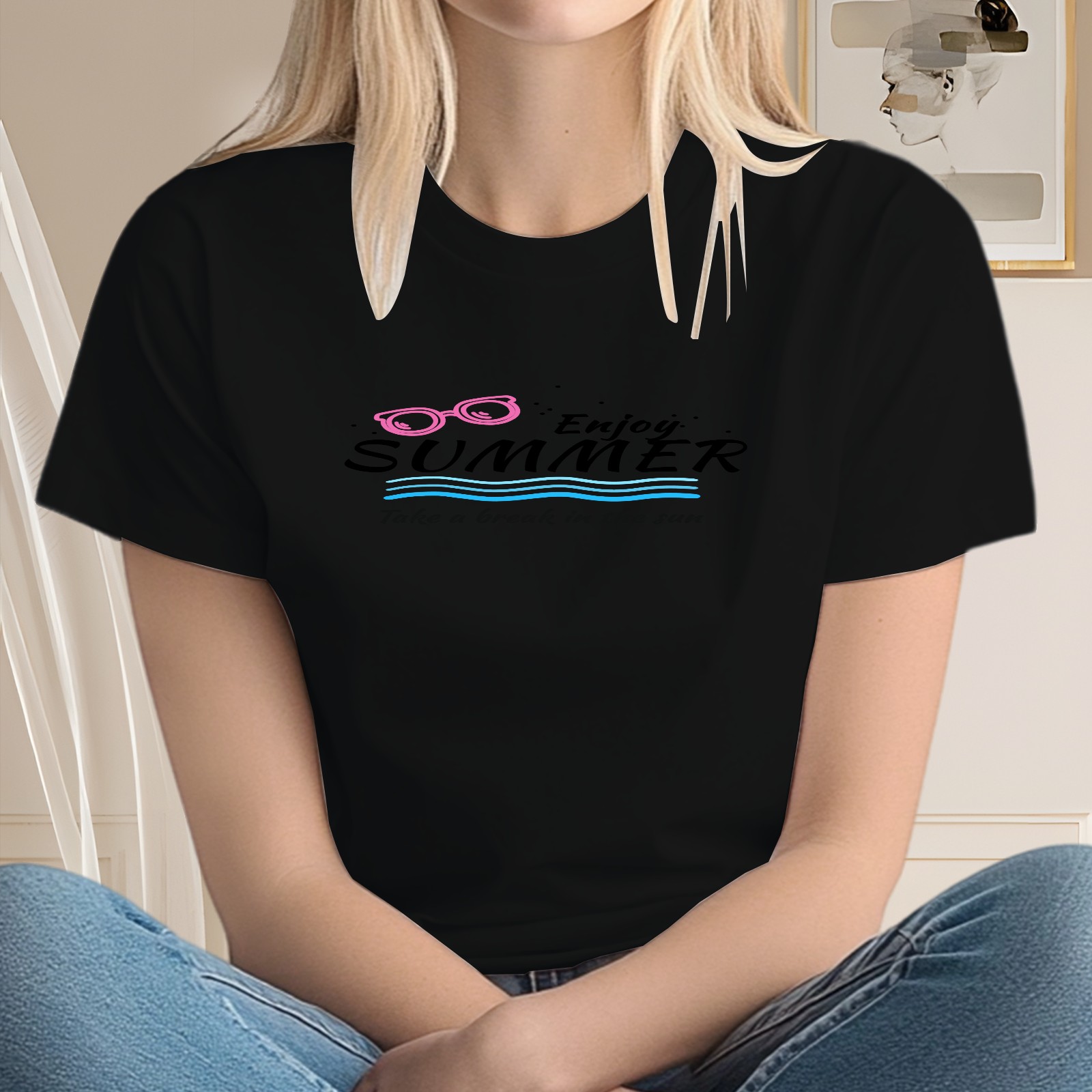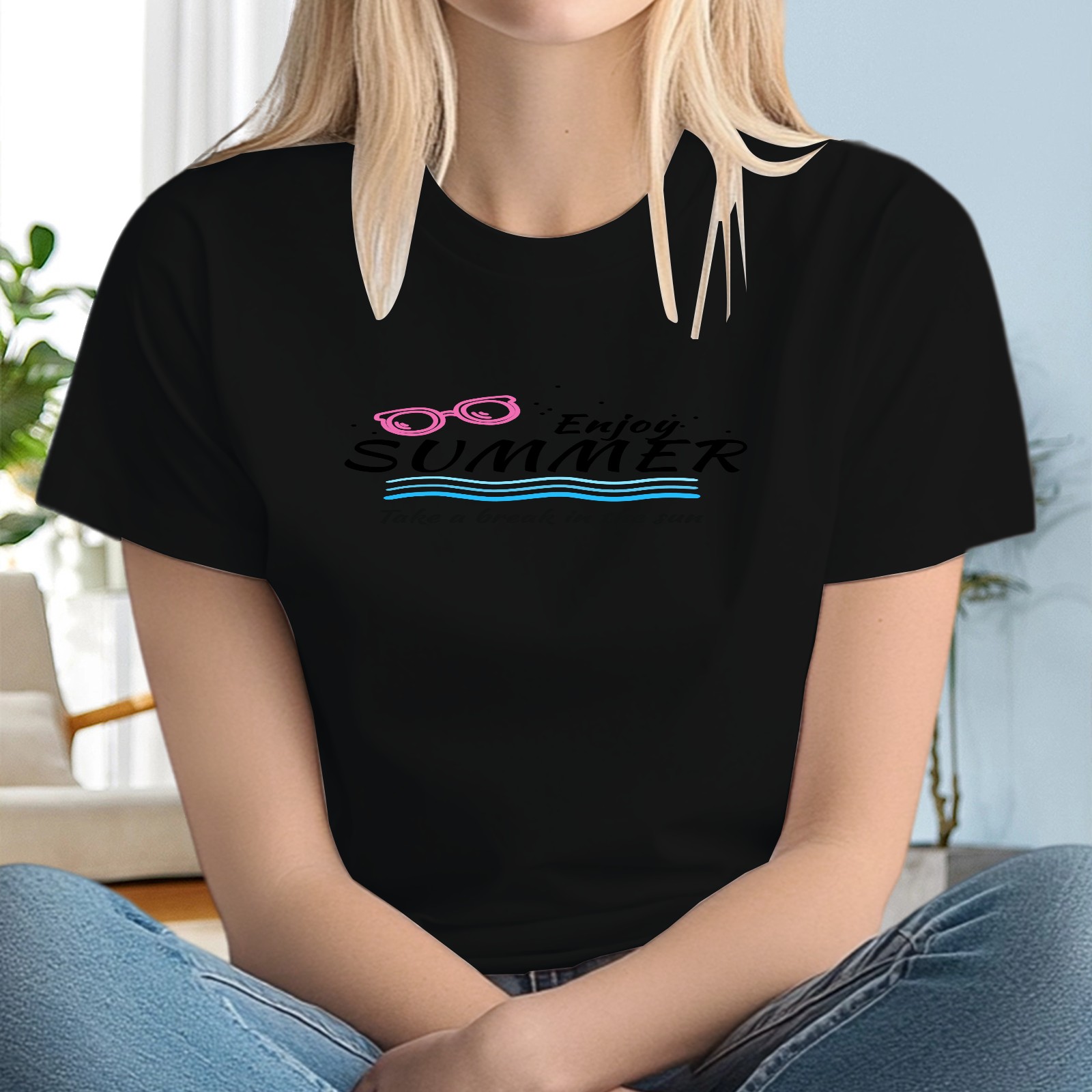 Ladies' Enjoy Summer Casual And Fashionable Round Neck T-shirt, Suitable For Valentine's Day, St. Patrick's Day, Easter Holiday Gifts