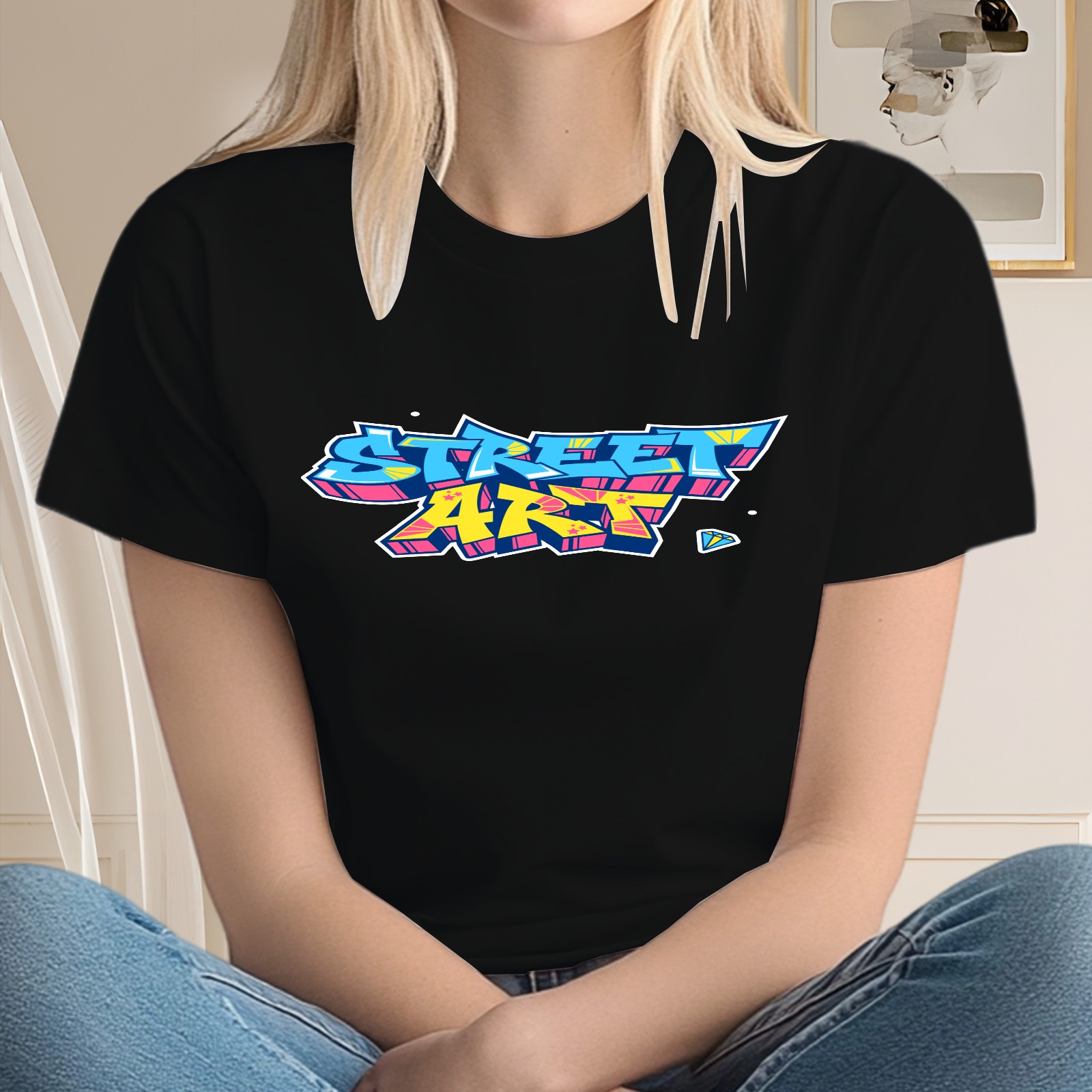Ladies' Street Art Casual And Fashionable Round Neck T-shirt, Suitable For Valentine's Day, St. Patrick's Day, Easter Holiday Gifts
