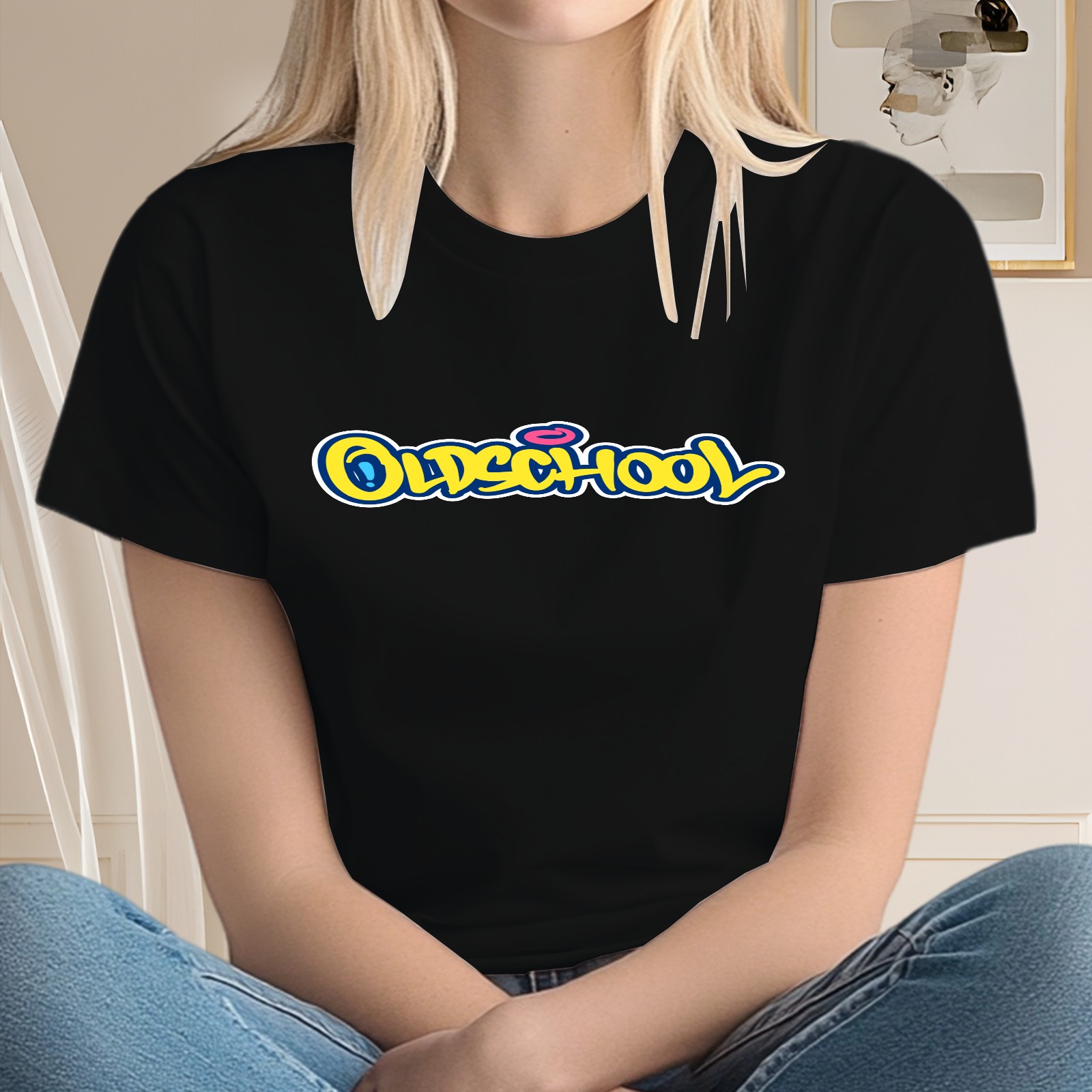 Ladies' Old Scholl Casual And Fashionable Round Neck T-shirt, Suitable For Valentine's Day, St. Patrick's Day, Easter Holiday Gifts