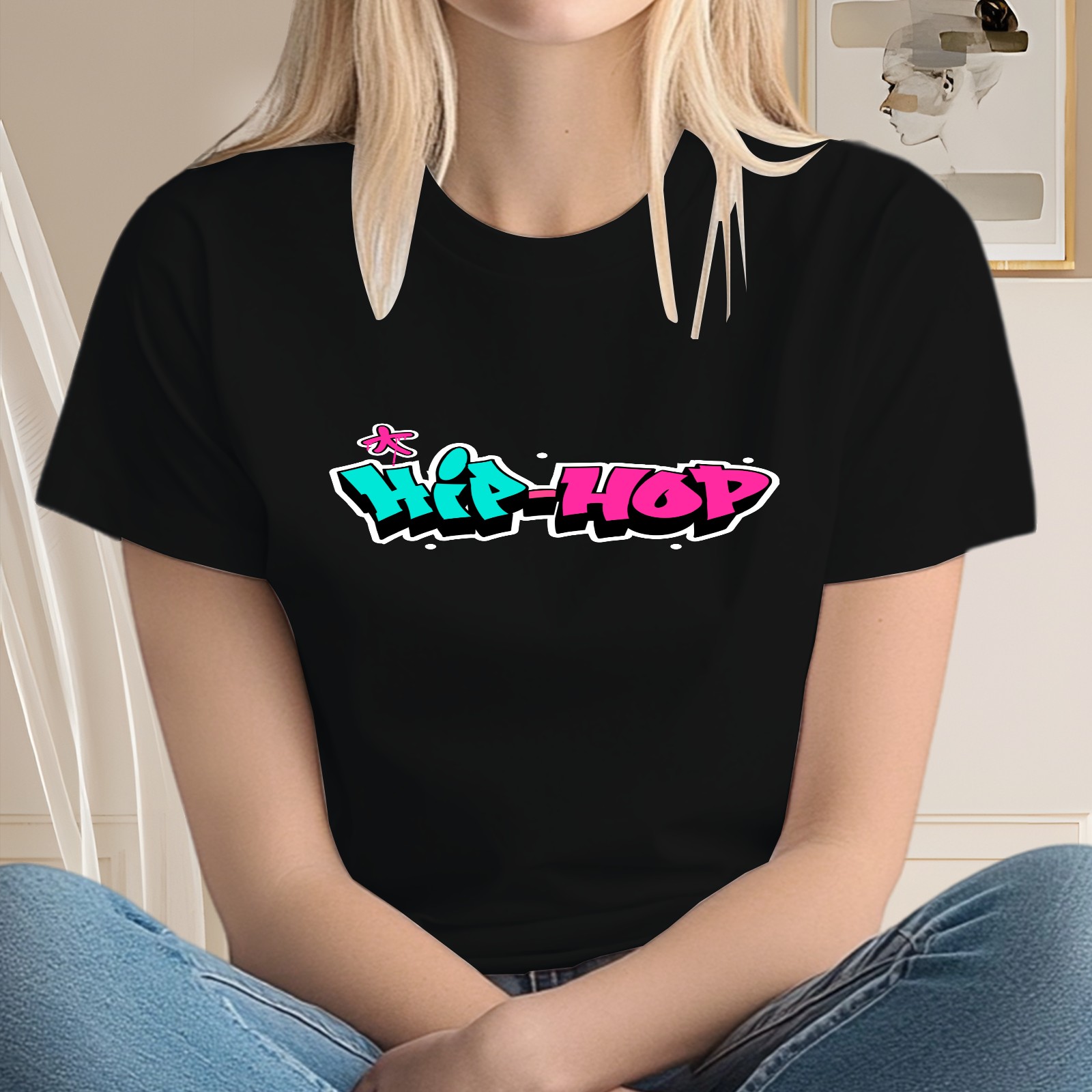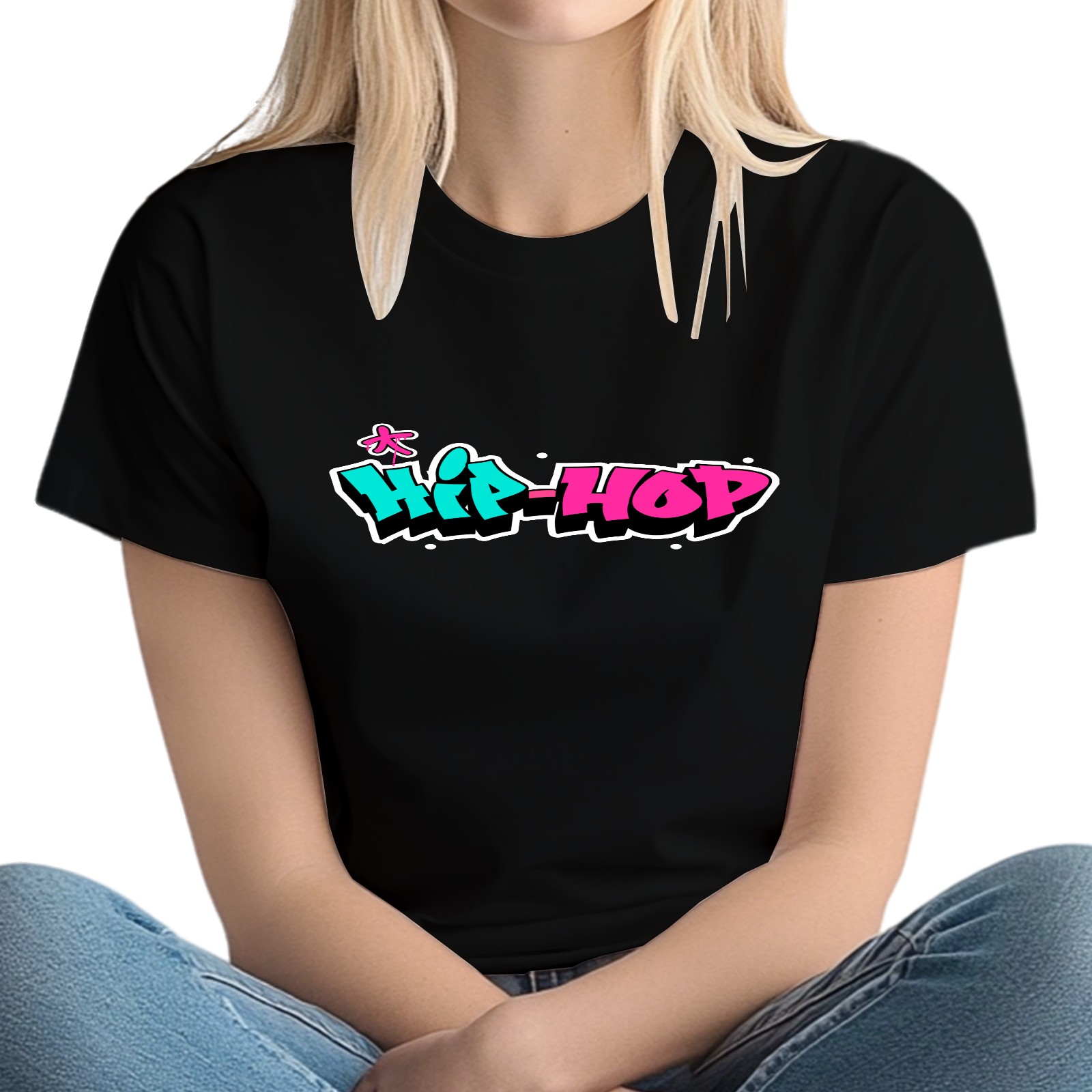 Ladies' Hip-Hop Casual And Fashionable Round Neck T-shirt, Suitable For Valentine's Day, St. Patrick's Day, Easter Holiday Gifts