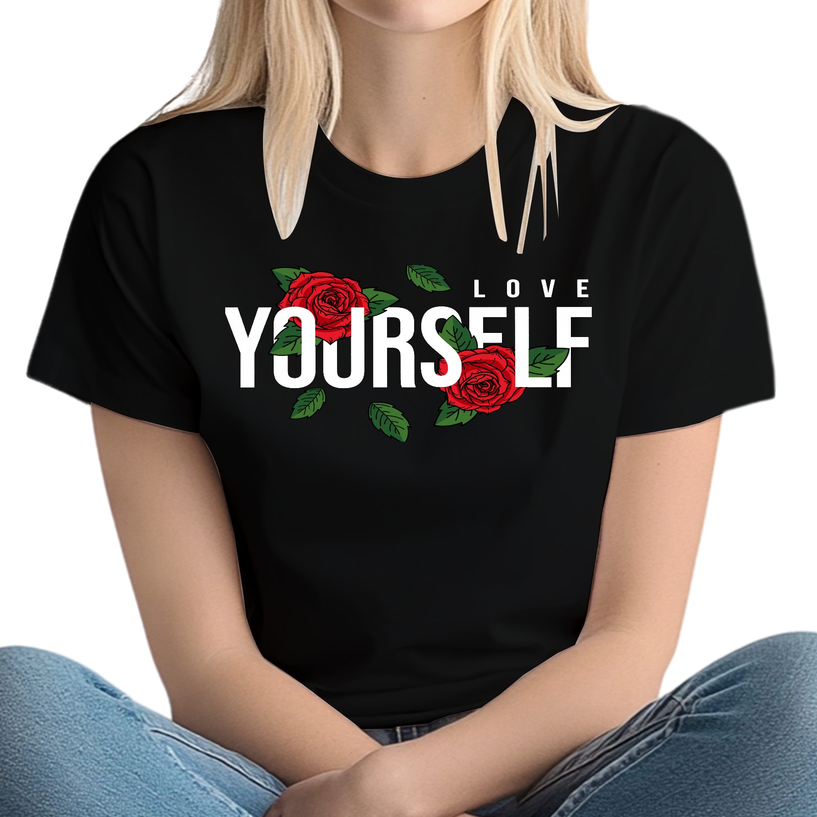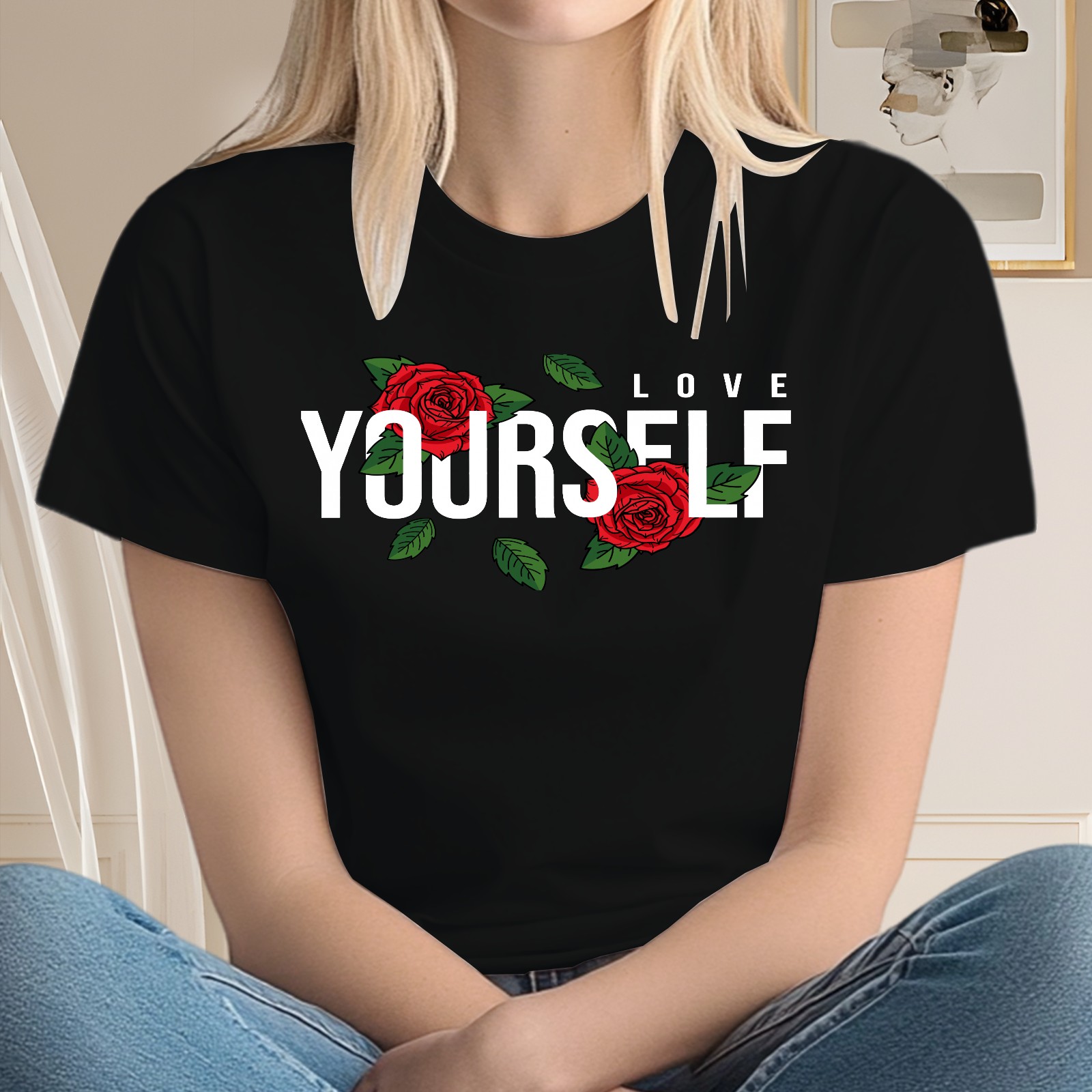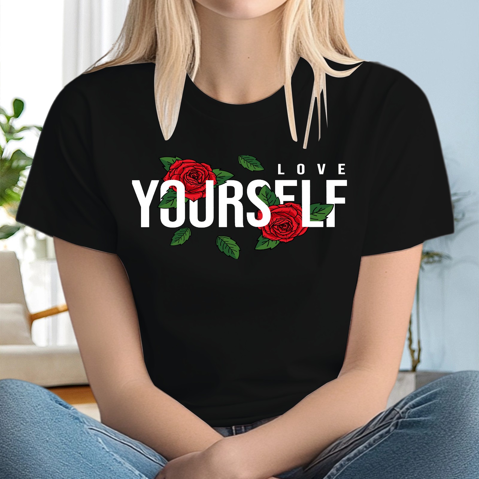 Ladies' Love Yourself Casual And Fashionable Round Neck T-shirt, Suitable For Valentine's Day, St. Patrick's Day, Easter Holiday Gifts