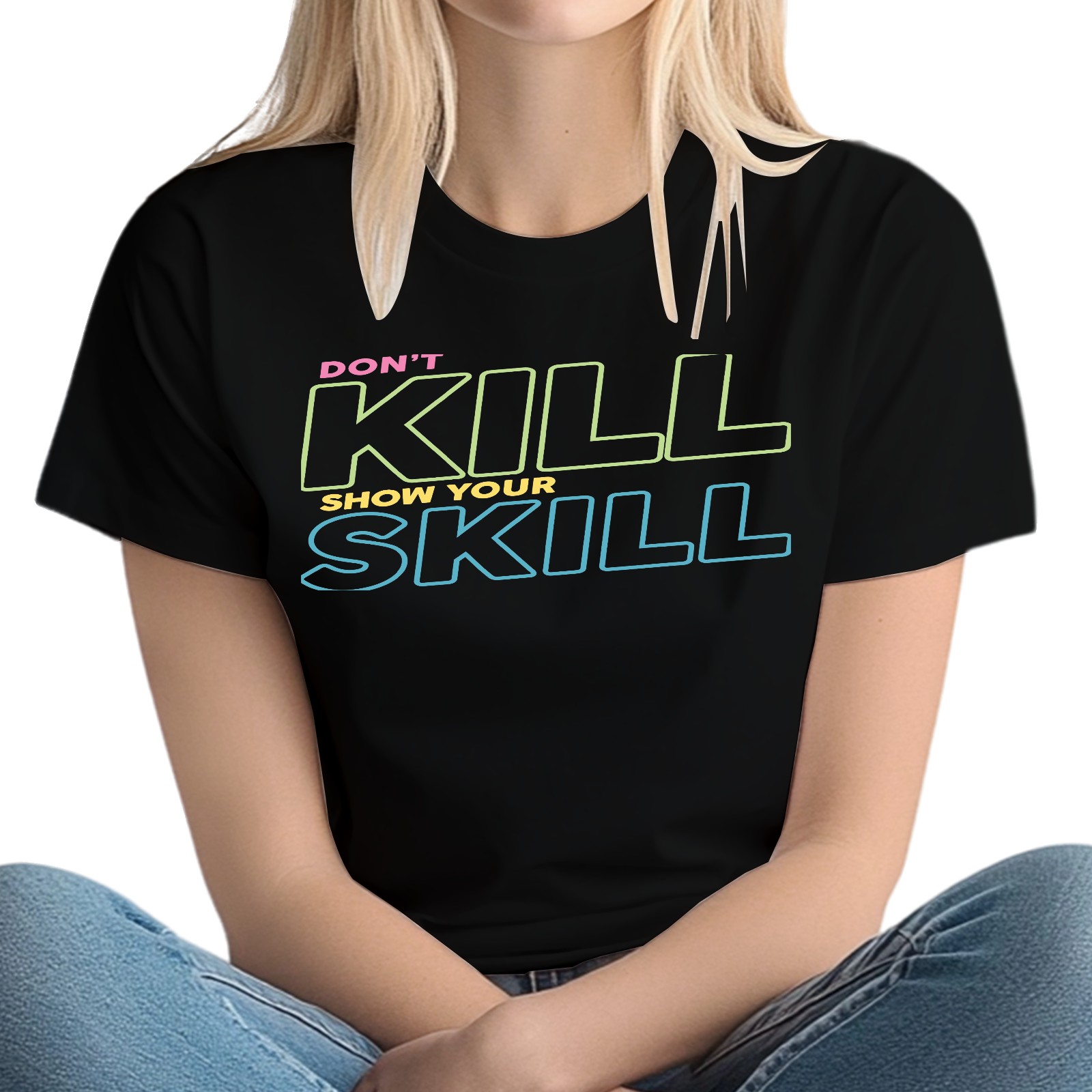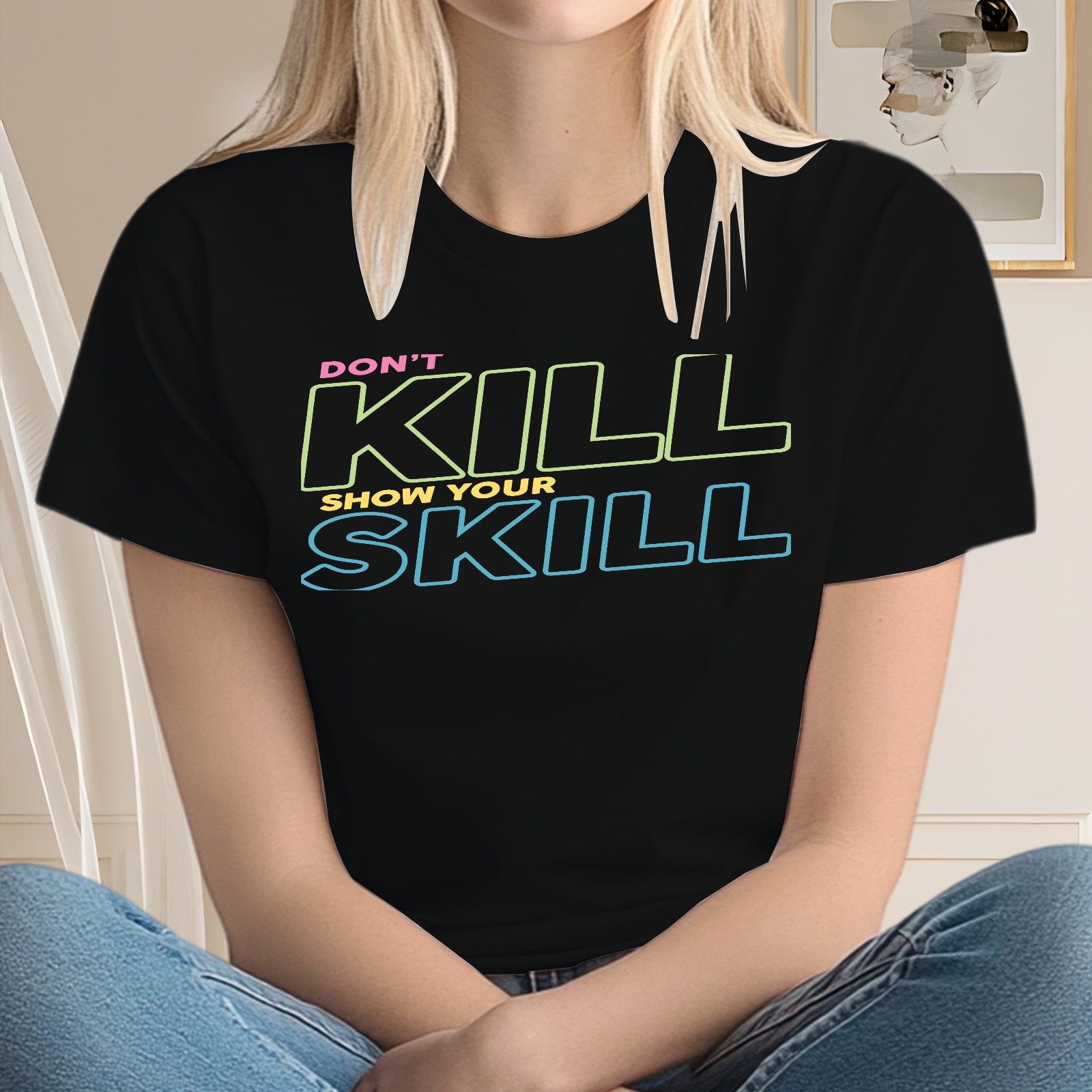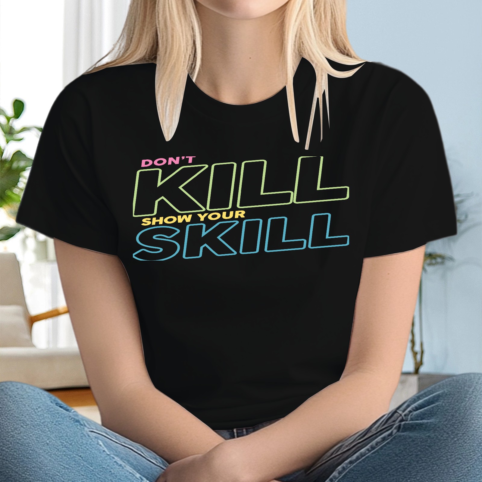 Ladies' Kill Skill Casual And Fashionable Round Neck T-shirt, Suitable For Valentine's Day, St. Patrick's Day, Easter Holiday Gifts