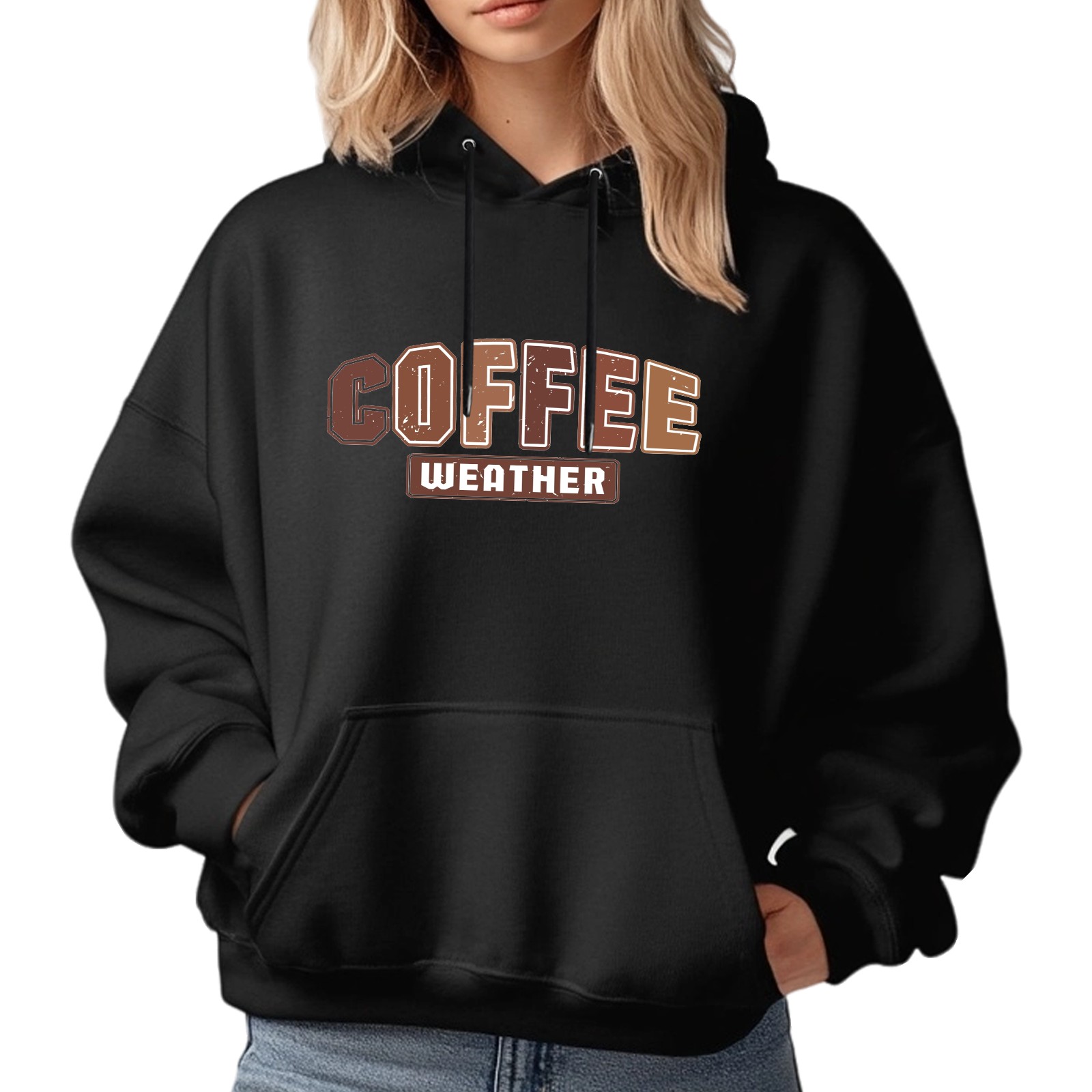 Ladies' COFFEE Casual And Fashionable Hooded Sweatshirt, Loose And Comfortable, Suitable For Valentine's Day, Gifts For Various Holidays