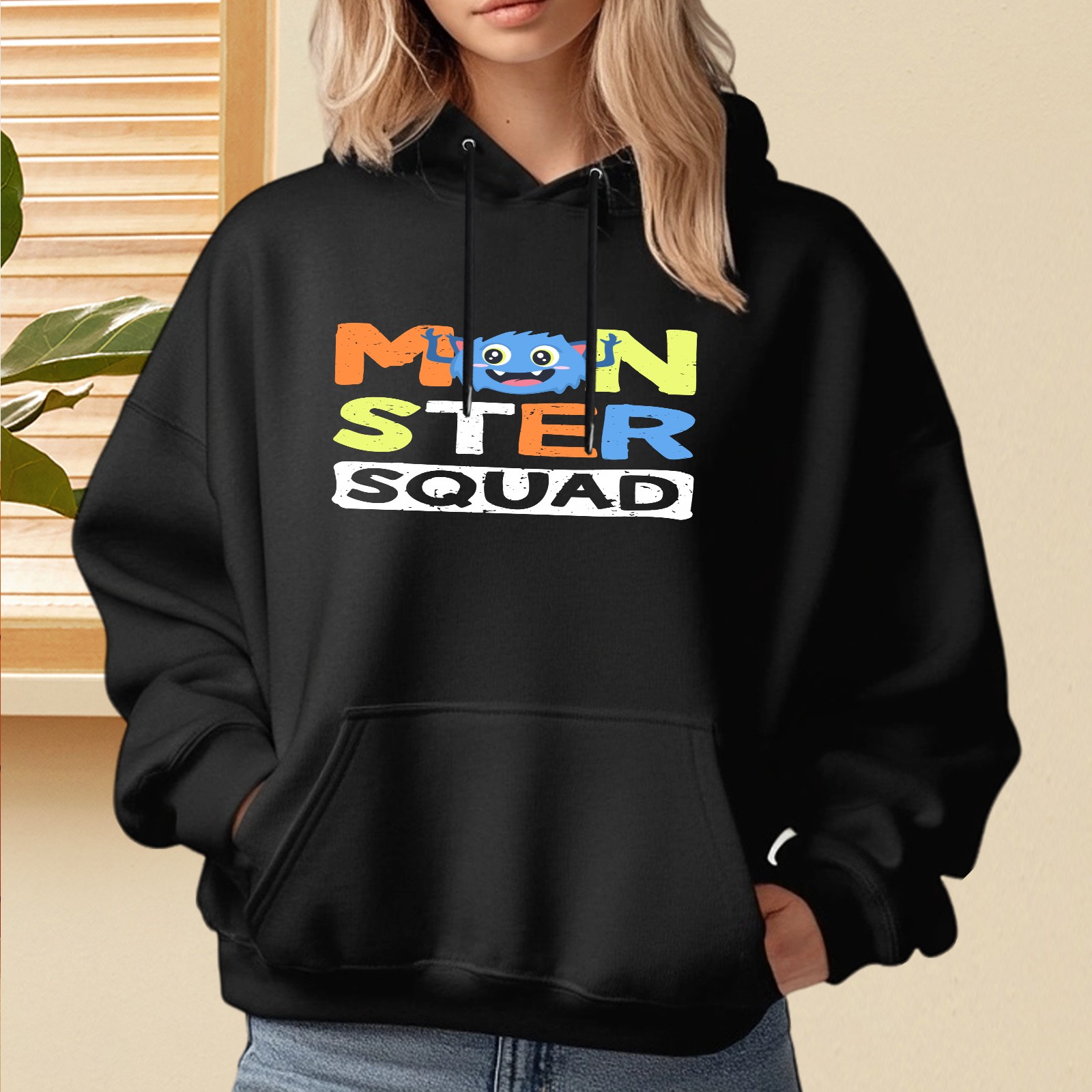 Ladies' Mon Ster Souad Casual And Fashionable Hooded Sweatshirt, Loose And Comfortable, Suitable For Valentine's Day, Gifts For Various Holidays