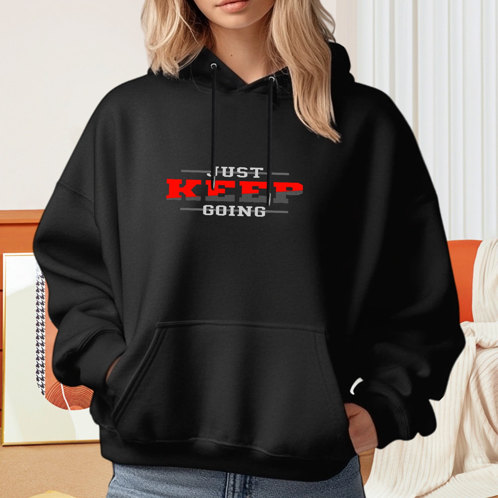 Ladies' Keep Going Casual And Fashionable Hooded Sweatshirt, Loose And Comfortable, Suitable For Valentine's Day, Gifts For Various Holidays