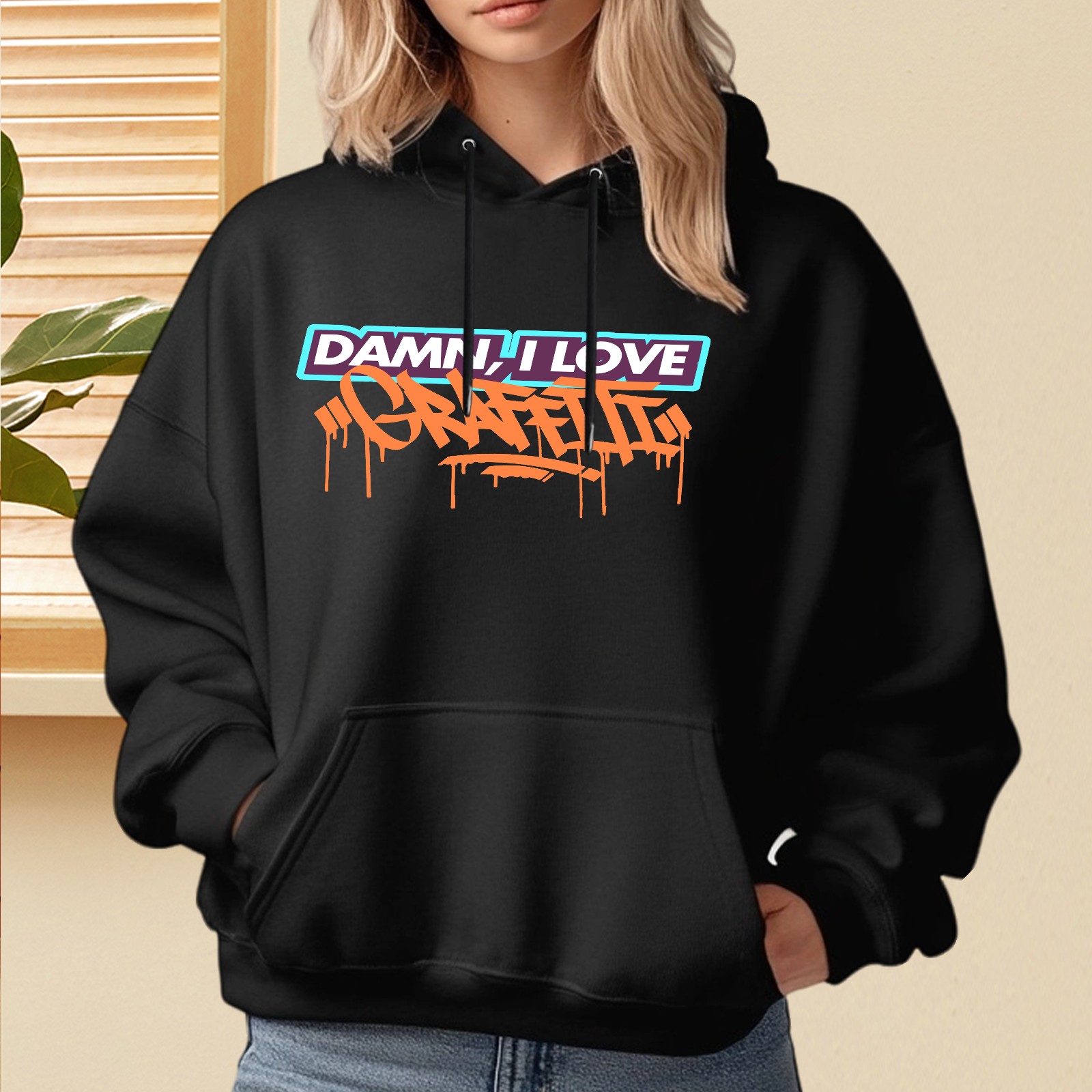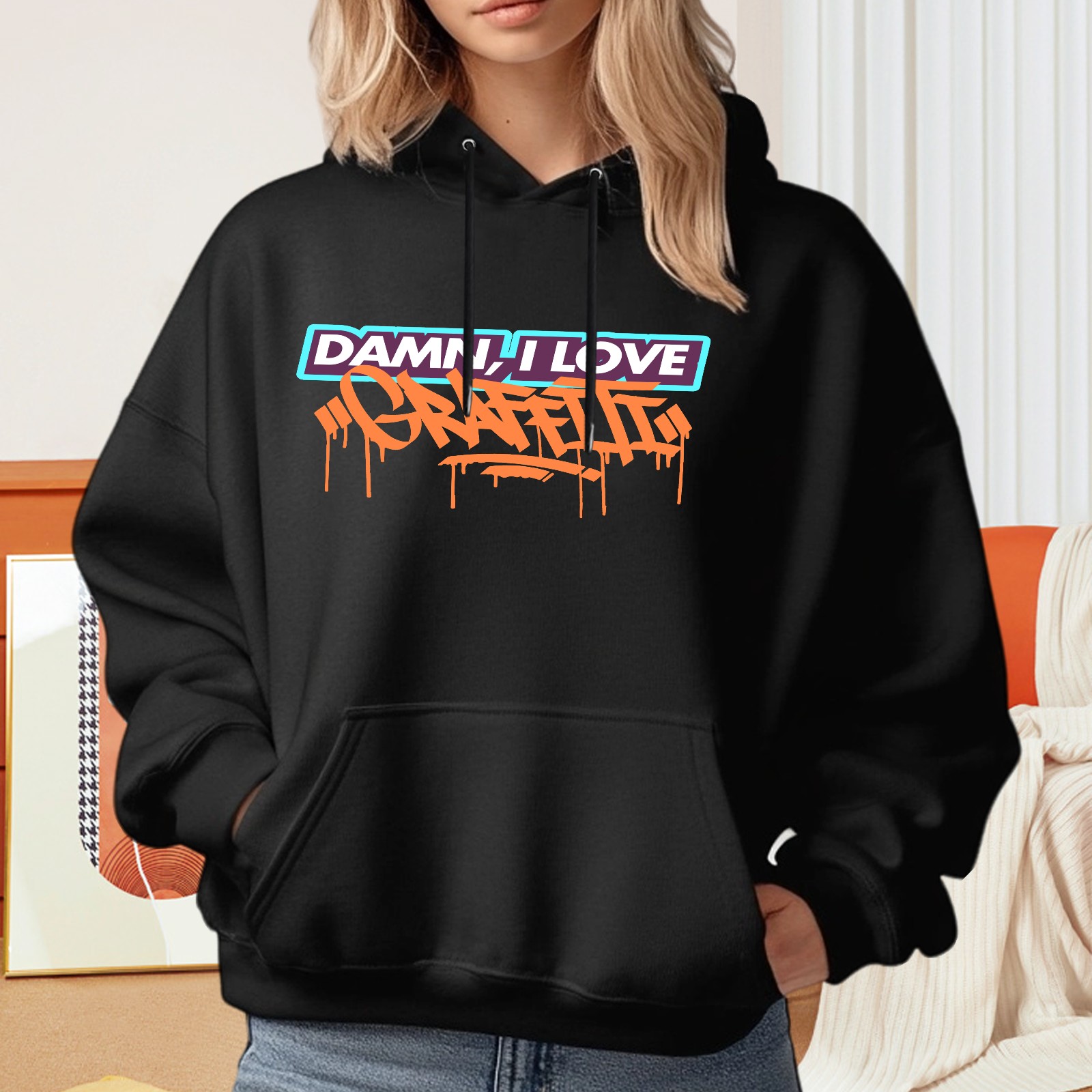 Ladies' Damn I Love Graeeiti Casual And Fashionable Hooded Sweatshirt, Loose And Comfortable, Suitable For Valentine's Day, Gifts For Various Holidays