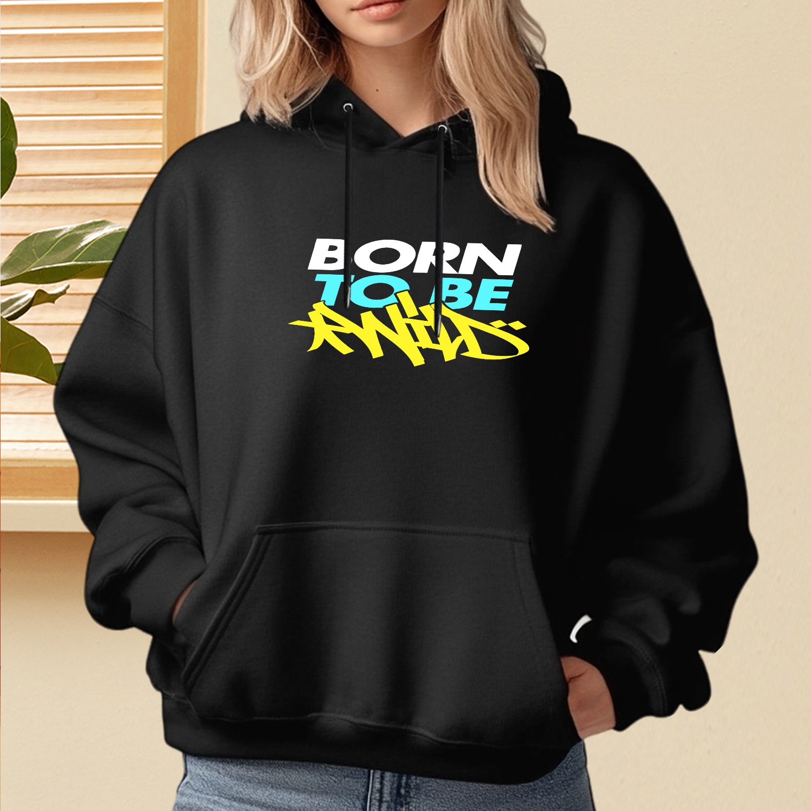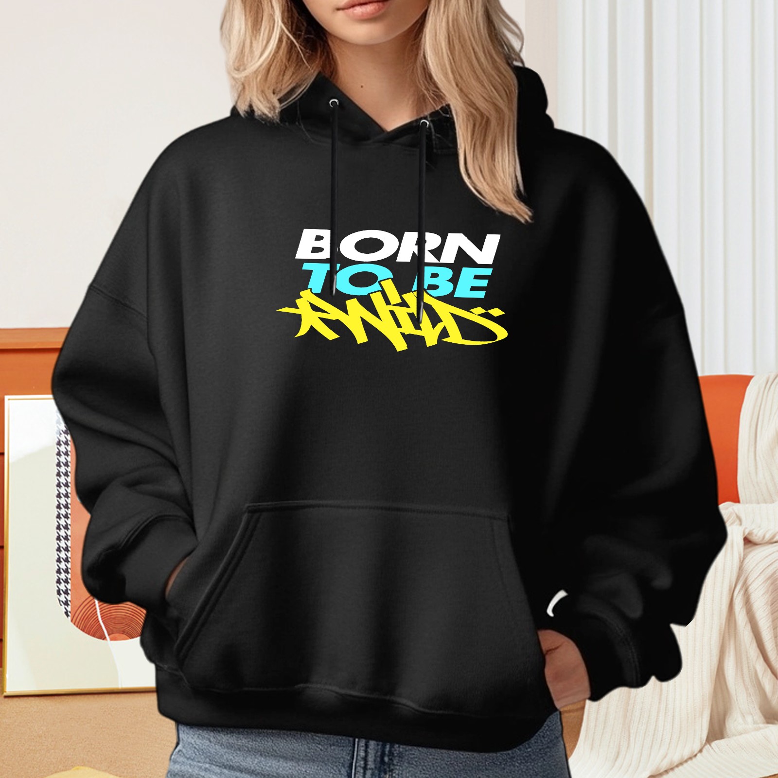 Ladies' Born To Be Wild Casual And Fashionable Hooded Sweatshirt, Loose And Comfortable, Suitable For Valentine's Day, Gifts For Various Holidays