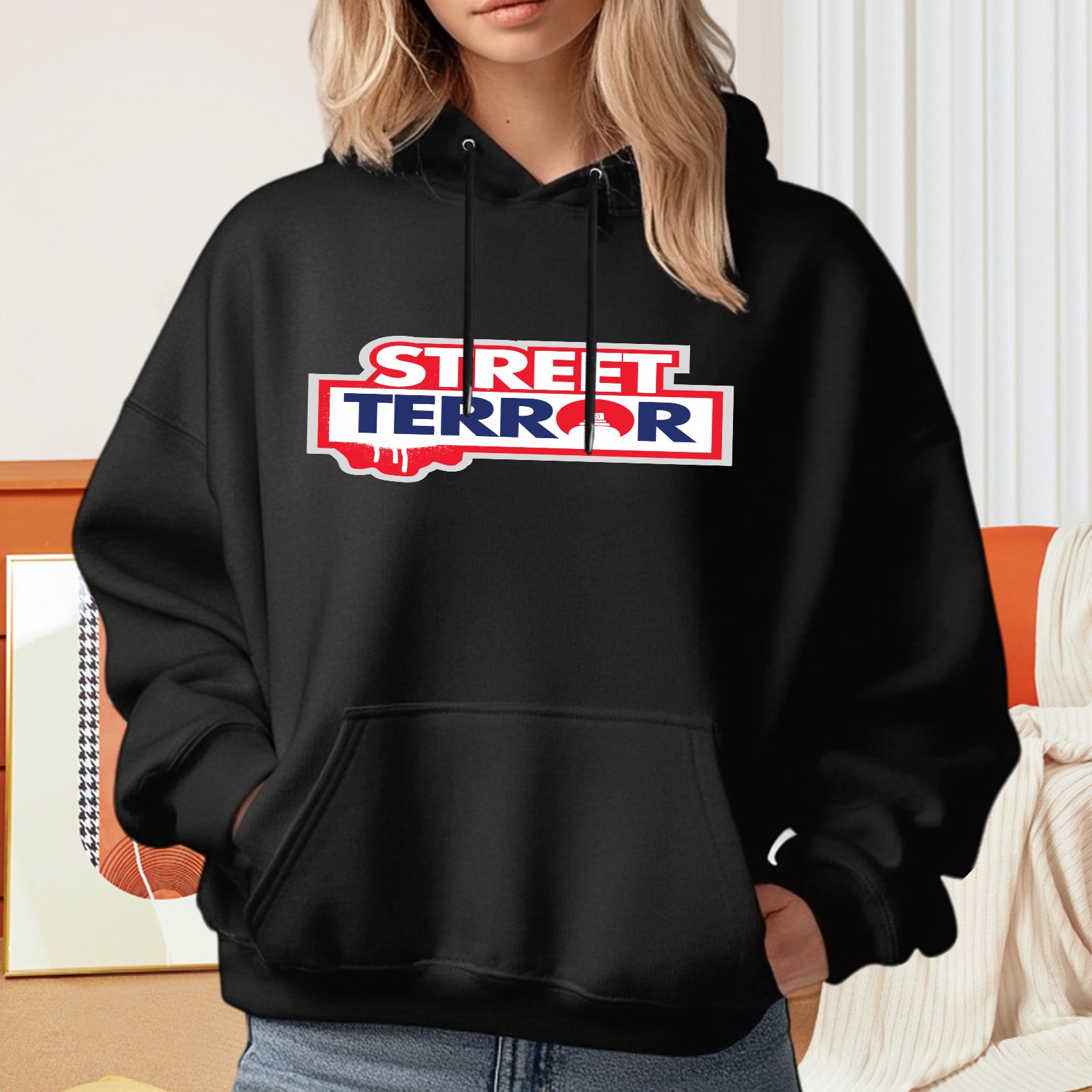 Ladies' Street Terror Casual And Fashionable Hooded Sweatshirt, Loose And Comfortable, Suitable For Valentine's Day, Gifts For Various Holidays