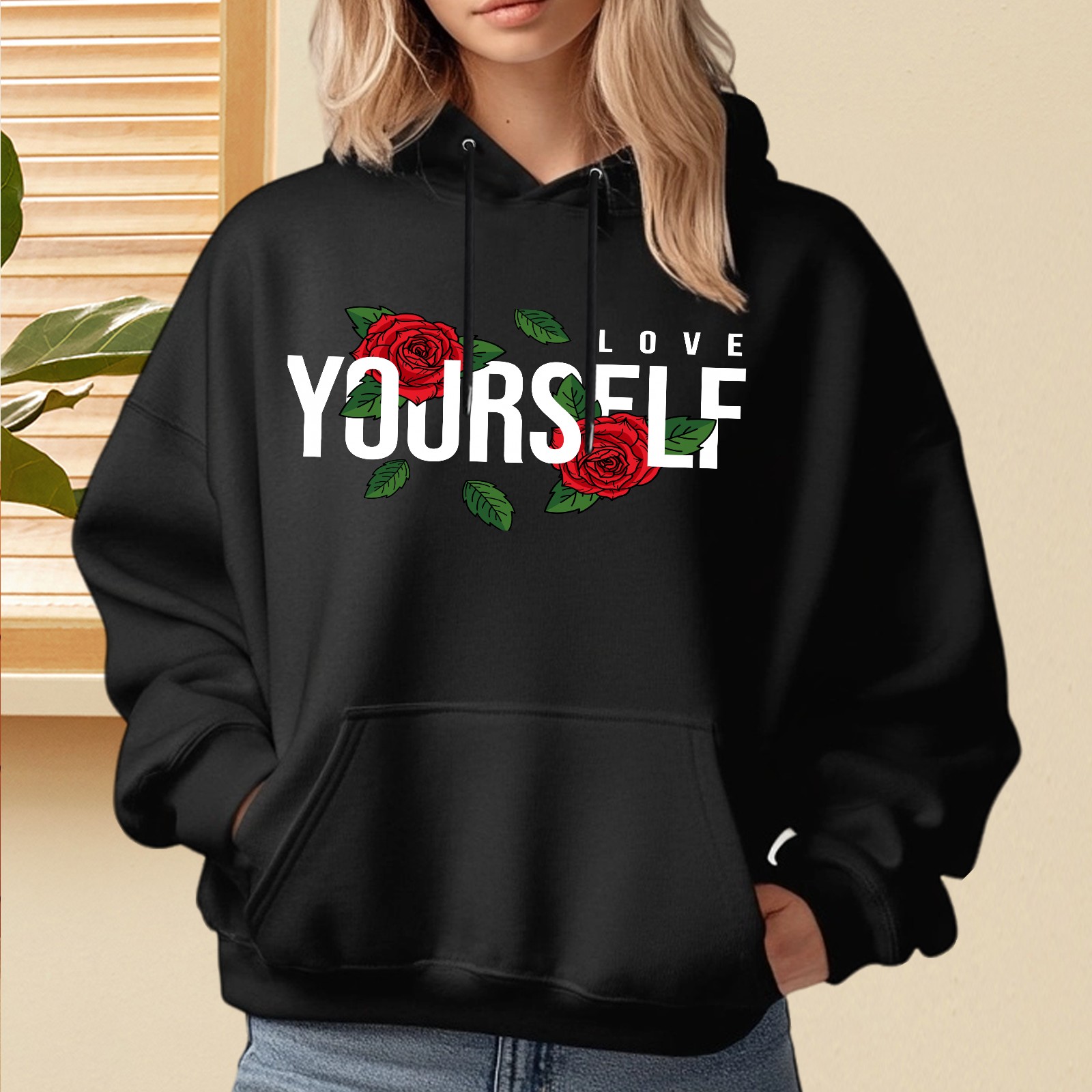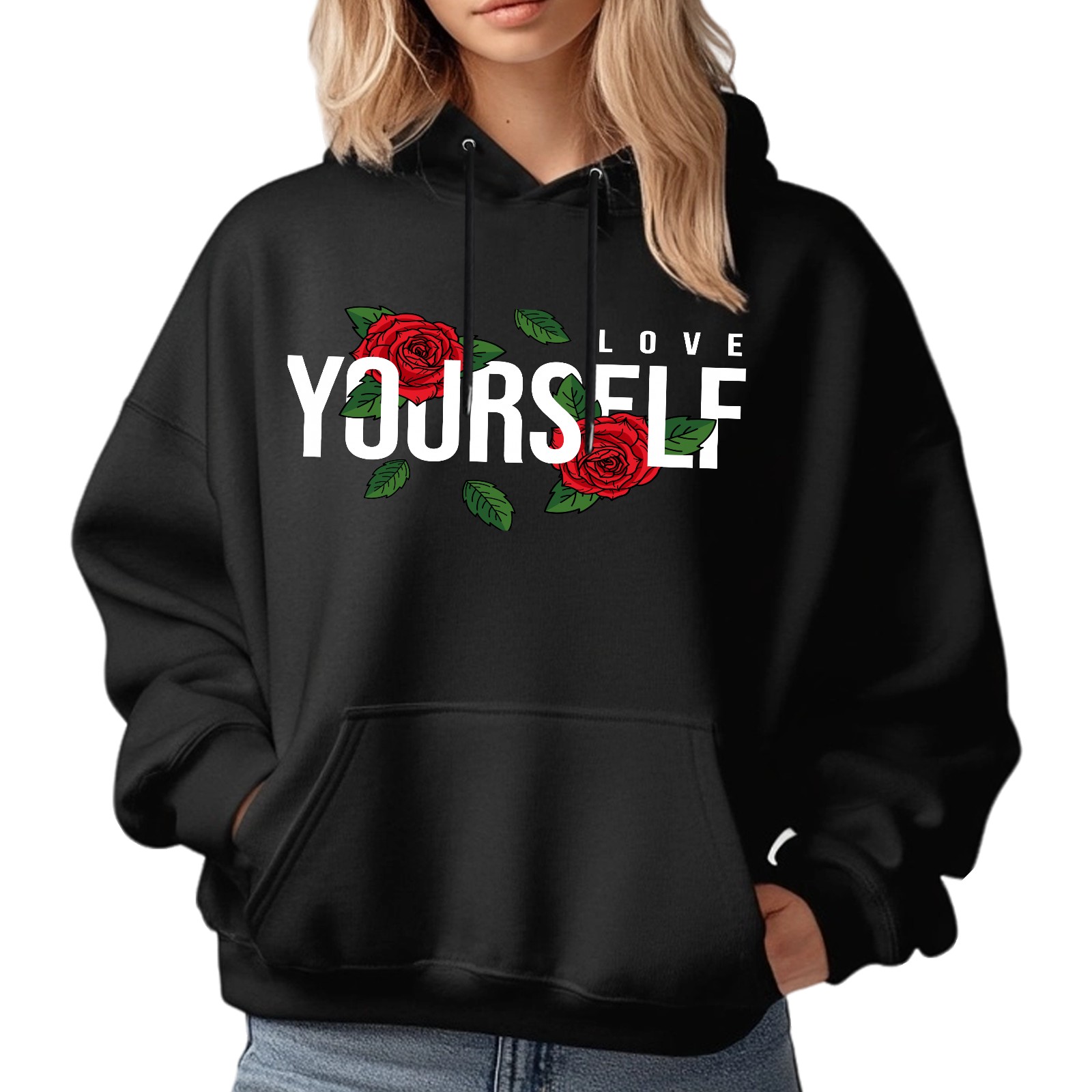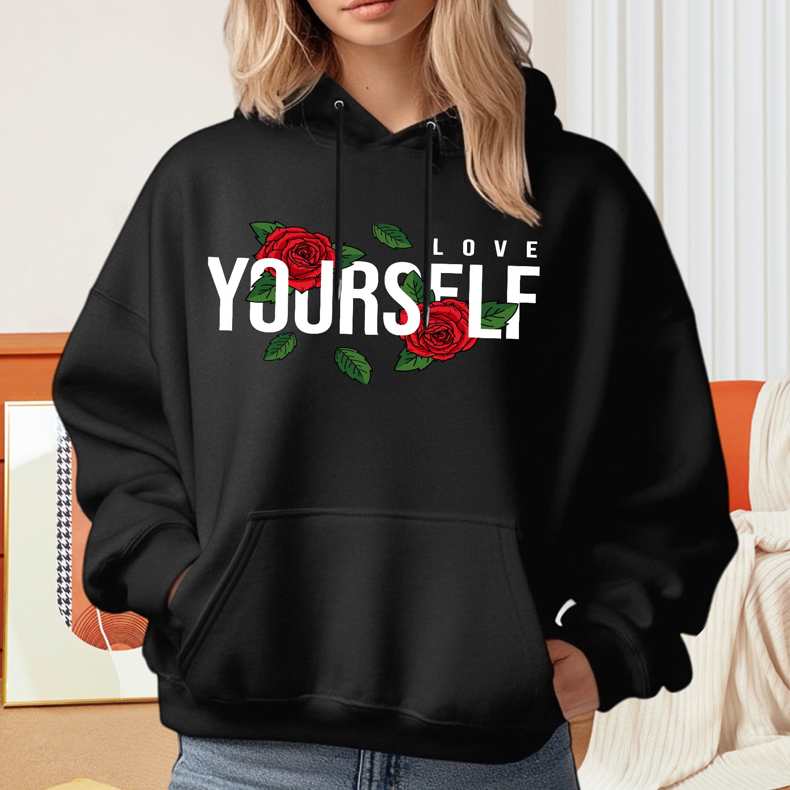Ladies' Love Yourself Casual And Fashionable Hooded Sweatshirt, Loose And Comfortable, Suitable For Valentine's Day, Gifts For Various Holidays