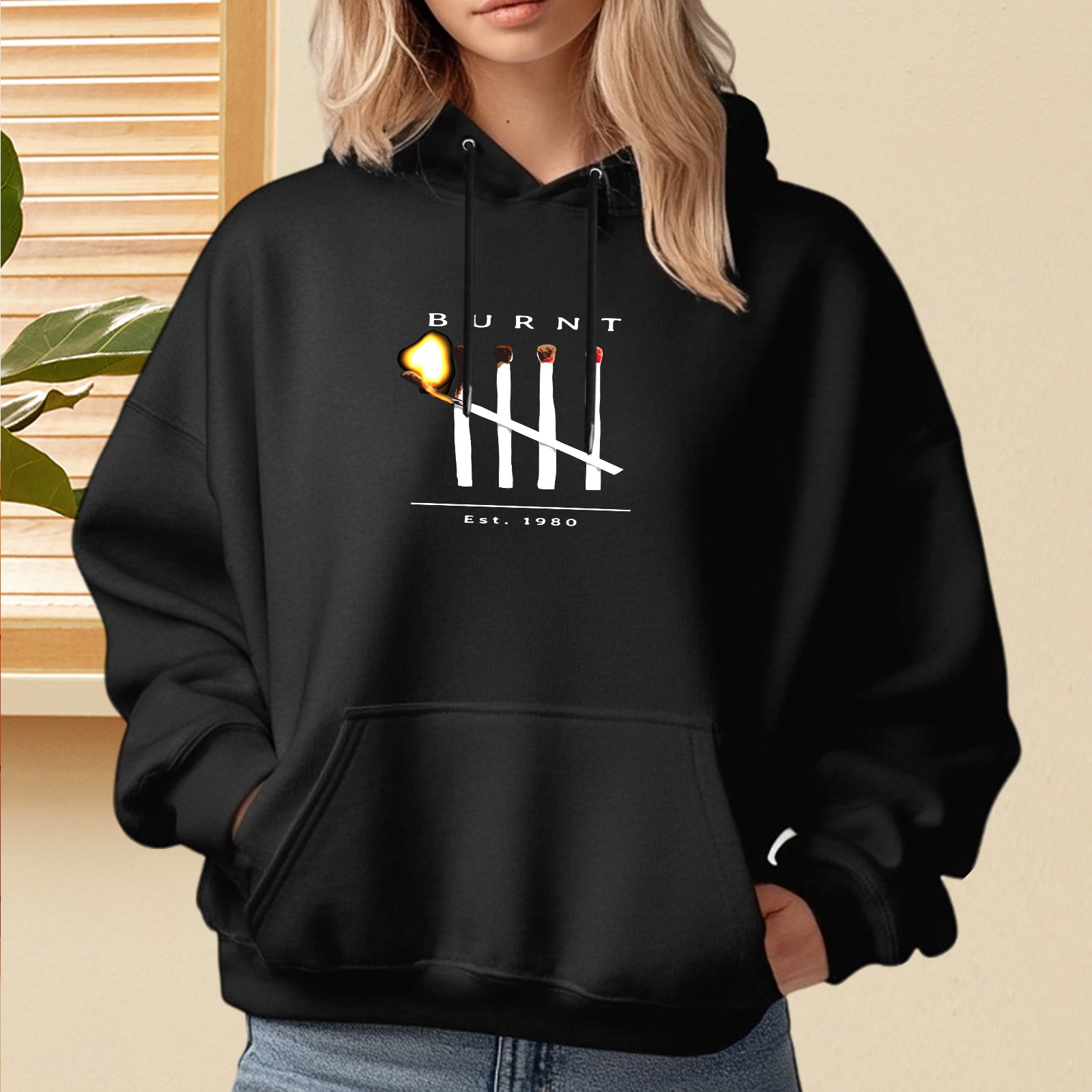 Ladies' Burnt Casual And Fashionable Hooded Sweatshirt, Loose And Comfortable, Suitable For Valentine's Day, Gifts For Various Holidays
