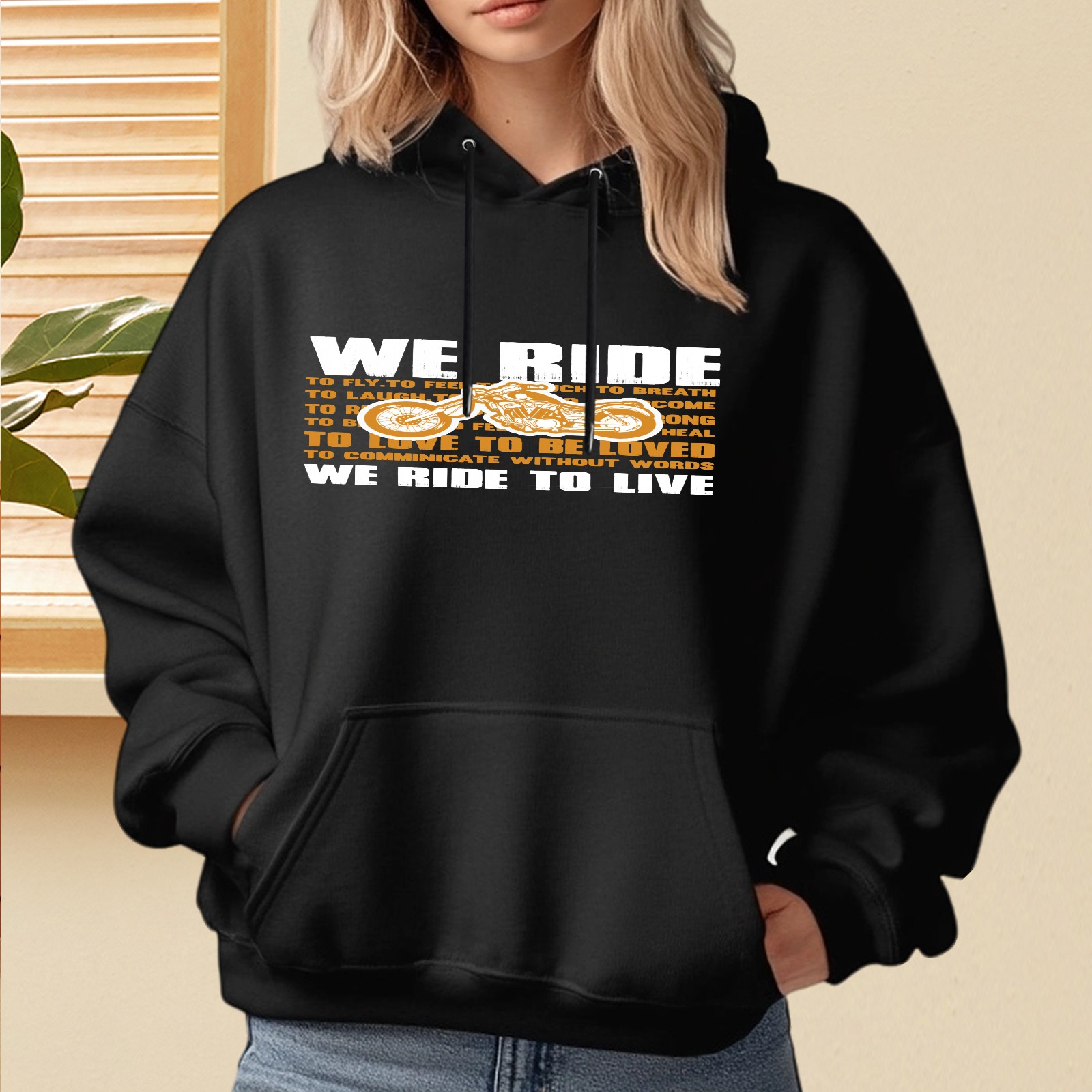 Ladies' We Ride To Live Casual And Fashionable Hooded Sweatshirt, Loose And Comfortable, Suitable For Valentine's Day, Gifts For Various Holidays