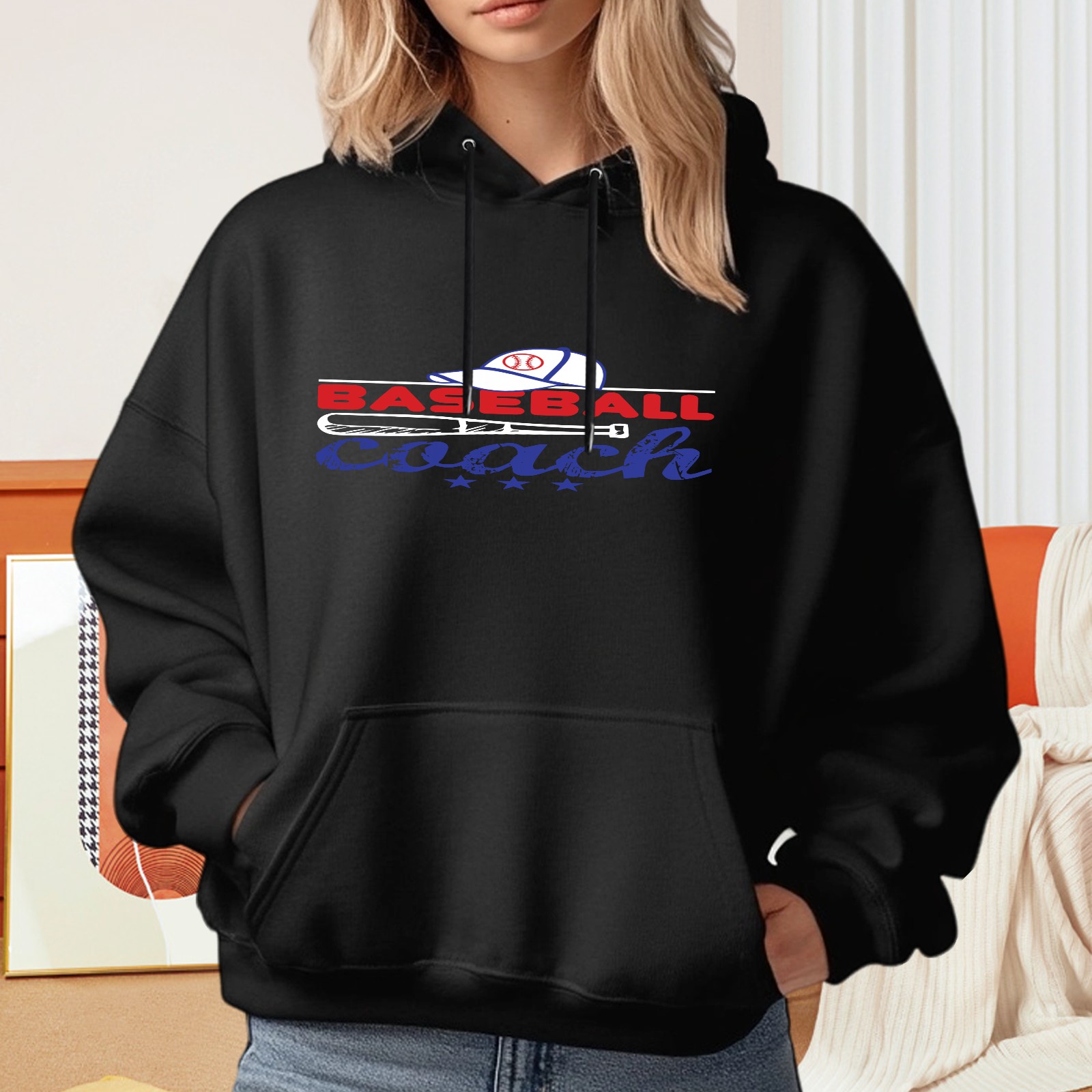 Ladies' Baseball Is Always Casual And Fashionable Hooded Sweatshirt, Loose And Comfortable, Suitable For Valentine's Day, Gifts For Various Holidays