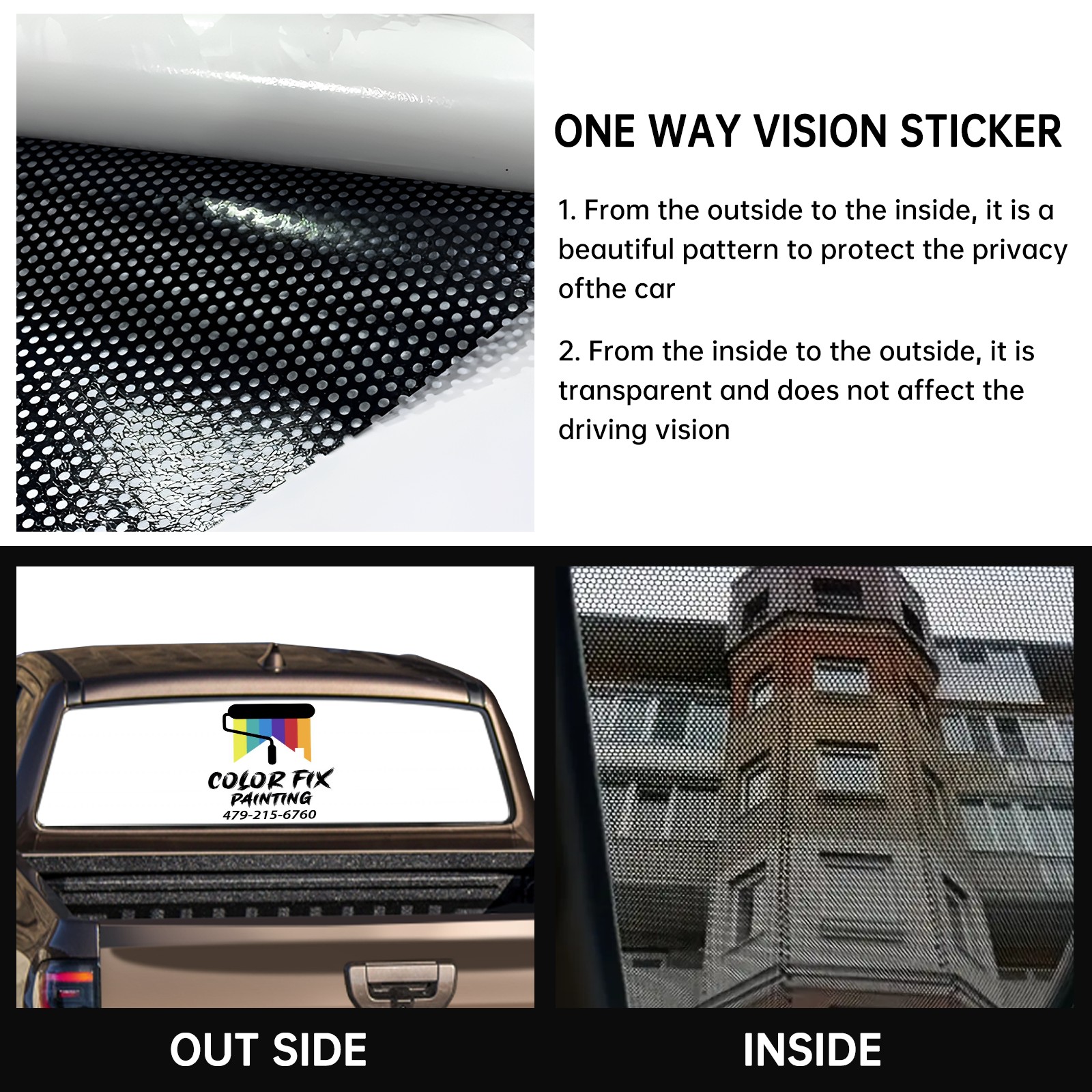 • <p><strong>Truck Rear Window Graphics Decals Pickup Trucks Back Window Film Stickers 66" x 22" Perforated Vinyl Wrap Stickers Decorations for Car Rear Window</strong></p><p><strong><br /></strong></p><p><strong>Features :</strong></p><p>- Size of the rear window decals for trucks is 66x22 Inches (168x56cm).</p><p>- High quality perforated vinyl window film, one way vision sticker.</p><p>- Perforated is see through from the inside but not from outside.</p><p>- Clear printing, waterproof and durable.</p><p>- The car back window graphics stickers fits most truck and makes your vehicle more beautiful.&nbsp;</p><p><br /></p><p><strong>【Installation Instructions】</strong></p><p><strong>1. CLEAN SURFACE -</strong> Clean the rear window thoroughly and make sure the surface clean.</p><p><strong>2. STICK THE DECALS -</strong> Tear off the paper on the back and stick the decal on the window.</p><p><strong>3. SCRAPE OFF AIR BUBBLES -</strong> Use a squeegee or other card to scrape off the excess air bubbles.</p><p><strong>4. TRIM THE EXCESS -</strong> Use a knife to cut off the excess stickers of the window, finally complete.</p><p><br /></p><p>1. Please measure the size before purchasing, back window graphics decal for truck can be cut to your desired size.</p><p>2.The graphics stickers for truck back window is a great gift for yourself also can as a birthday / halloween / christmas gift for your friends and family.</p>