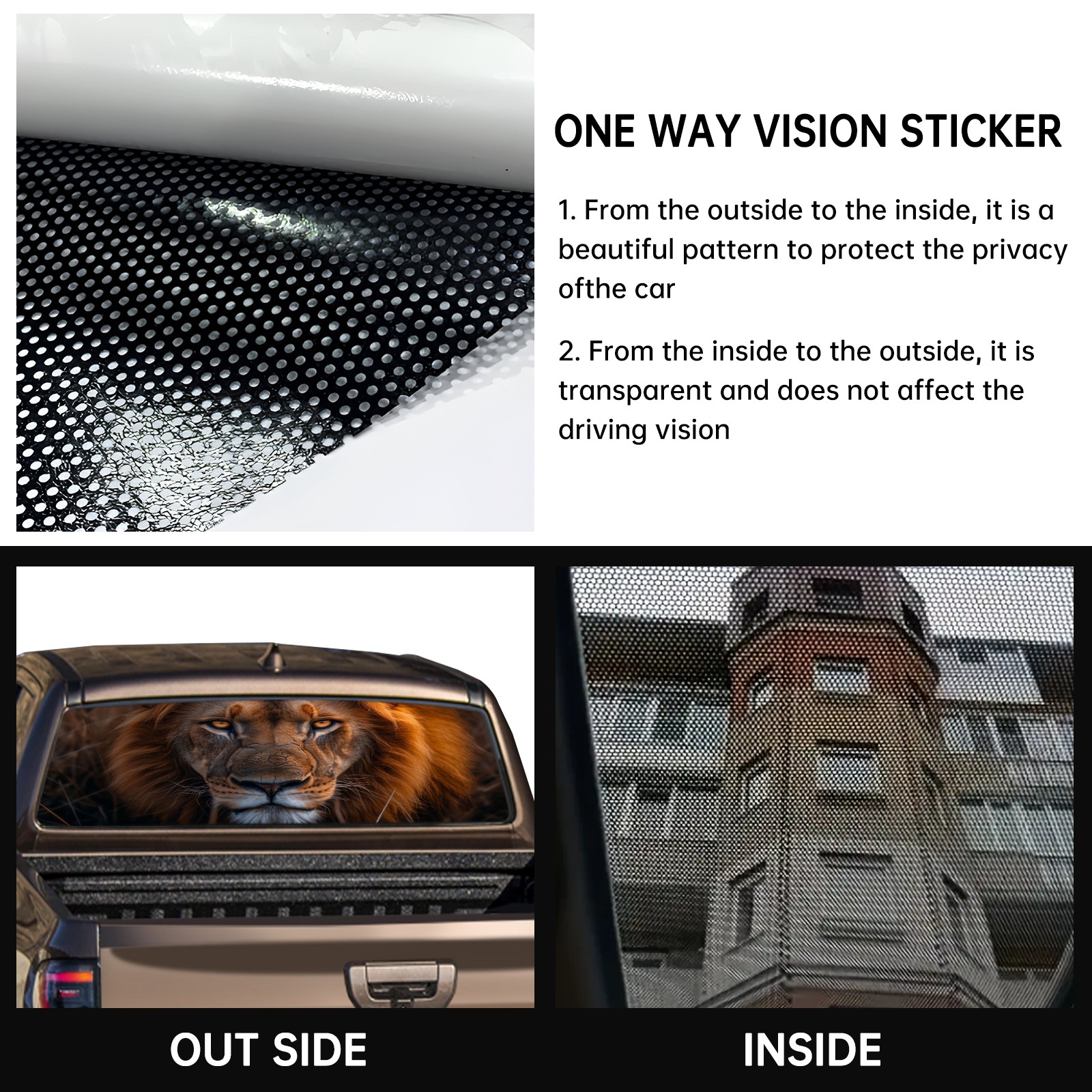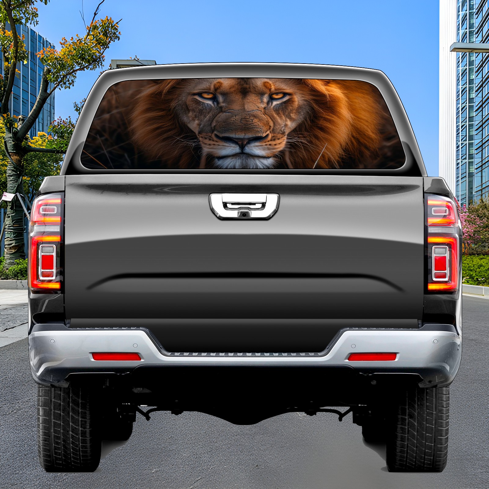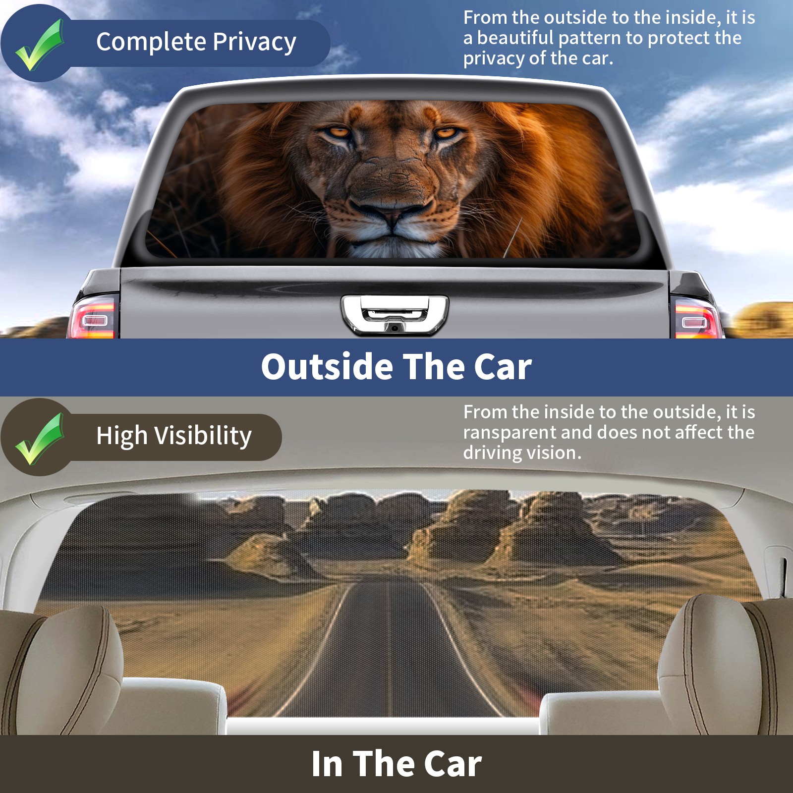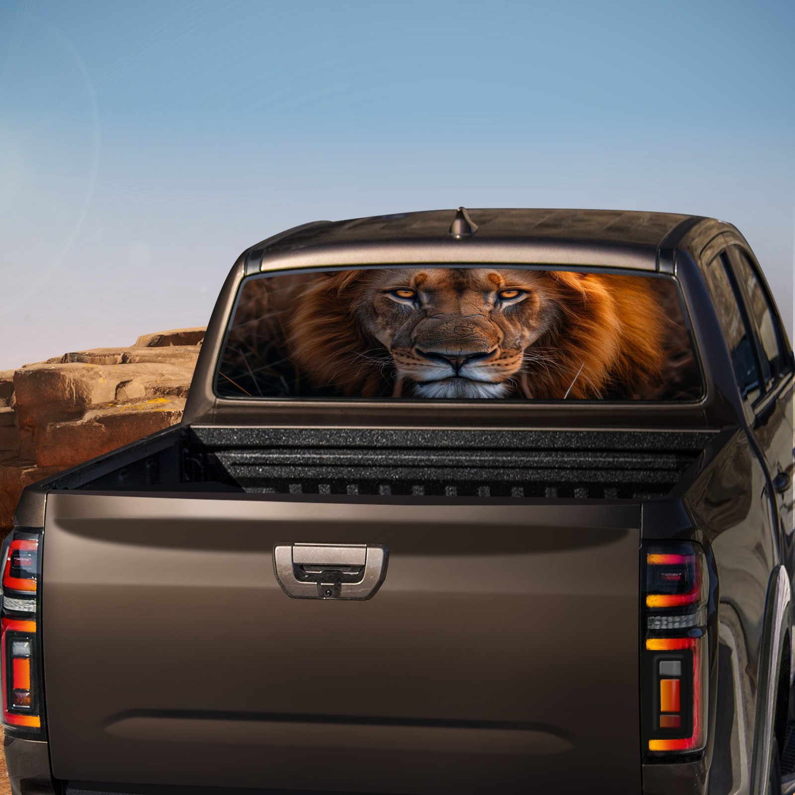SAVHOQIR Rear Window Graphic Decals for Trucks Lion 57x14 英寸 Pickup Car Back Window Perforated Vinyl Window Graphic Stickers Film