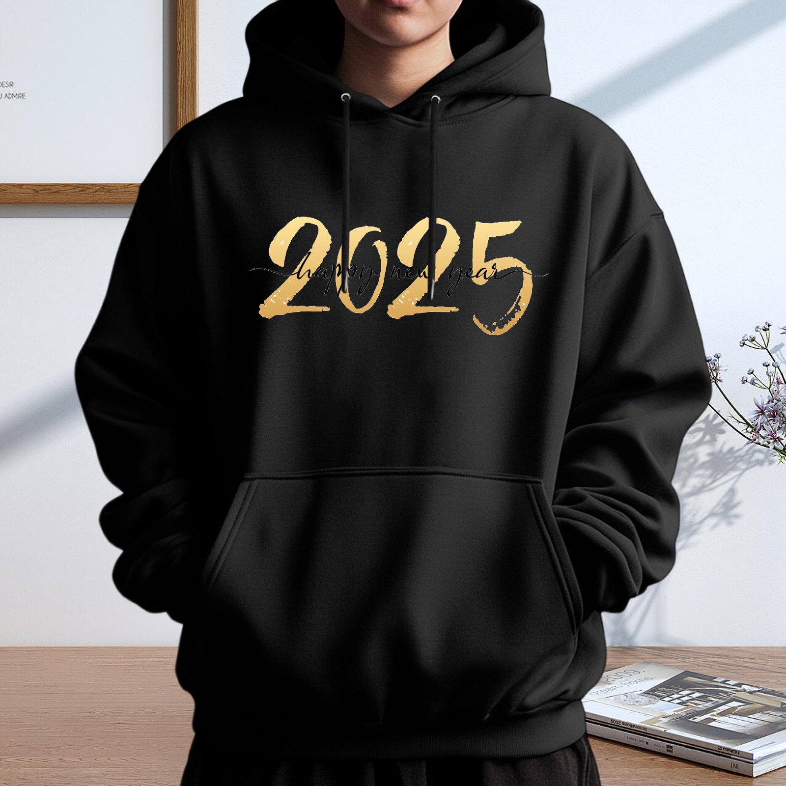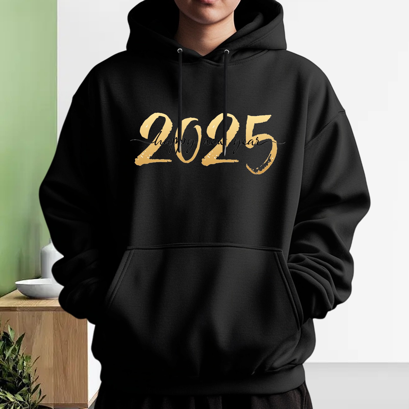 Men's Happy Ney Year 2025 Loose And Fashionable Casual Hooded Sweatshirt, Suitable For Daily Outdoor Wear, is an Excellent Gift For Valentine's Day And Other Holidays