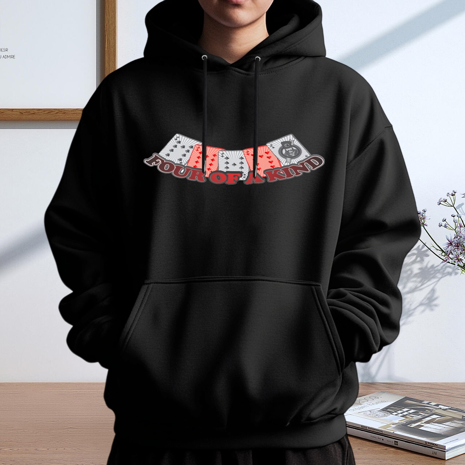 Men's Four Of A Kind Loose And Fashionable Casual Hooded Sweatshirt, Suitable For Daily Outdoor Wear, is an Excellent Gift For Valentine's Day And Other Holidays