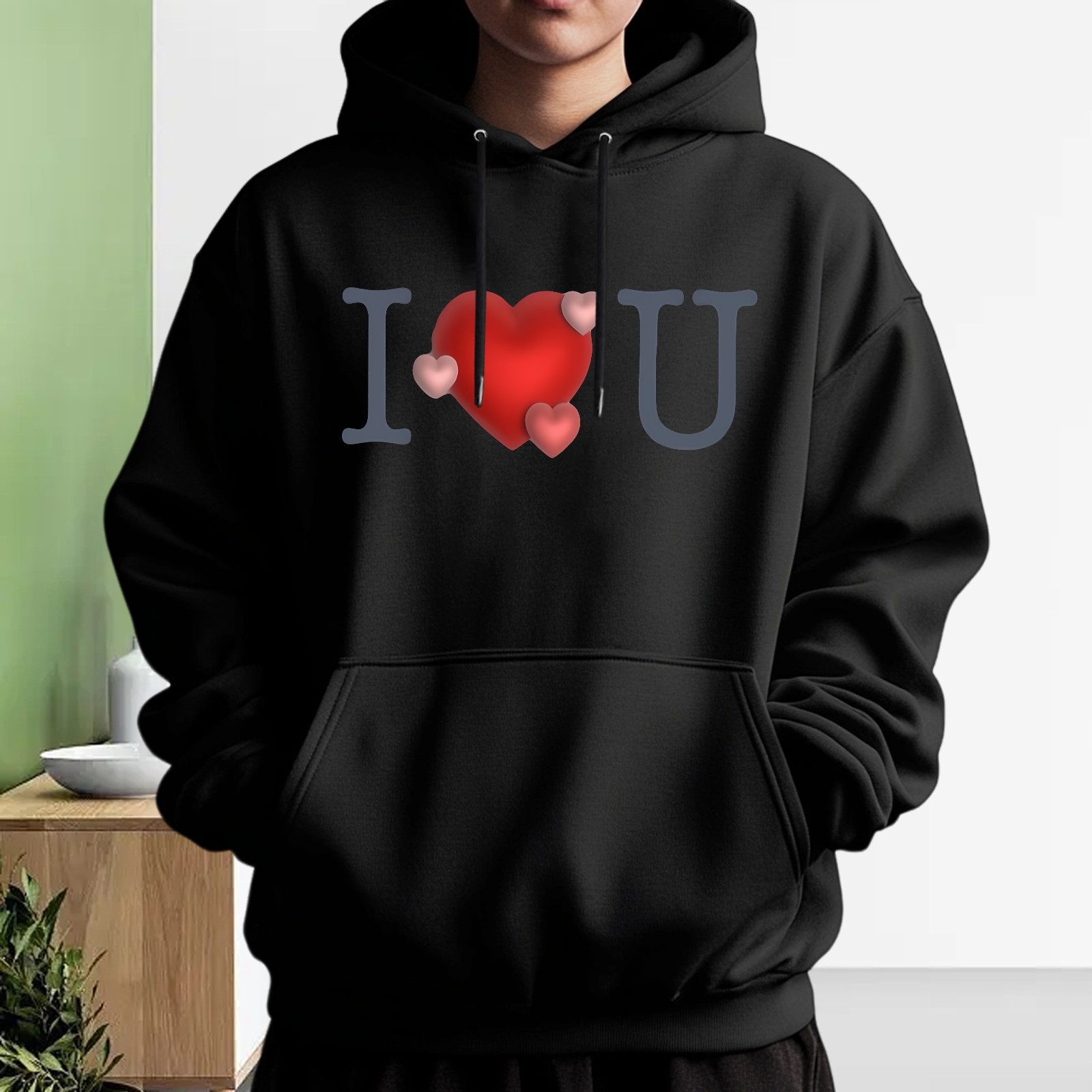 Men's Love Loose And Fashionable Casual Hooded Sweatshirt, Suitable For Daily Outdoor Wear, is an Excellent Gift For Valentine's Day And Other Holidays