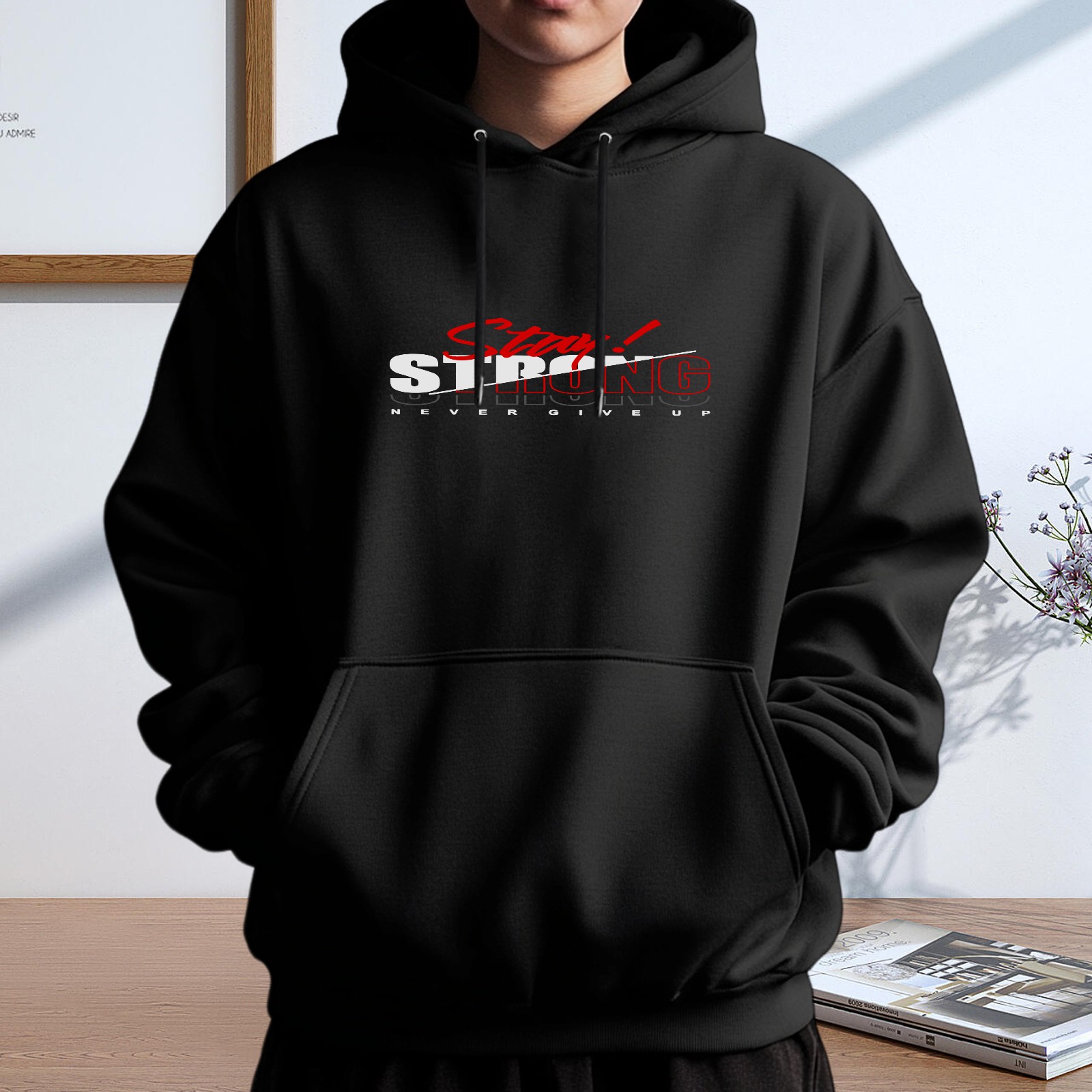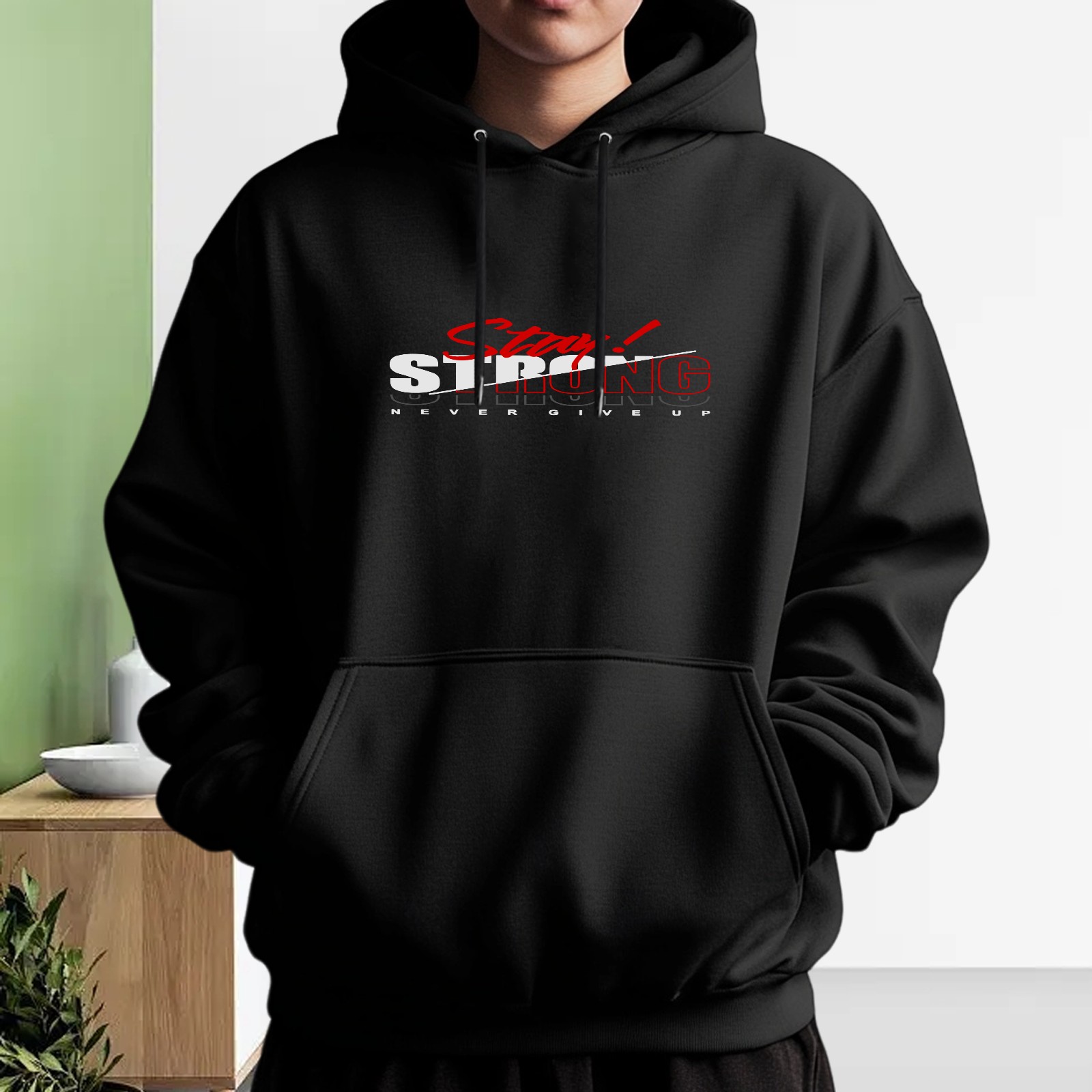 Men's Stay Strong Loose And Fashionable Casual Hooded Sweatshirt, Suitable For Daily Outdoor Wear, is an Excellent Gift For Valentine's Day And Other Holidays
