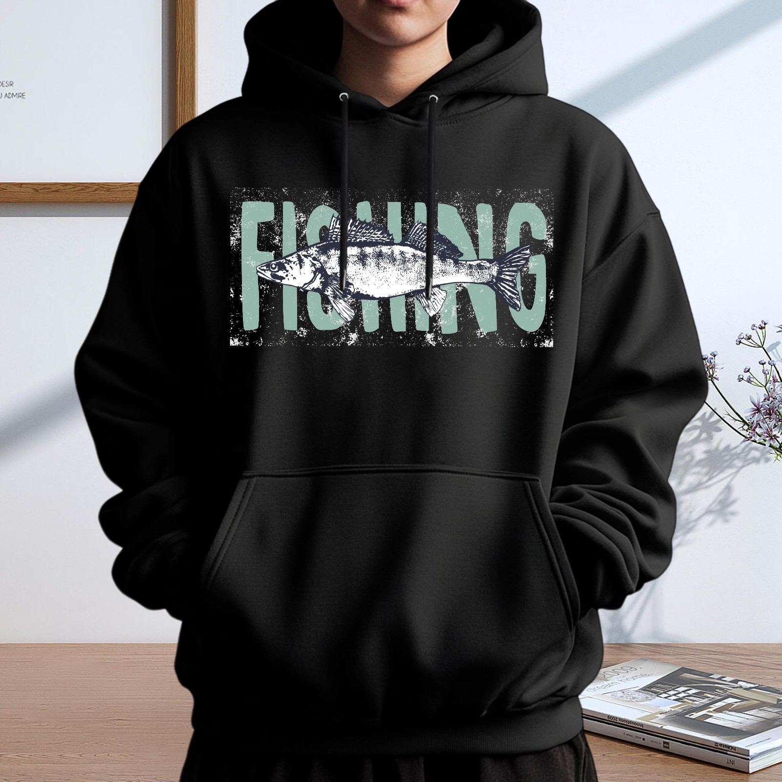 Men's Fish Loose And Fashionable Casual Hooded Sweatshirt, Suitable For Daily Outdoor Wear, is an Excellent Gift For Valentine's Day And Other Holidays