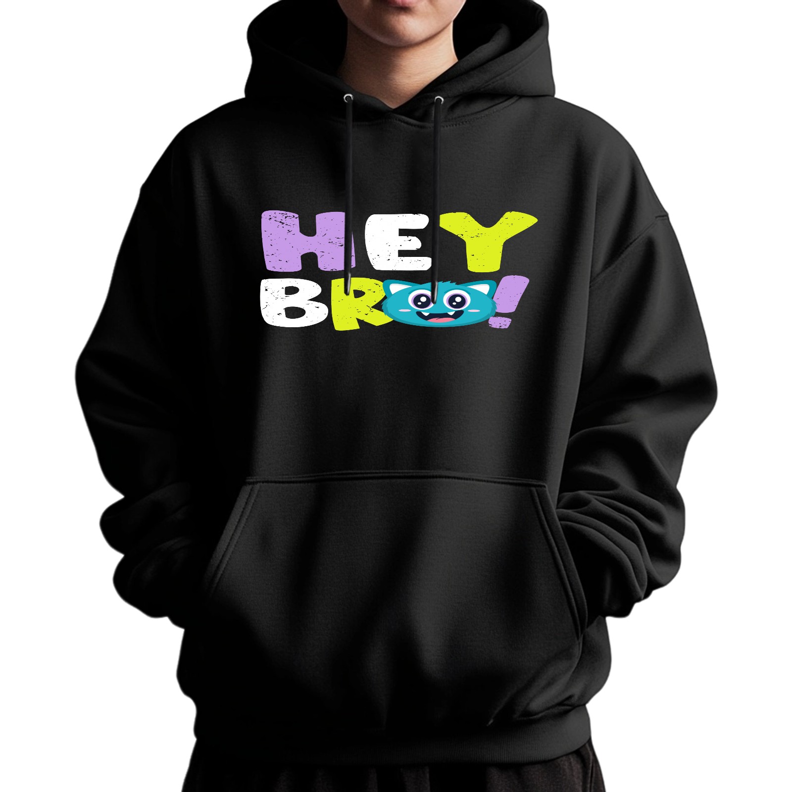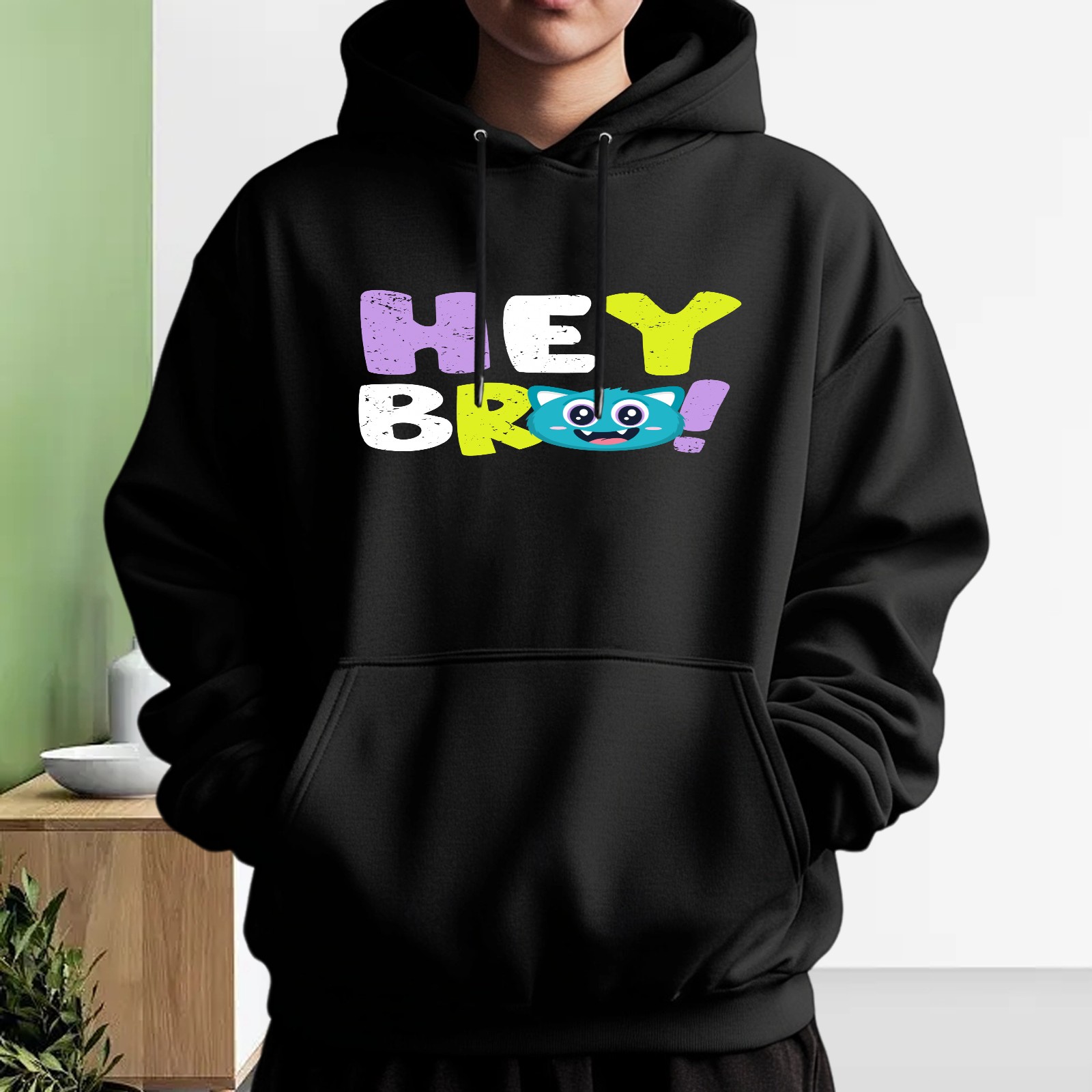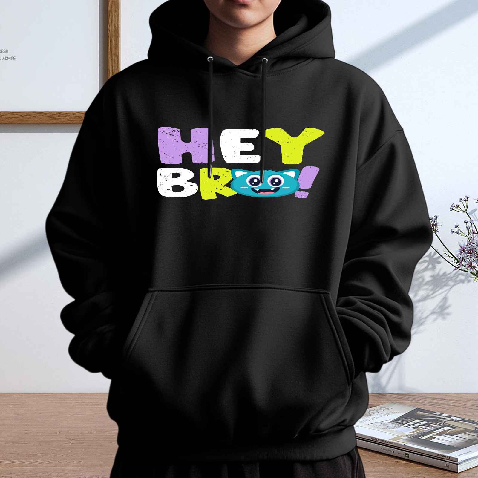 Men's Hey Bro Loose And Fashionable Casual Hooded Sweatshirt, Suitable For Daily Outdoor Wear, is an Excellent Gift For Valentine's Day And Other Holidays