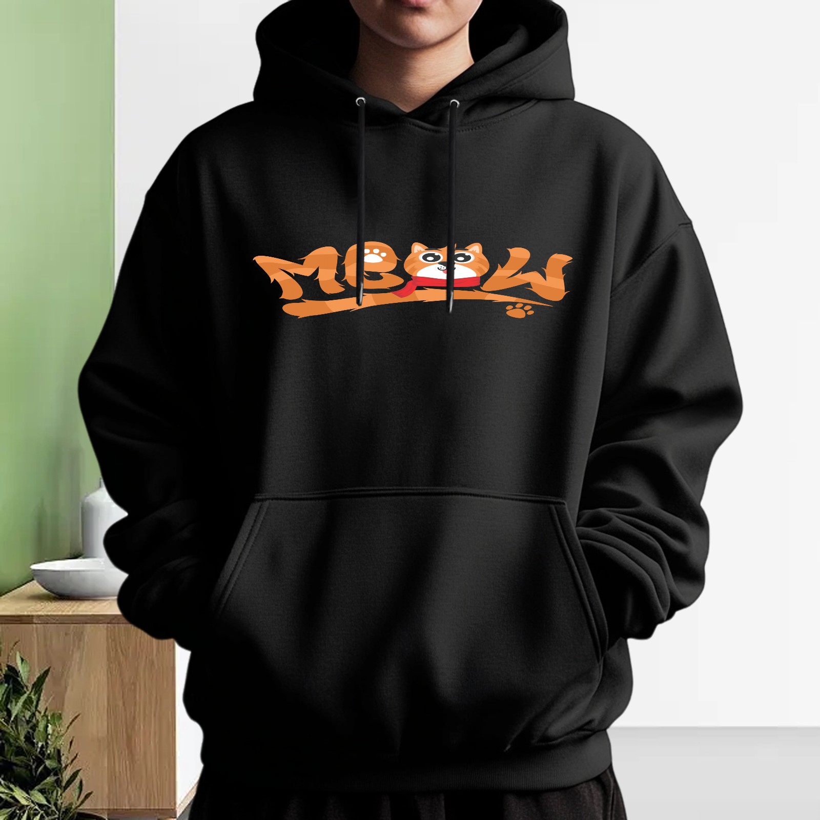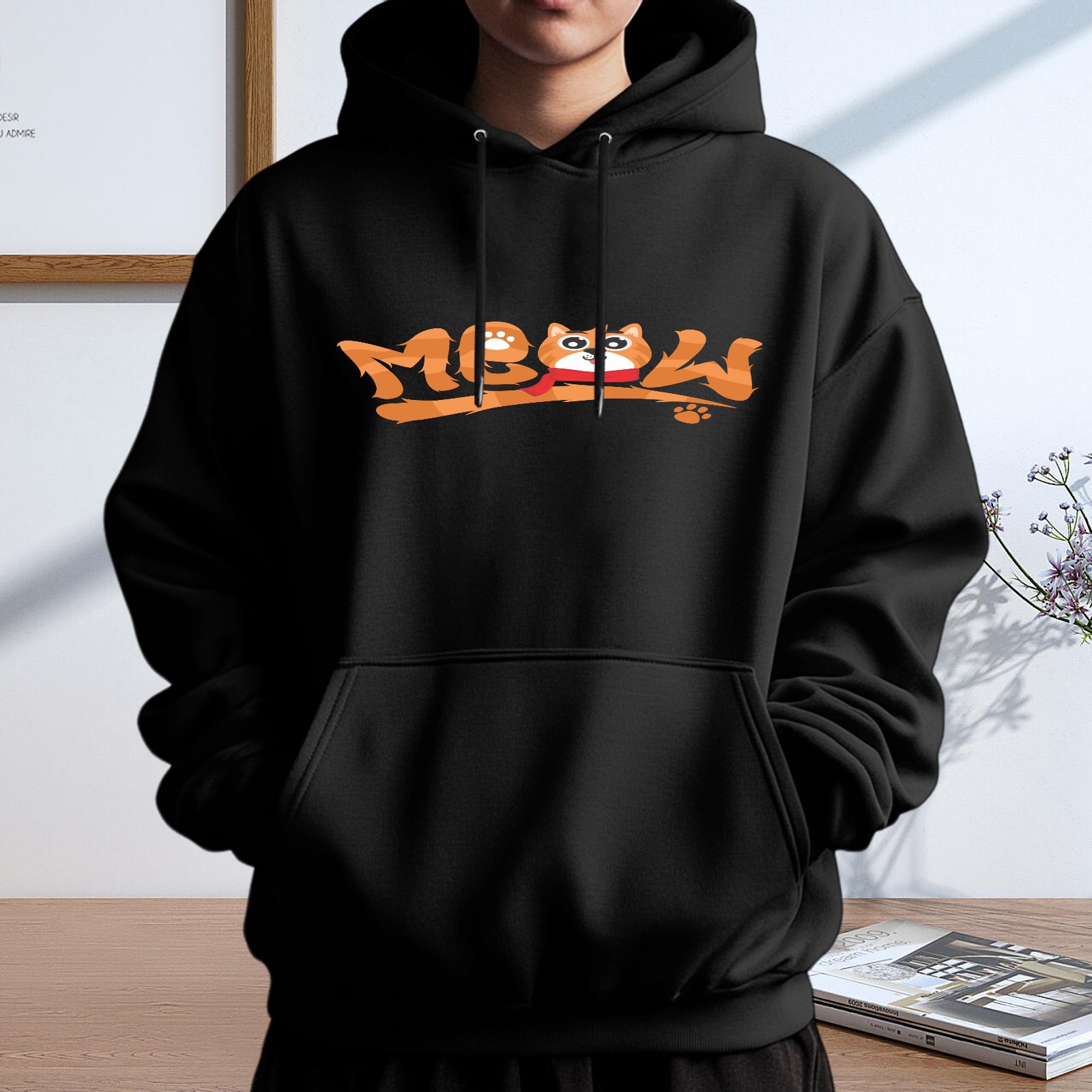 Men's Meow Loose And Fashionable Casual Hooded Sweatshirt, Suitable For Daily Outdoor Wear, is an Excellent Gift For Valentine's Day And Other Holidays