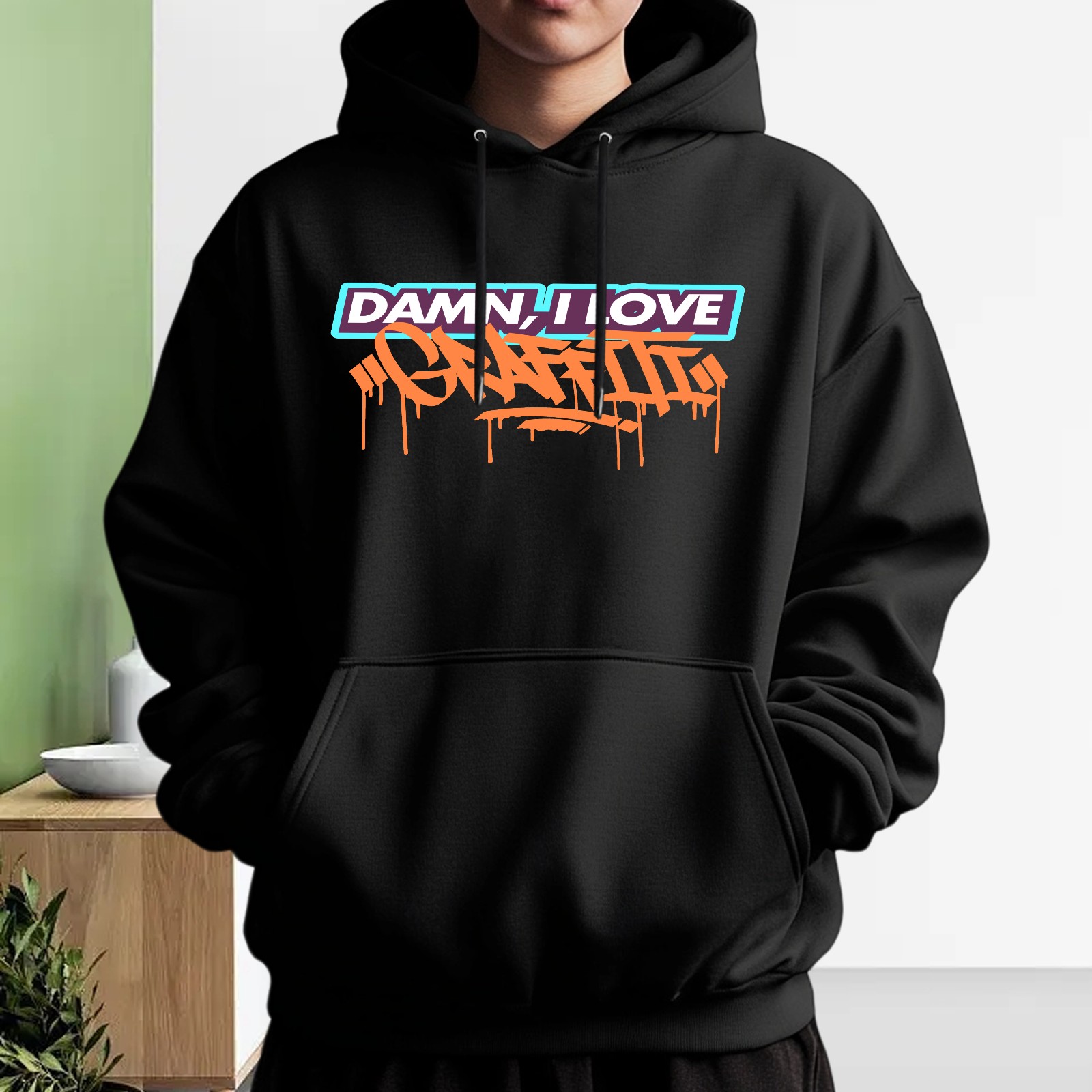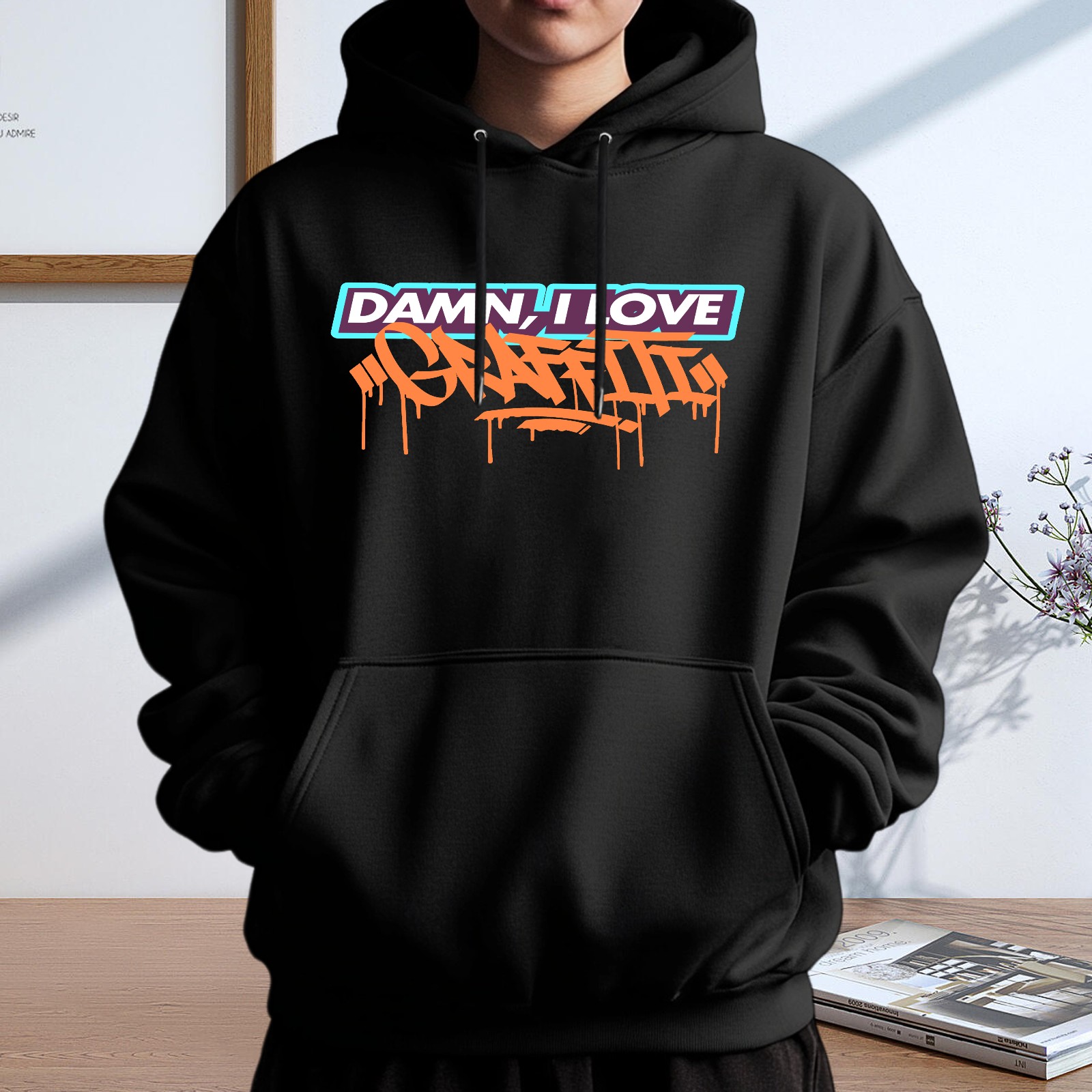 Men's Damn I Love Graeeiti Loose And Fashionable Casual Hooded Sweatshirt, Suitable For Daily Outdoor Wear, is an Excellent Gift For Valentine's Day And Other Holidays