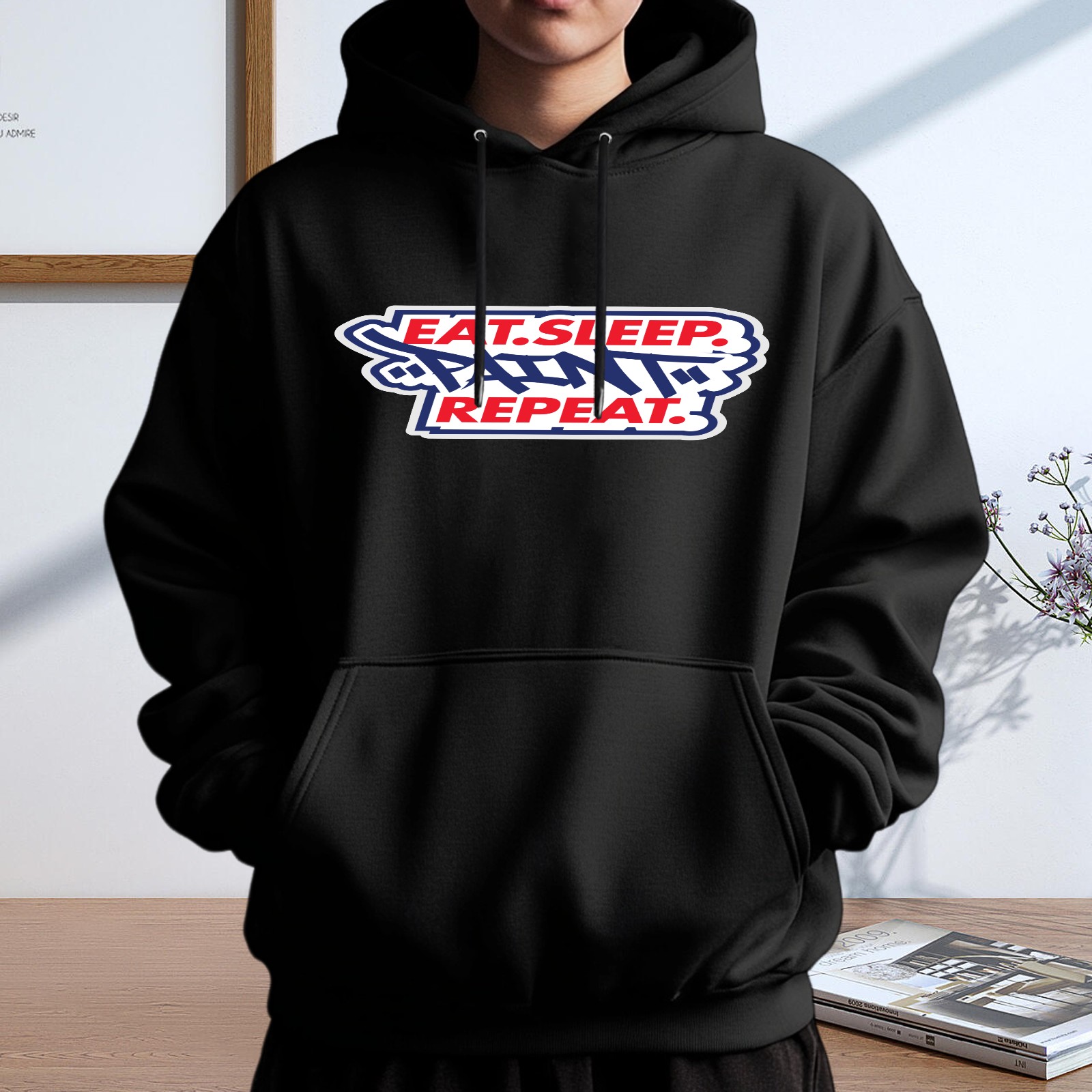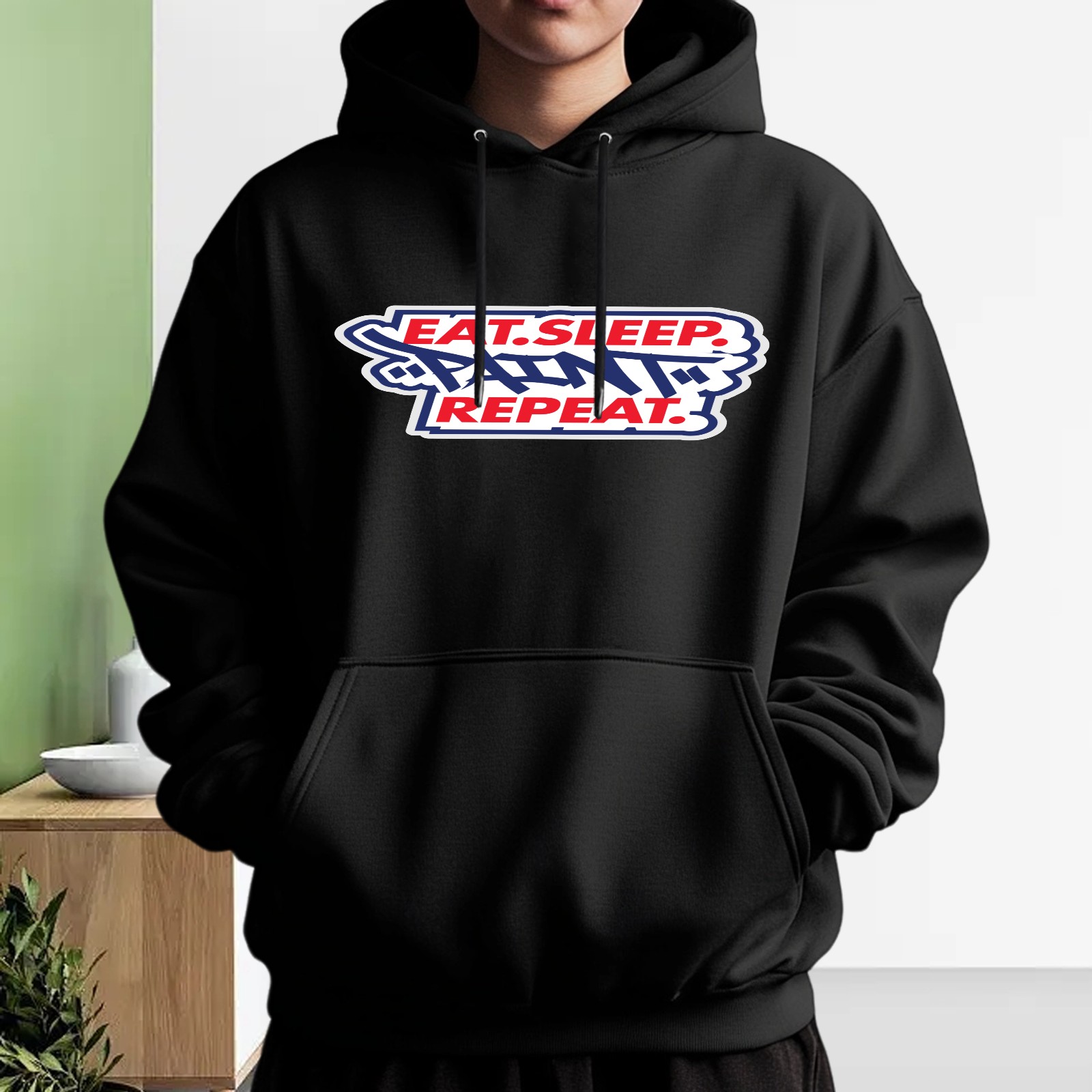 Men's Eat Sleep Repeat Loose And Fashionable Casual Hooded Sweatshirt, Suitable For Daily Outdoor Wear, is an Excellent Gift For Valentine's Day And Other Holidays