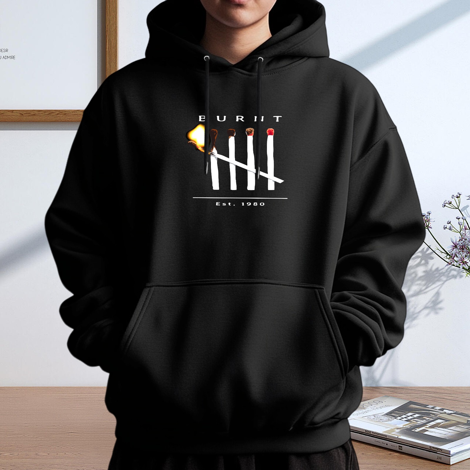 Men's Burnt Loose And Fashionable Casual Hooded Sweatshirt, Suitable For Daily Outdoor Wear, is an Excellent Gift For Valentine's Day And Other Holidays