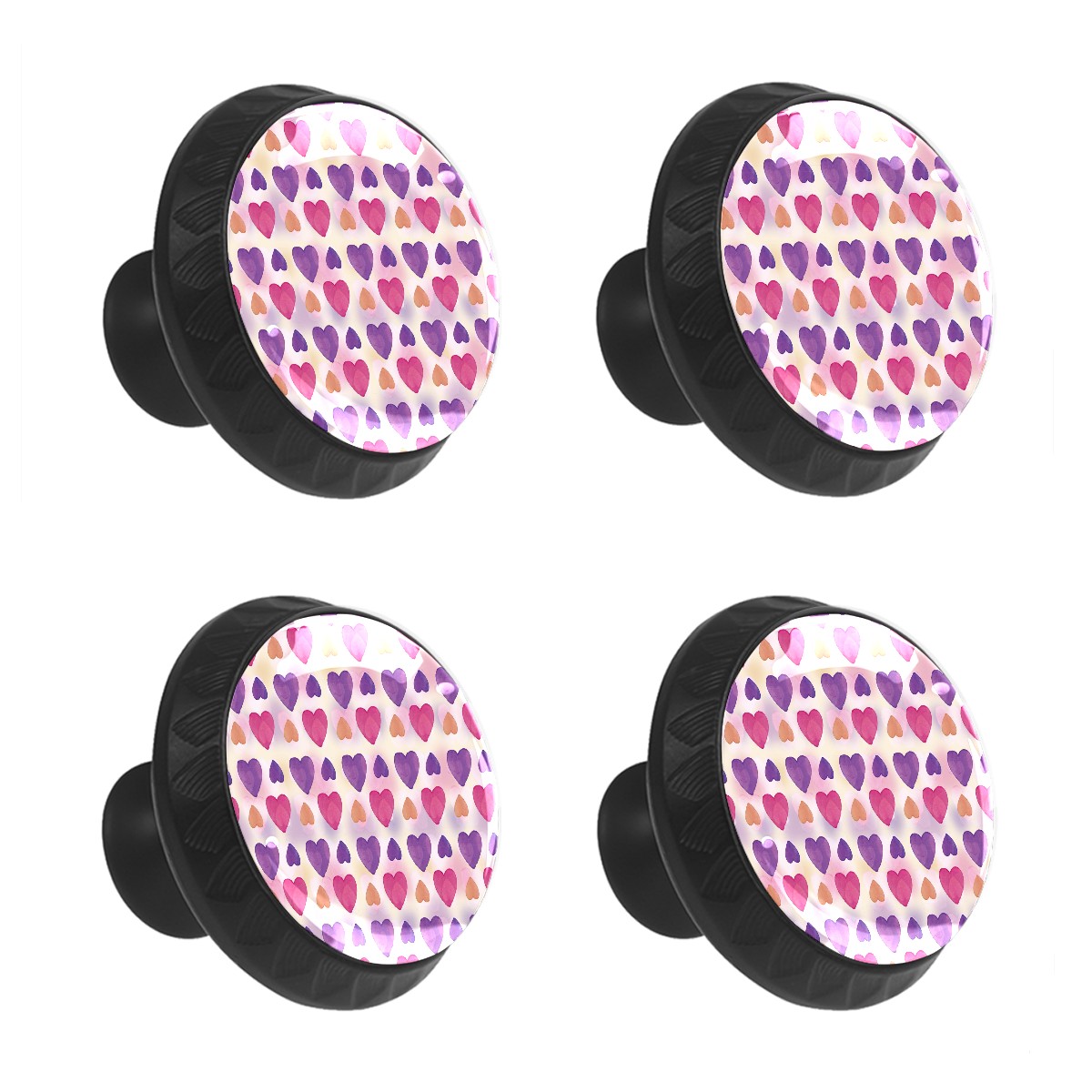 4 Pack Drawer Pulls Pink Purple Orange Love Heart Pattern Crystal Glass Round Knobs Pulls Handles for Cabinets Dressers Kitchen Bathroom - Cupboards Wardrobes Hardware Furniture Knobs