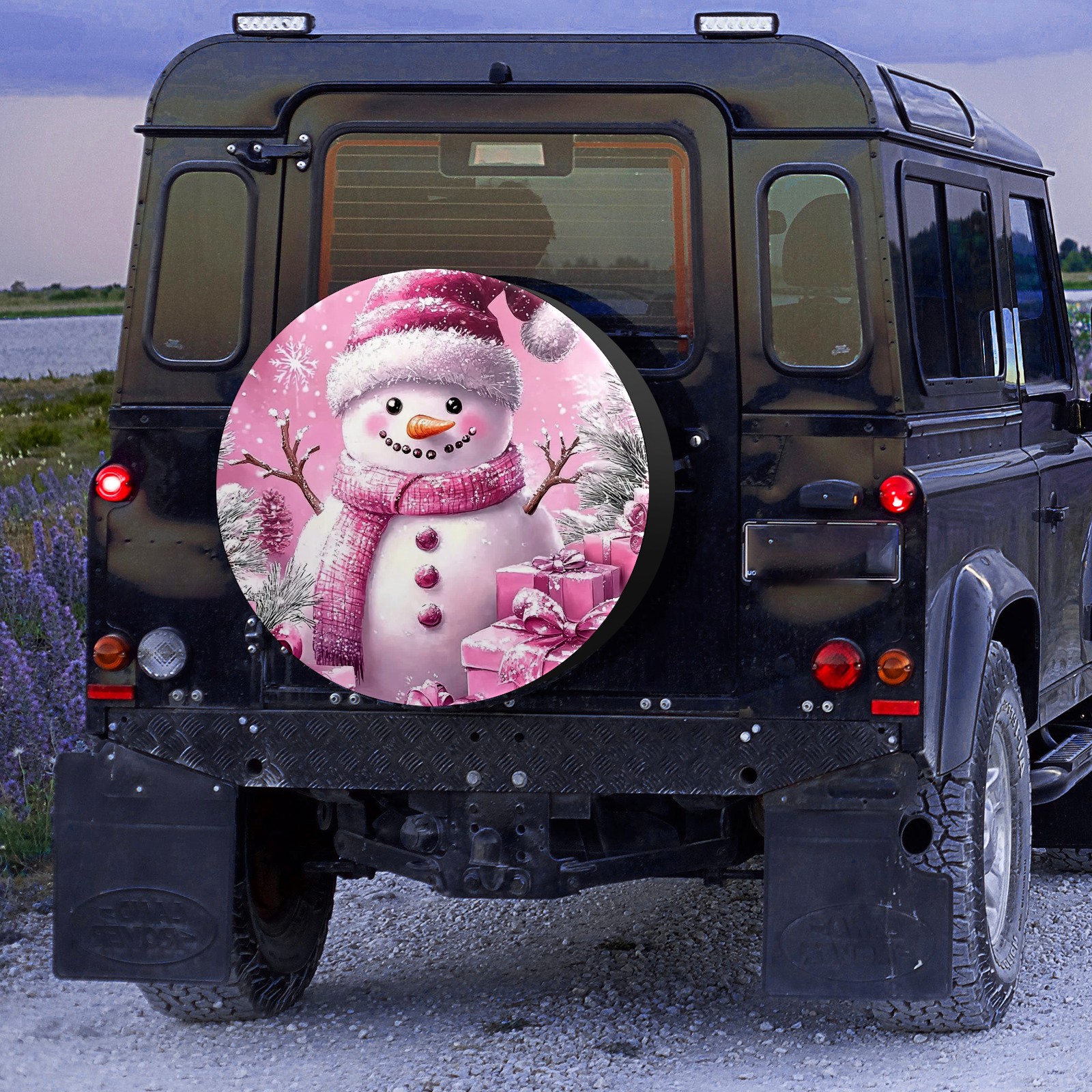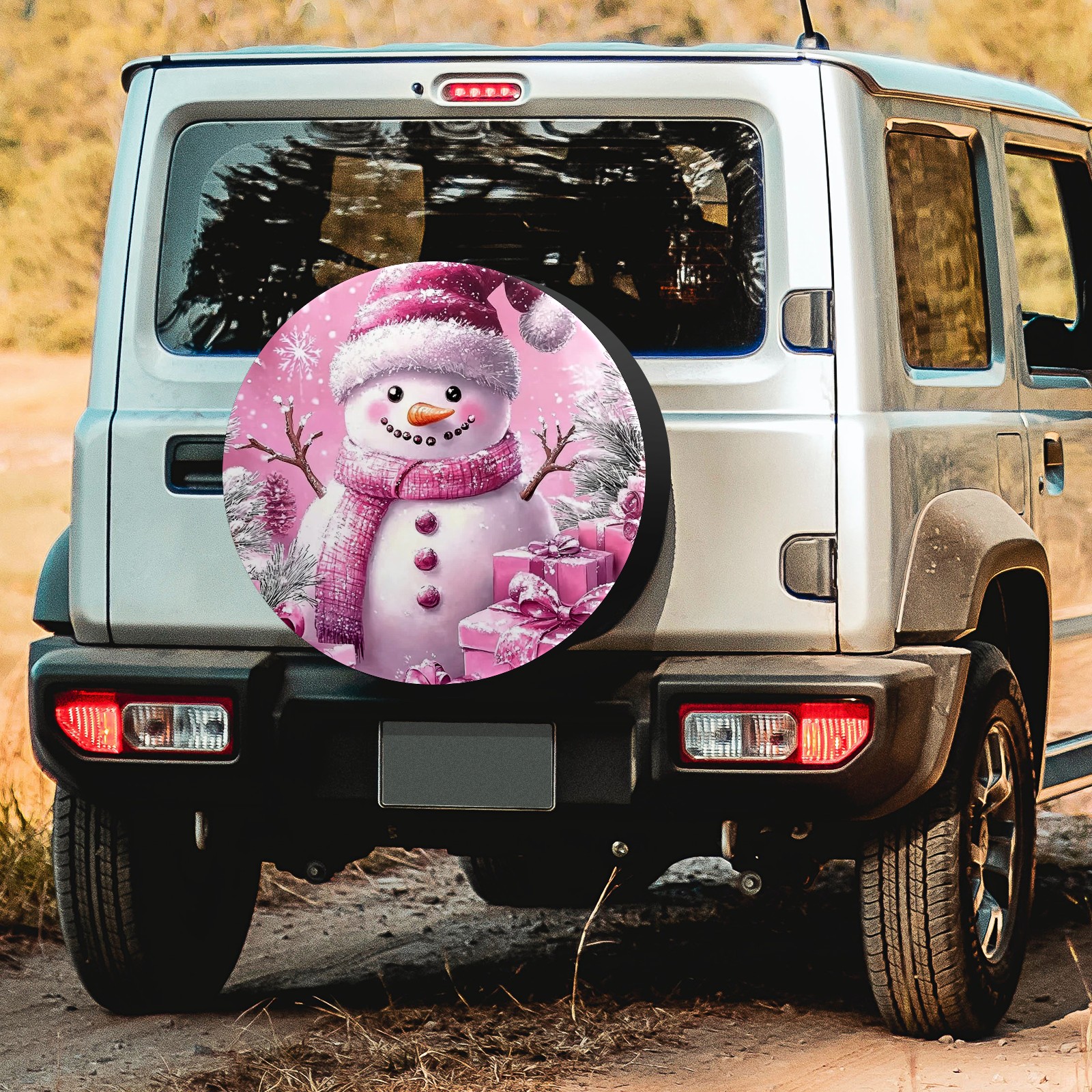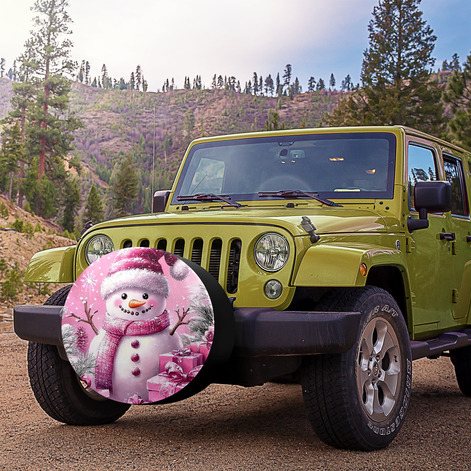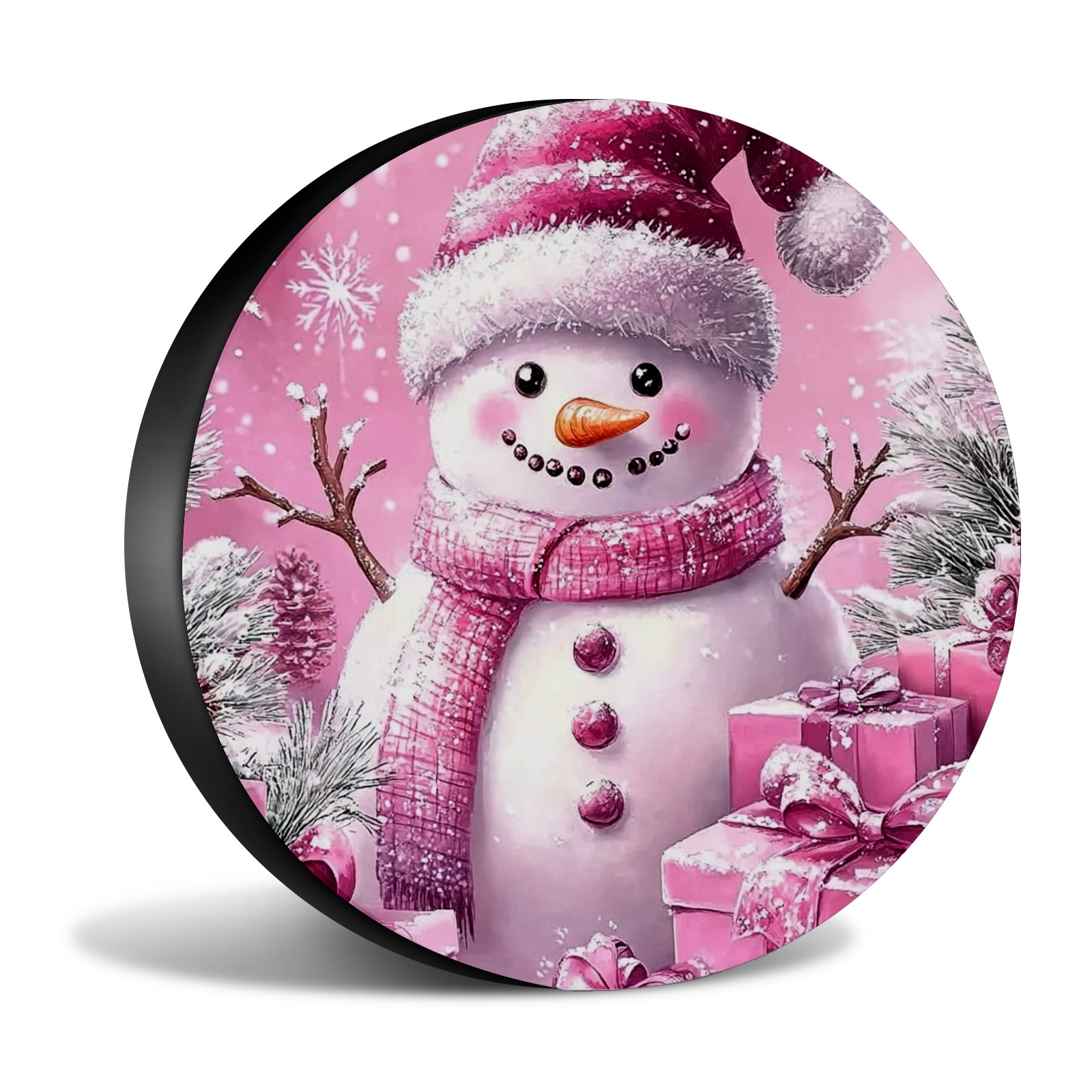 Spare Tire Cover Pink Christmas Snowman Tire Cover 14 Inch for Trailer SUV RV Camper Waterproof Wheel Protectors (for Wheel Diameter 23''-27'') Car Accessories