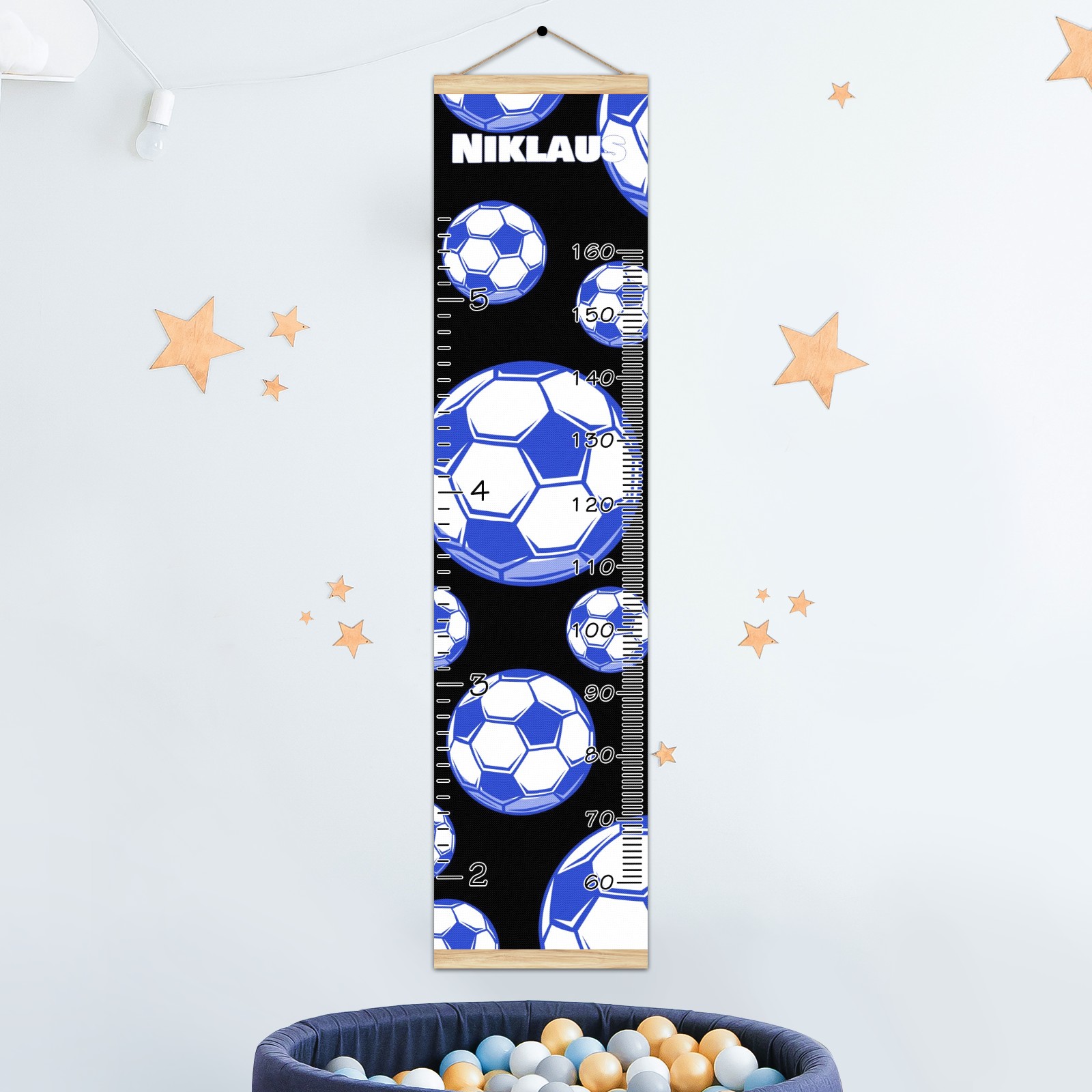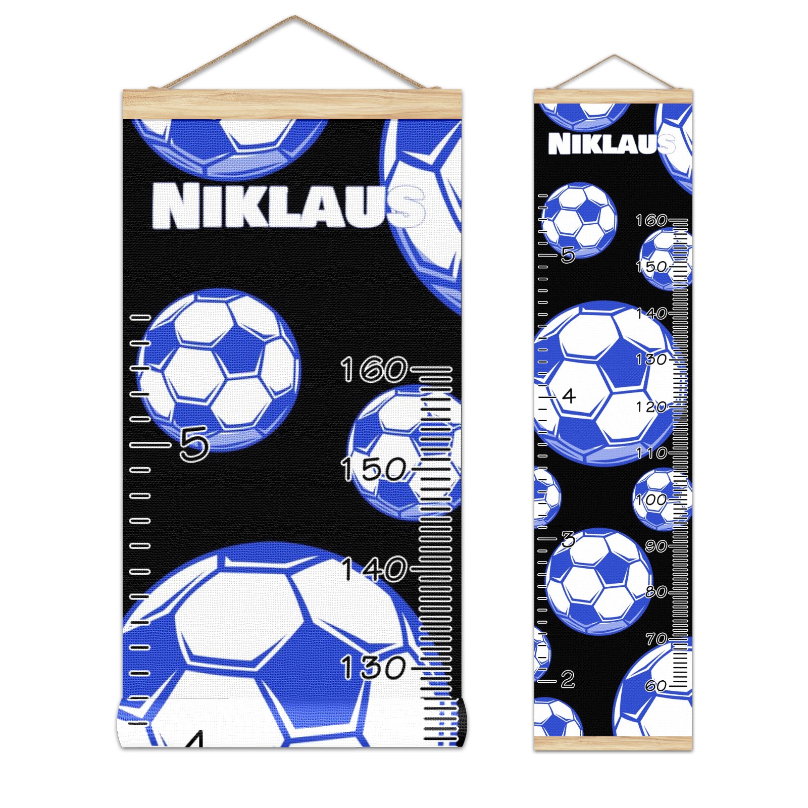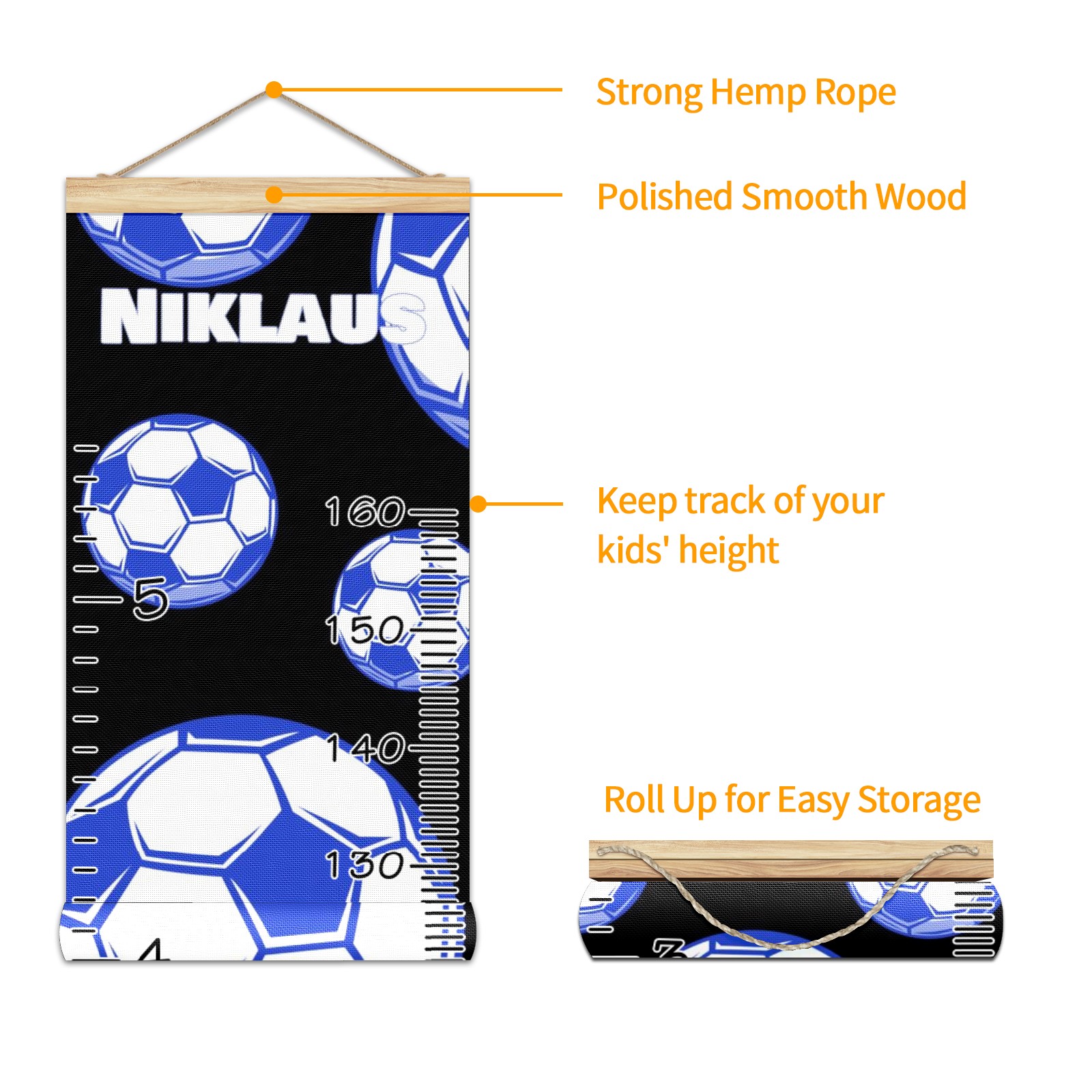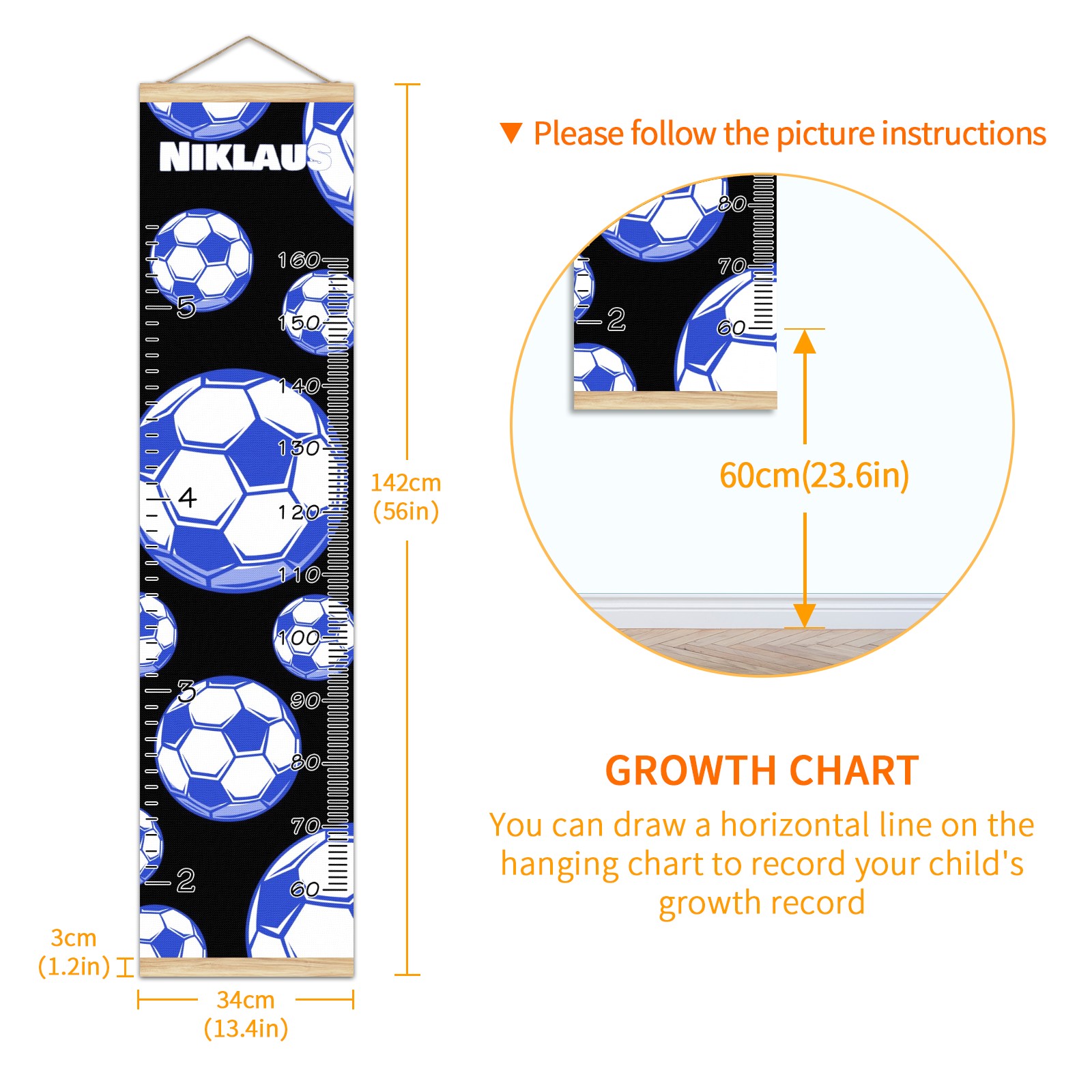 Personalized Kids Name Growth Chart Ruler for Wall Wood Frame Canvas Height Measure Chart 13.4x56 in Hanging Growth Chart Blue Football1.13 Boys Girls Room Decor