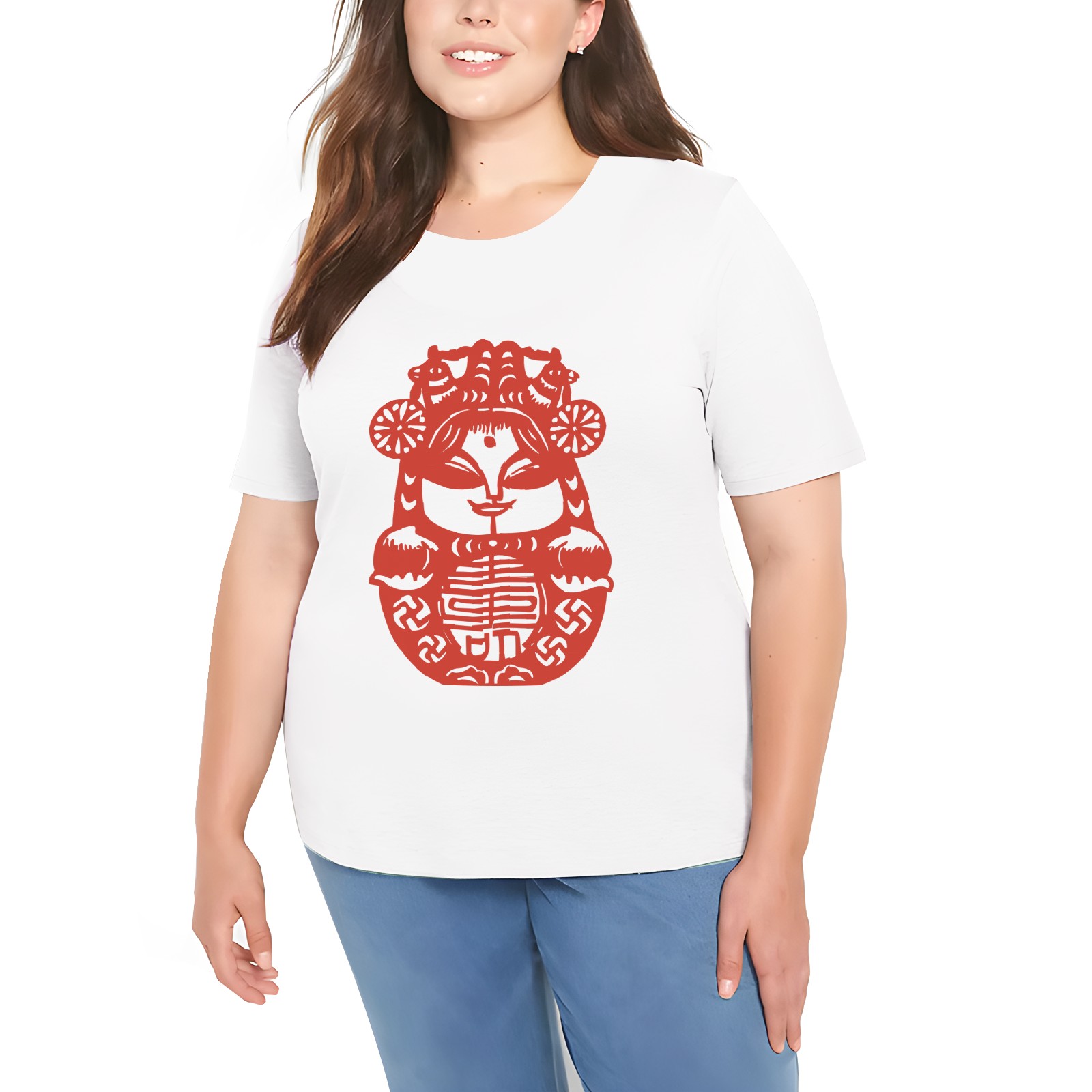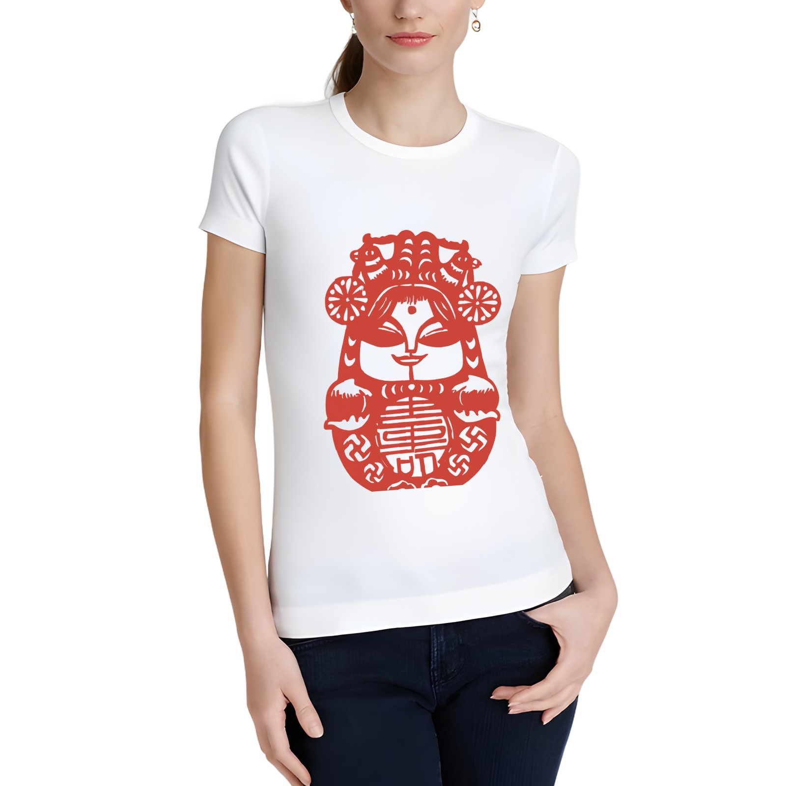 Chinese Paper Cutting Heart Shirts for Women 4th of July T-Shirt Graphic Patriot Tee USA Flag Shirt Tops