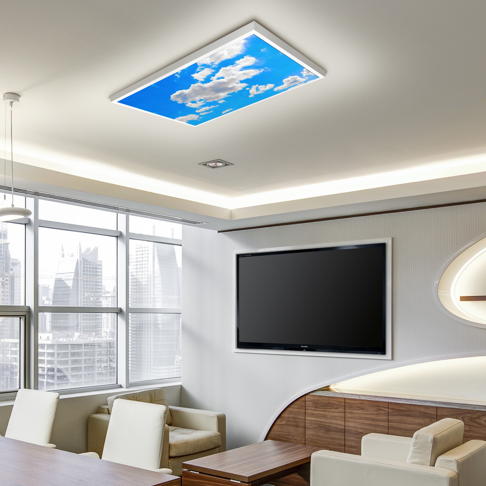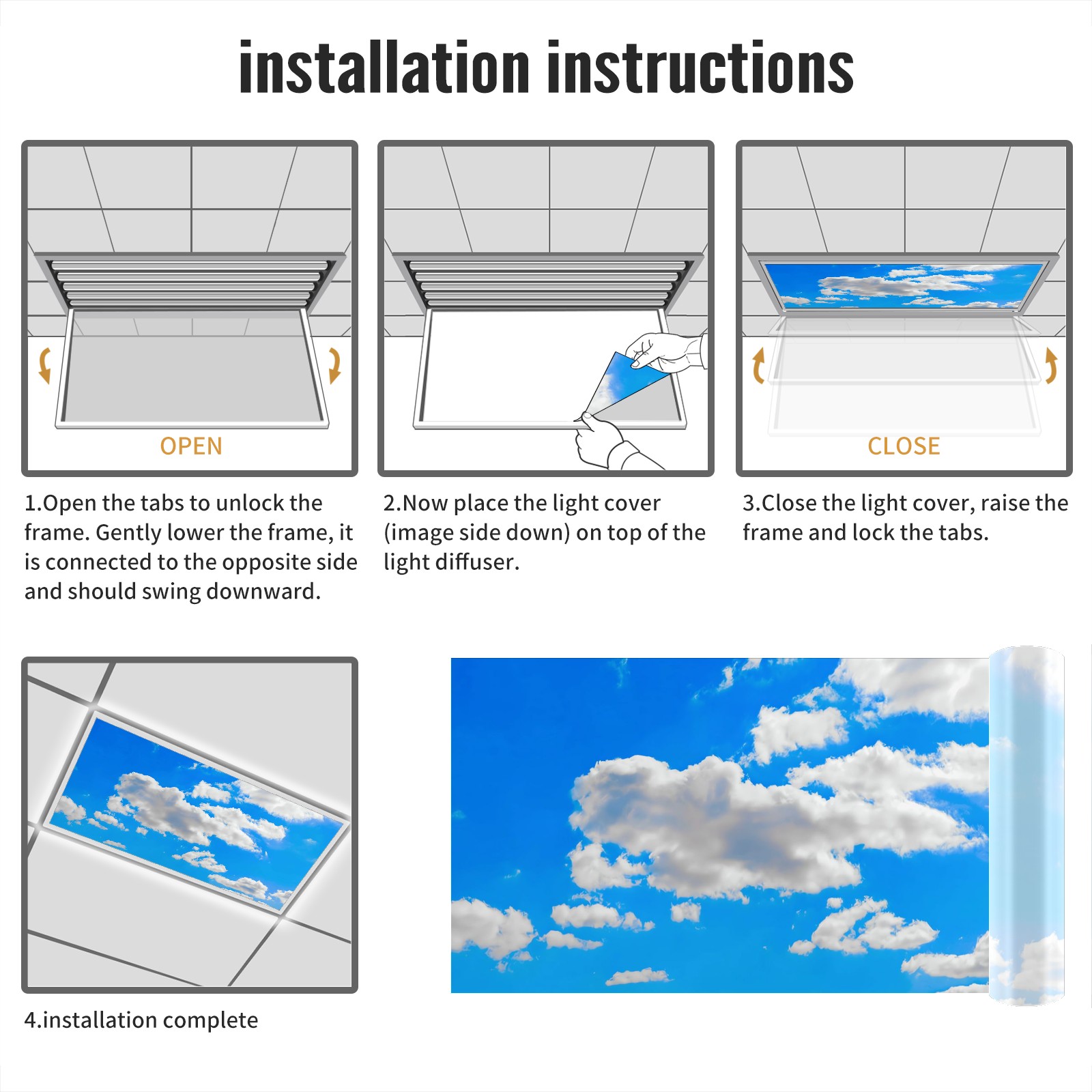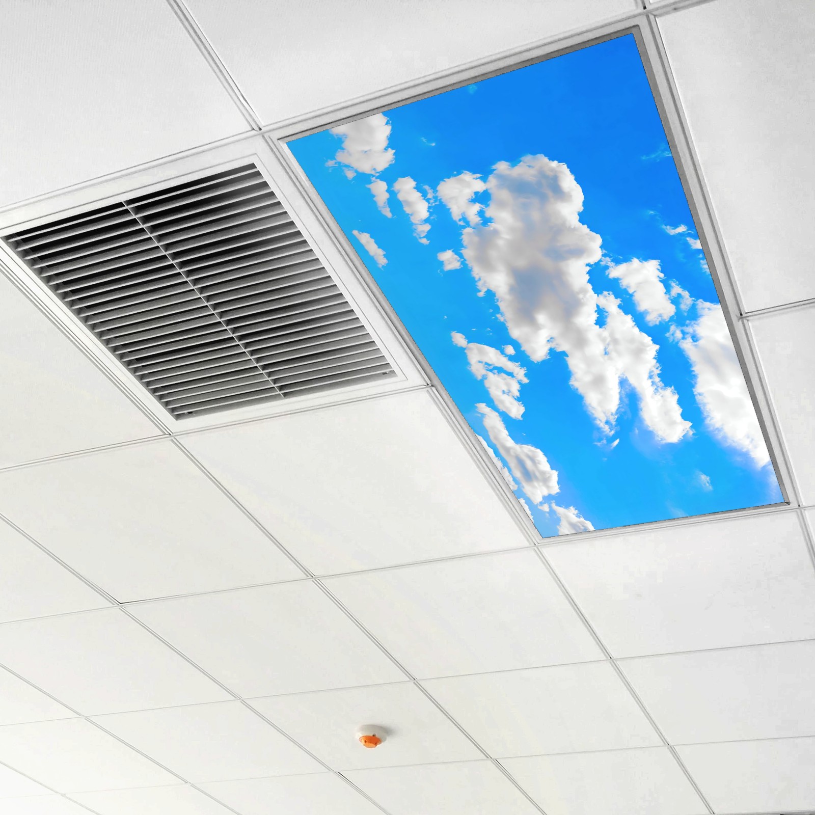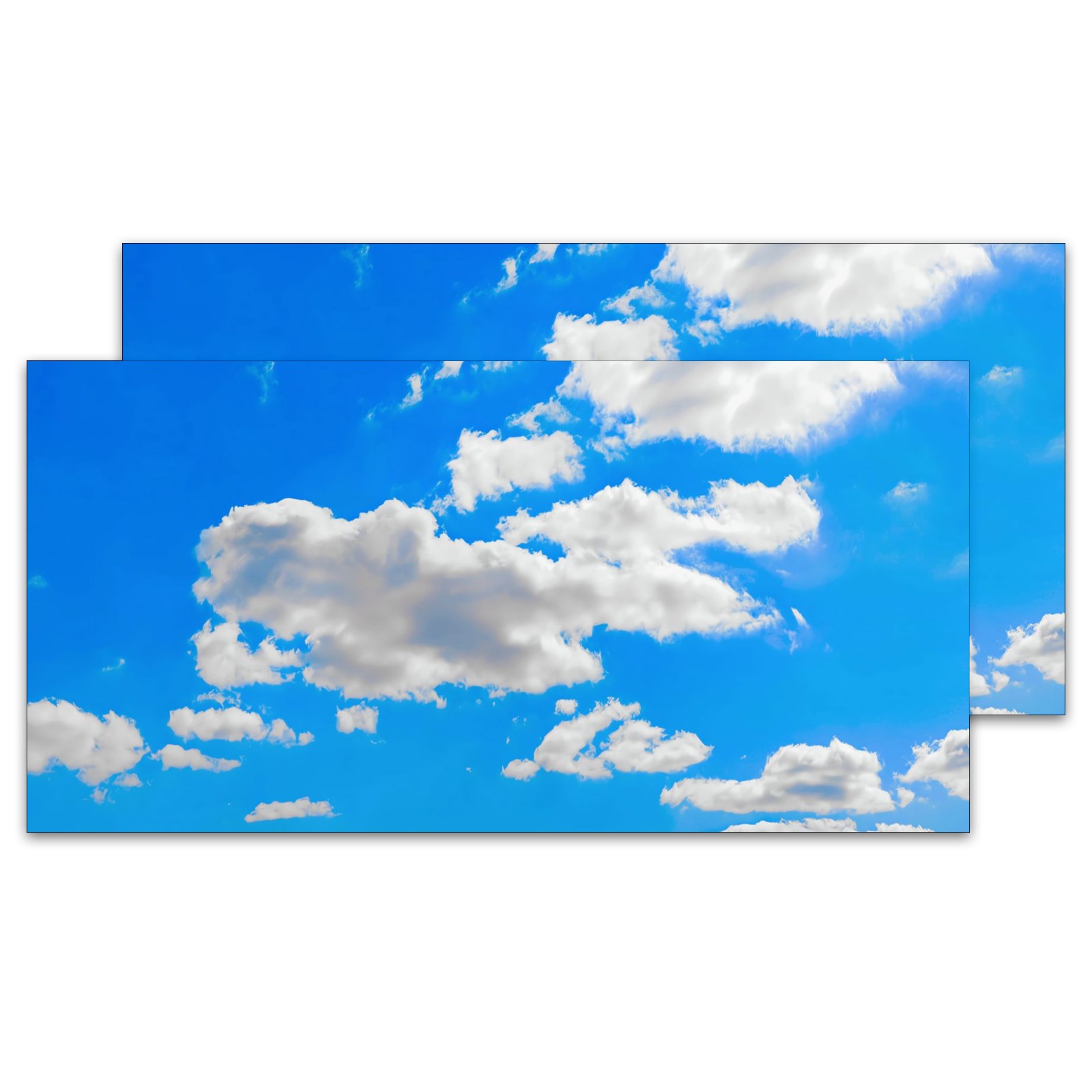 2 Pack Blue Sky White CloudsLights Fluorescent Light Covers for Classroom Office 2x4ft Celling Fluorescent Decorative Eliminate Harsh Glare,Classroom Decorations